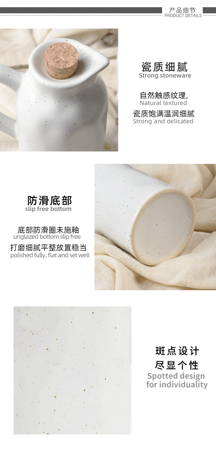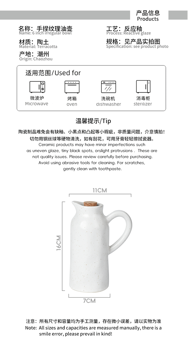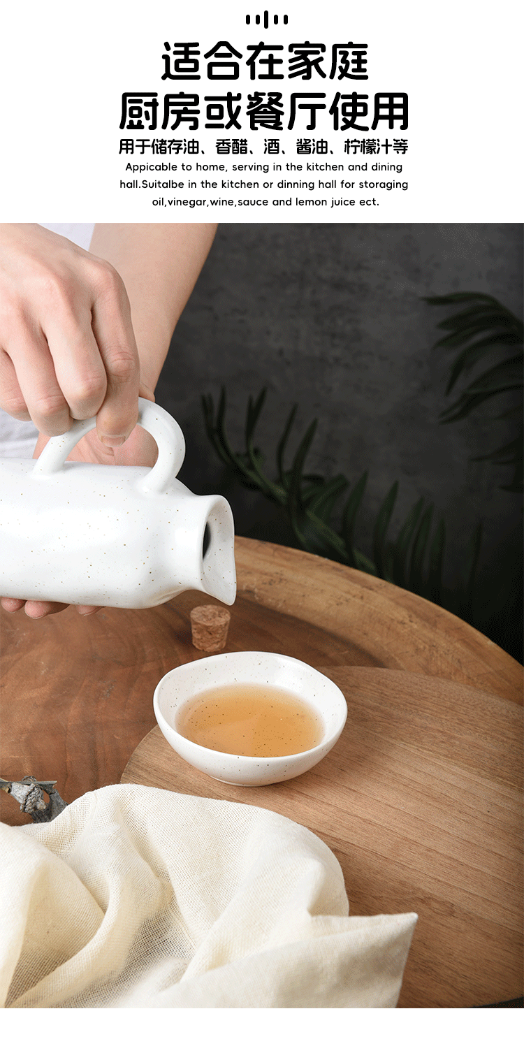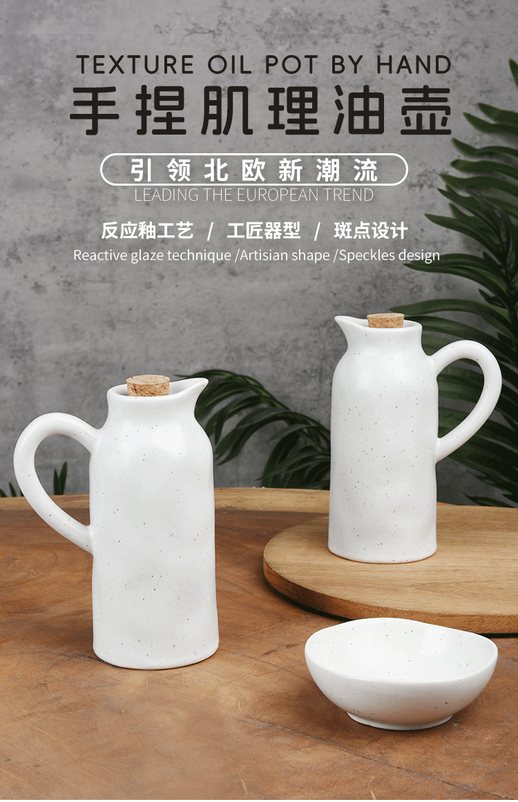 Olla de aceite de cocina transfronteriza personalizada sin aceite colgante, olla de vinagre de salsa para el hogar, botella de condimento de cerámica de textura de pellizco creativo a mano comercial