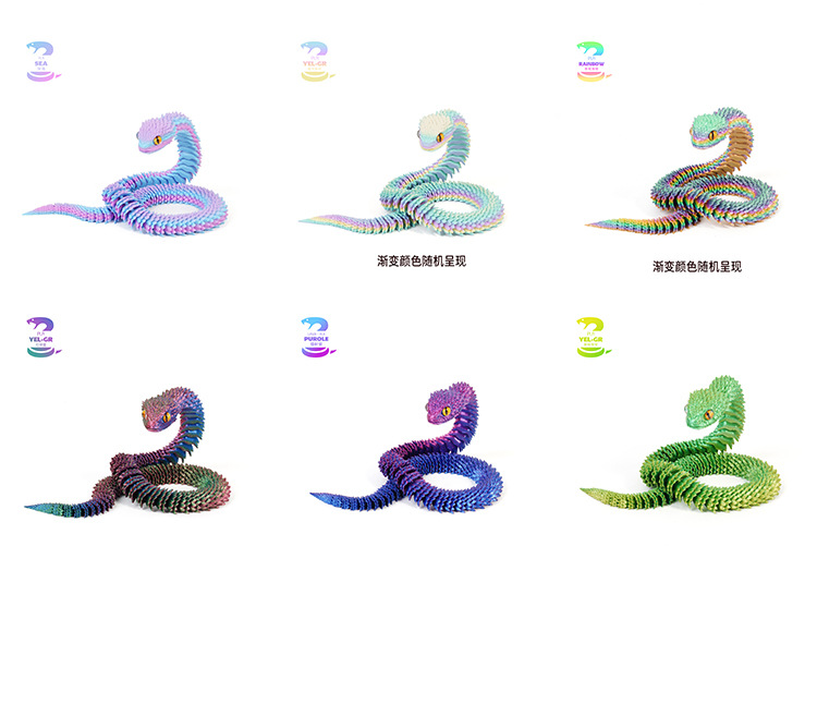 Transfronterizo impresión 3D articulaciones de serpiente móviles vipers adornos hechos a mano modelo de animales de luz nocturna regalo de cumpleaños para niños