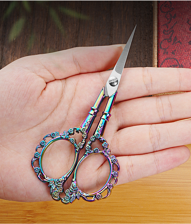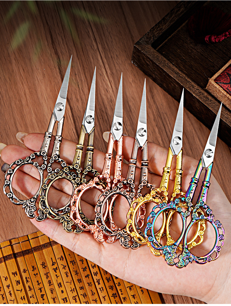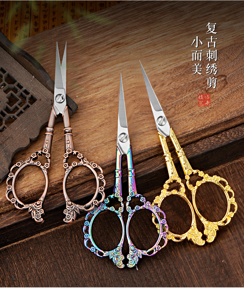 Clásico retro de acero inoxidable ciruela tijeras bordadas tijeras tijeras europeas tijeras tijeras domésticas al por mayor