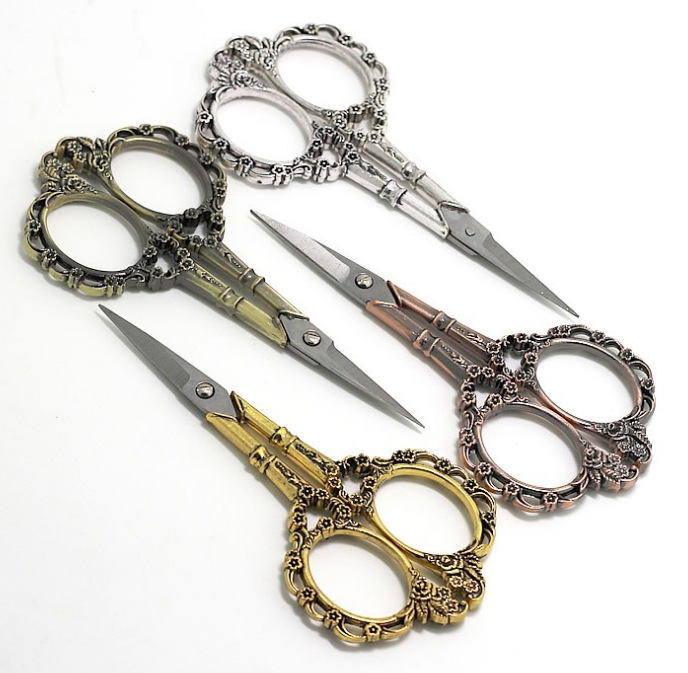 Tijeras de flor de ciruelo Tijeras retro europeas Tijeras hechas a mano Tijeras de hilo de flores de punto de cruz Tijeras de oficina para estudiantes Tijeras de bolsitas de té