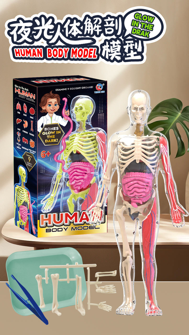 Educación temprana órganos humanos modelo esqueleto conjunto de ciencia y educación para estudiantes de primaria y secundaria DIY ensamblaje infantil puzzle juguete luz nocturna