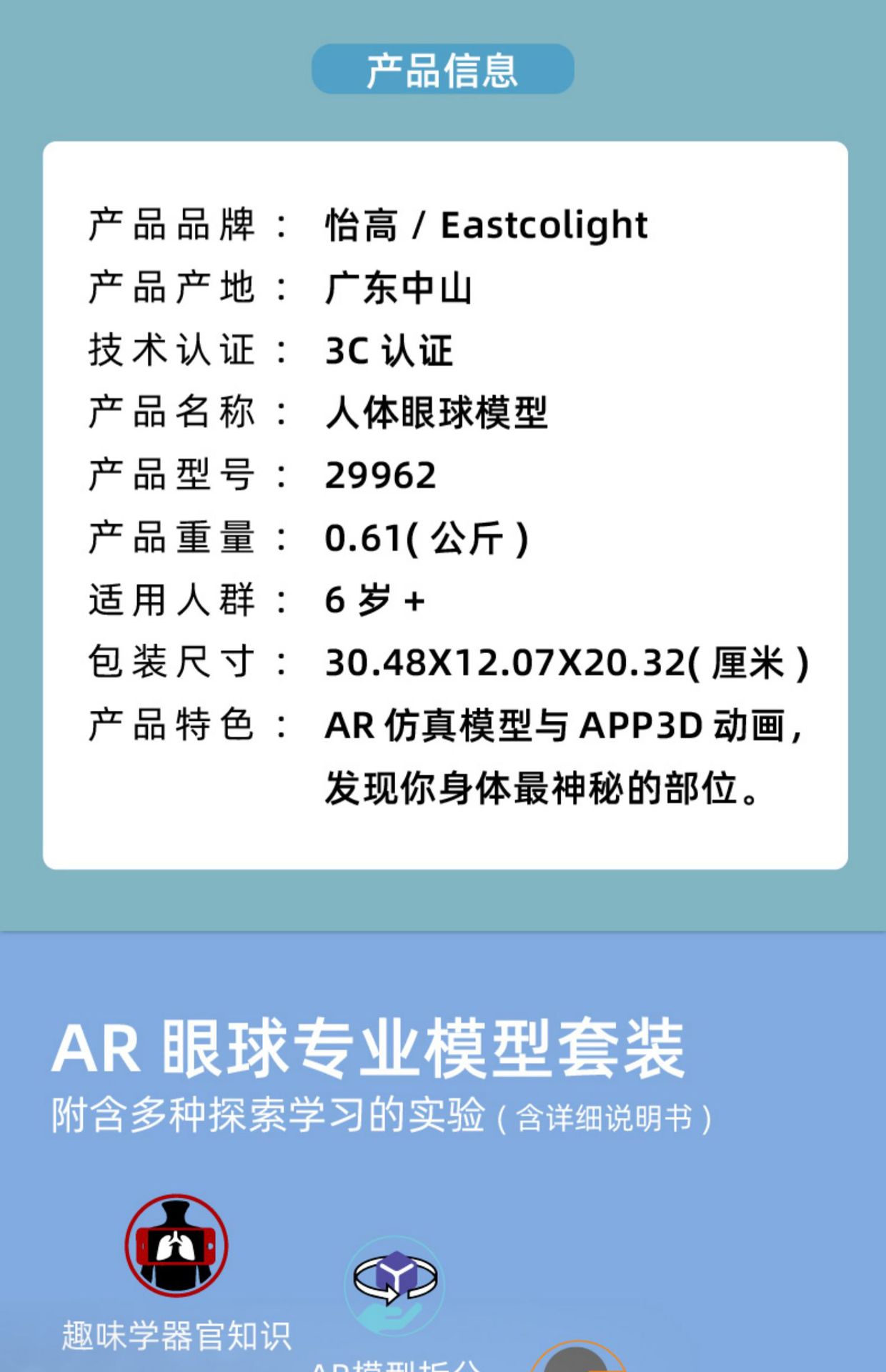 Yigao estudiante oftalmología experimento de lujo traje modelo de ciencia y educación para niños juguete estructura fisiológica modelo de ojo humano