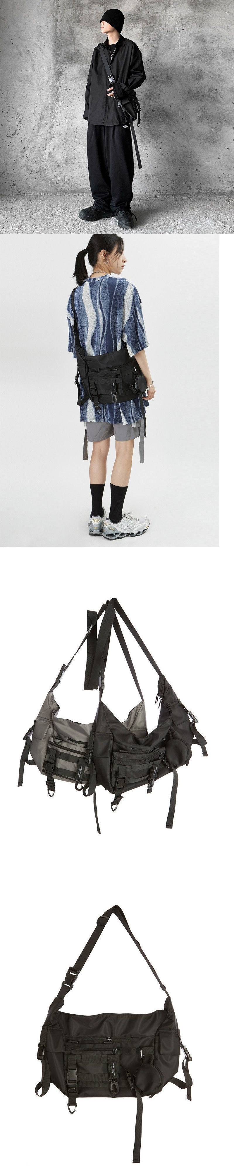| Colores | Bolso de herramientas funcional lona japonesa de gran capacidad ins Trend Women Tactical Brand Hip Hop Boys Bandolera |
