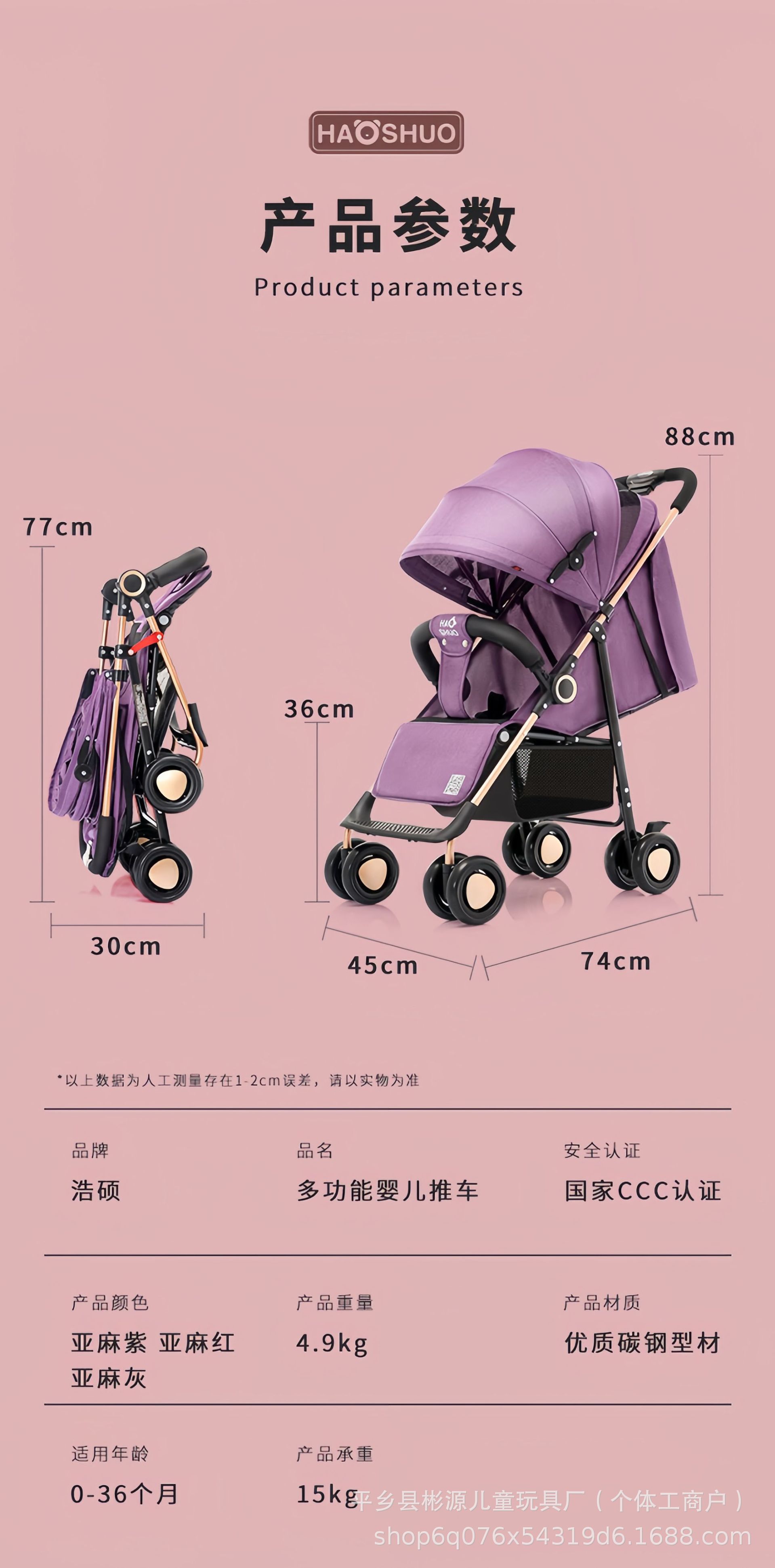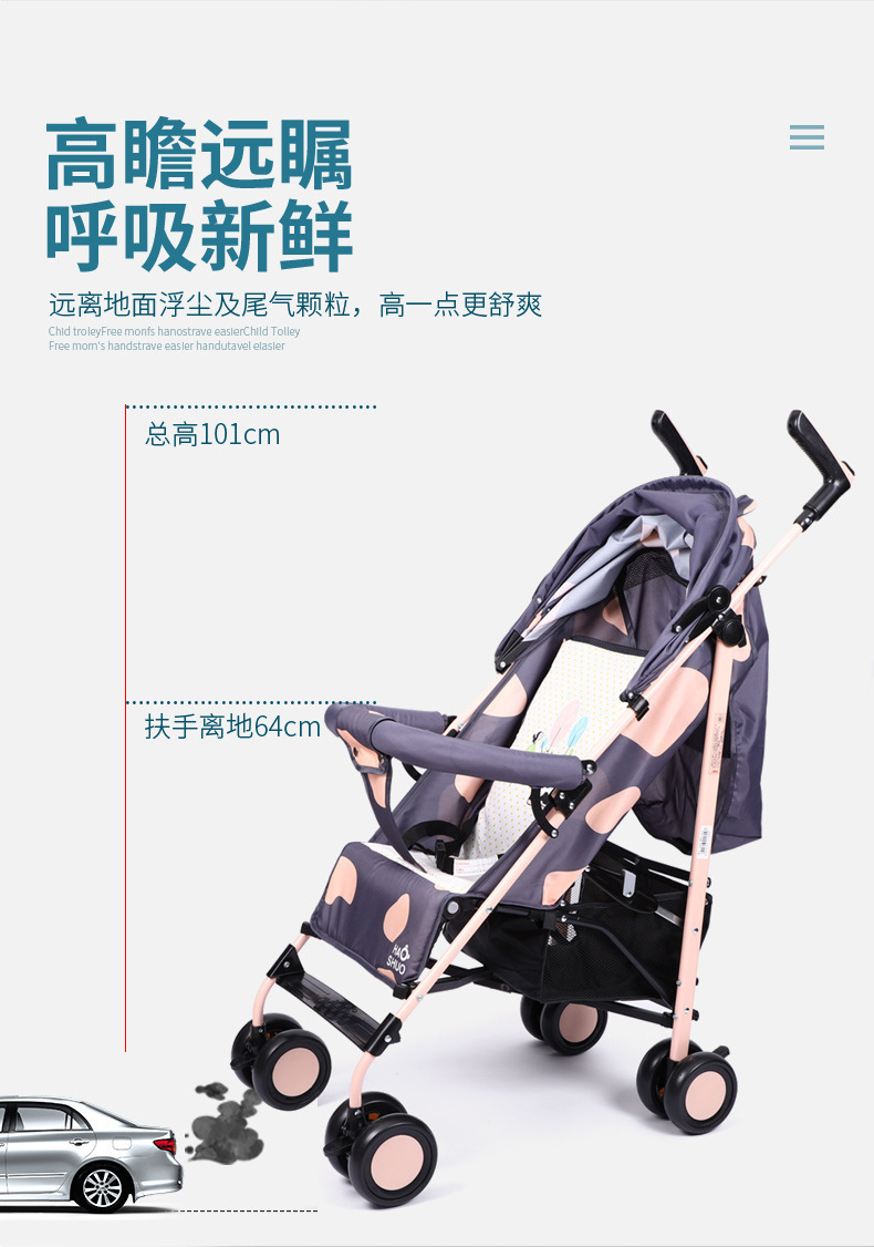 Fábrica de cabello recto al por mayor cochecito de bebé cochecito de bebé ligero fácil de almacenar se puede sentar y acostarse con un botón plegable