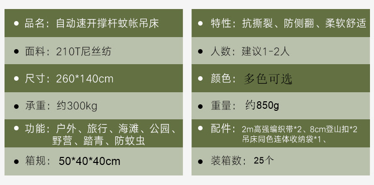 Nuevo tipo de paracaídas automático de apertura rápida transfronteriza hamaca de nylon camping al aire libre hamaca de mosquiteros con malla de apertura rápida a prueba de mosquitos