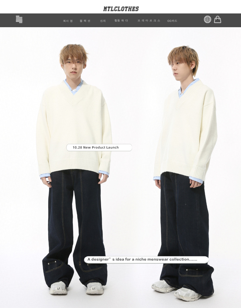 MTLCLOTHES Hombres| Nuevo otoño nicho personalidad anti-desaño deconstrucción de la tendencia de jeans de piernas anchas