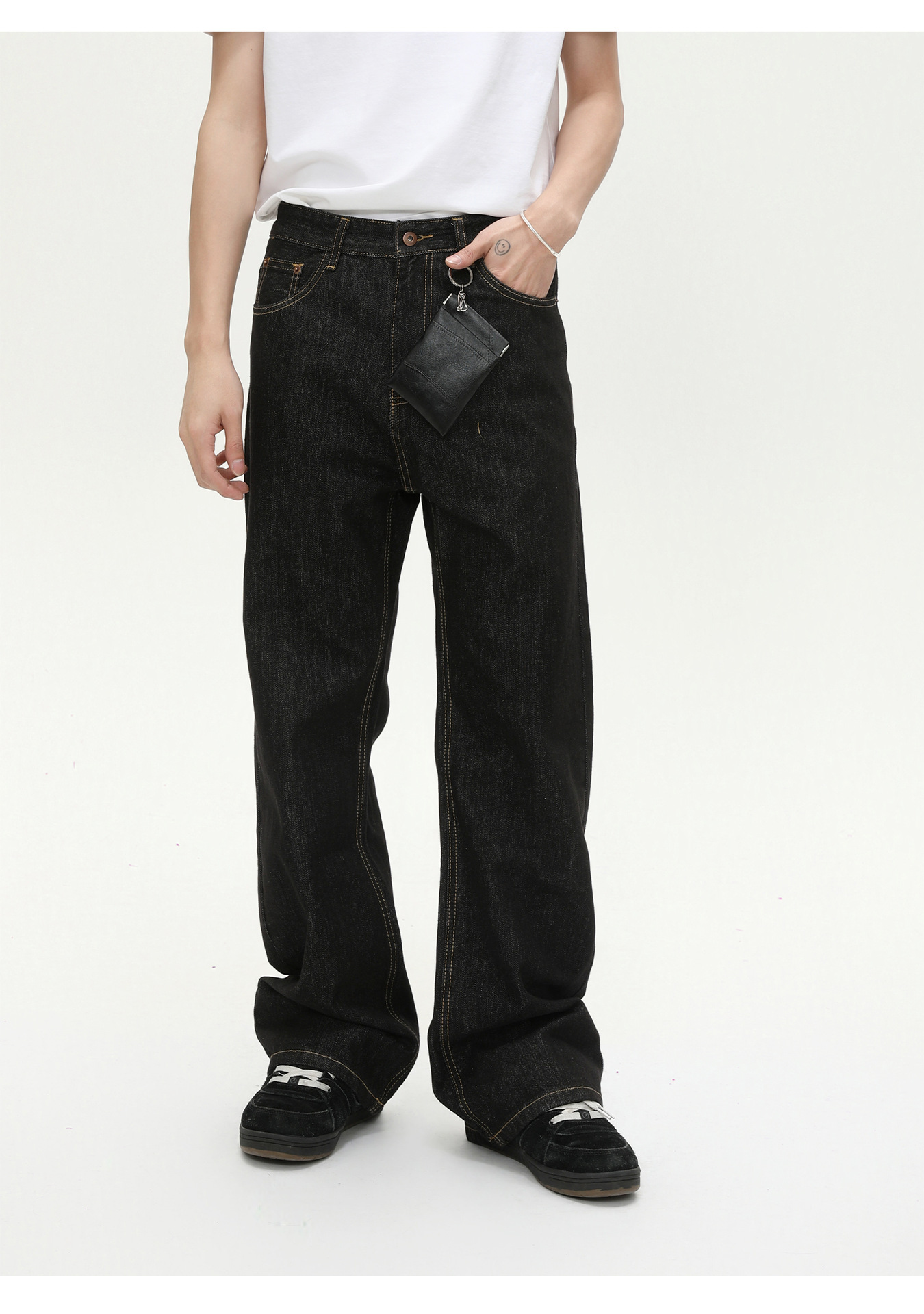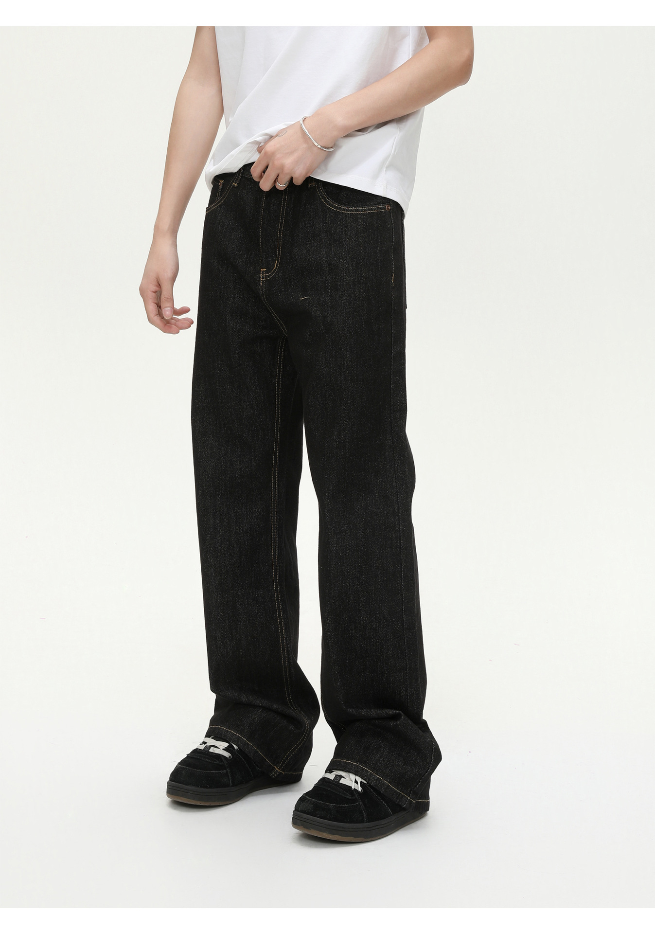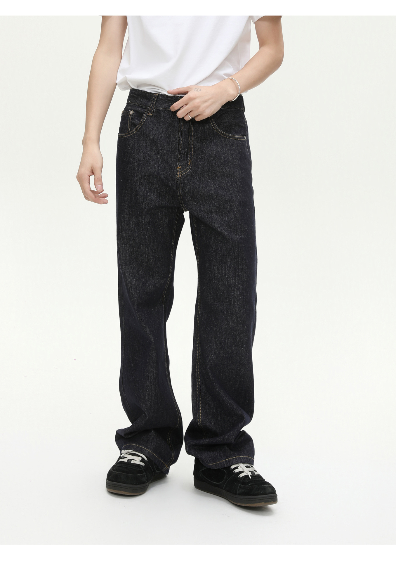 MTLCLOTHES Hombres| Coreano básico simple rectángulo versátil casual lavado en agua jeans de moda diaria
