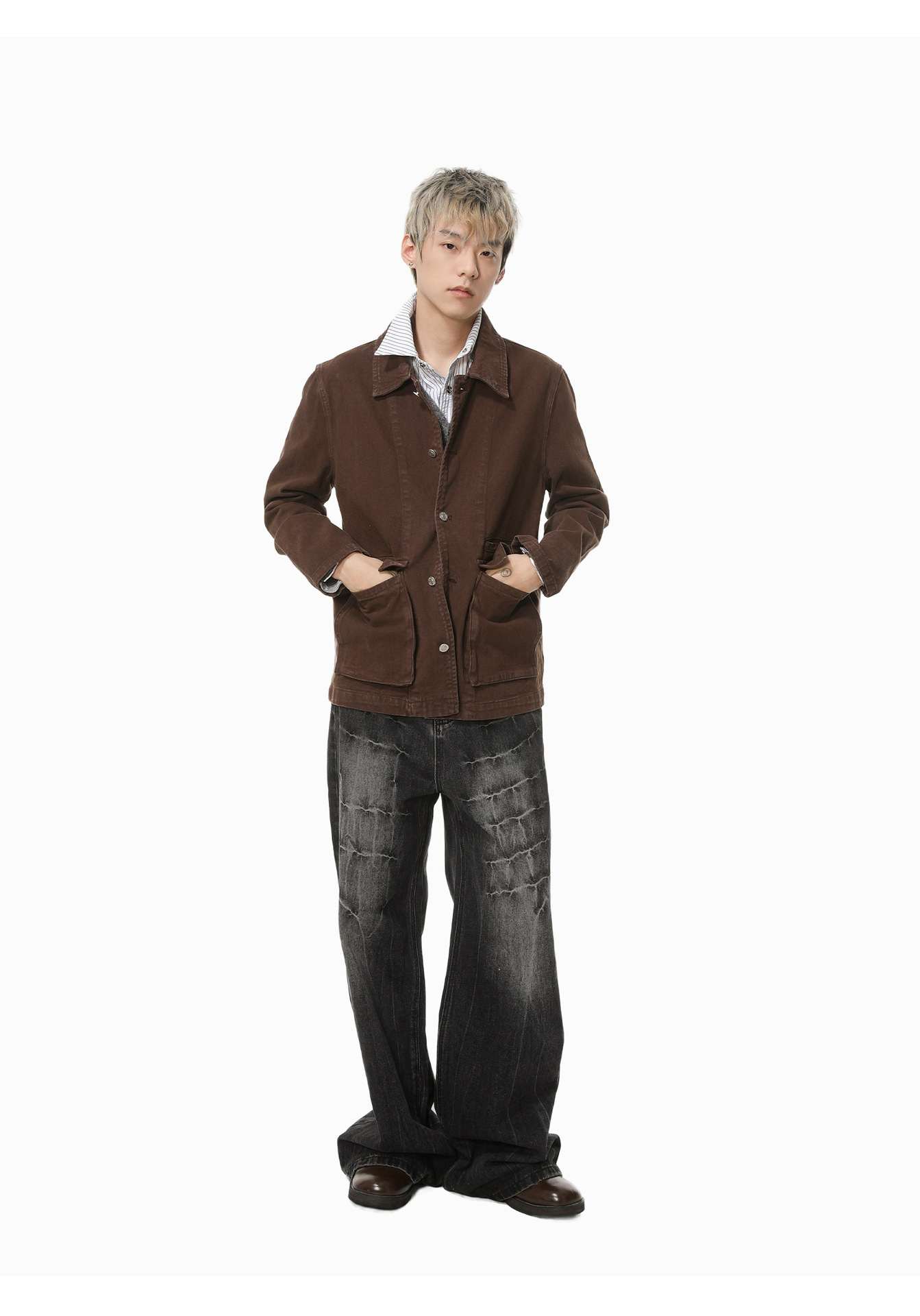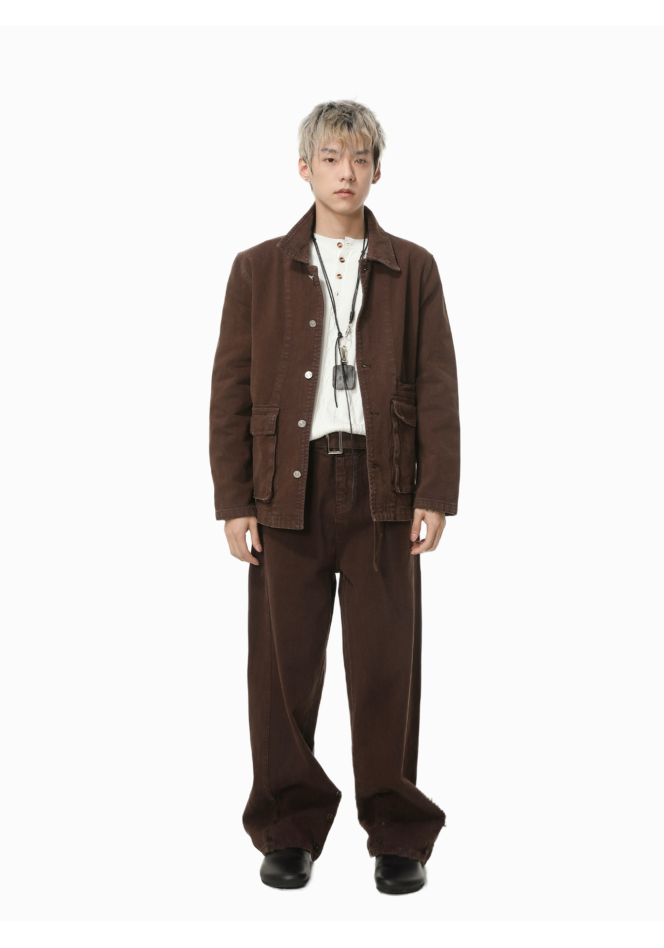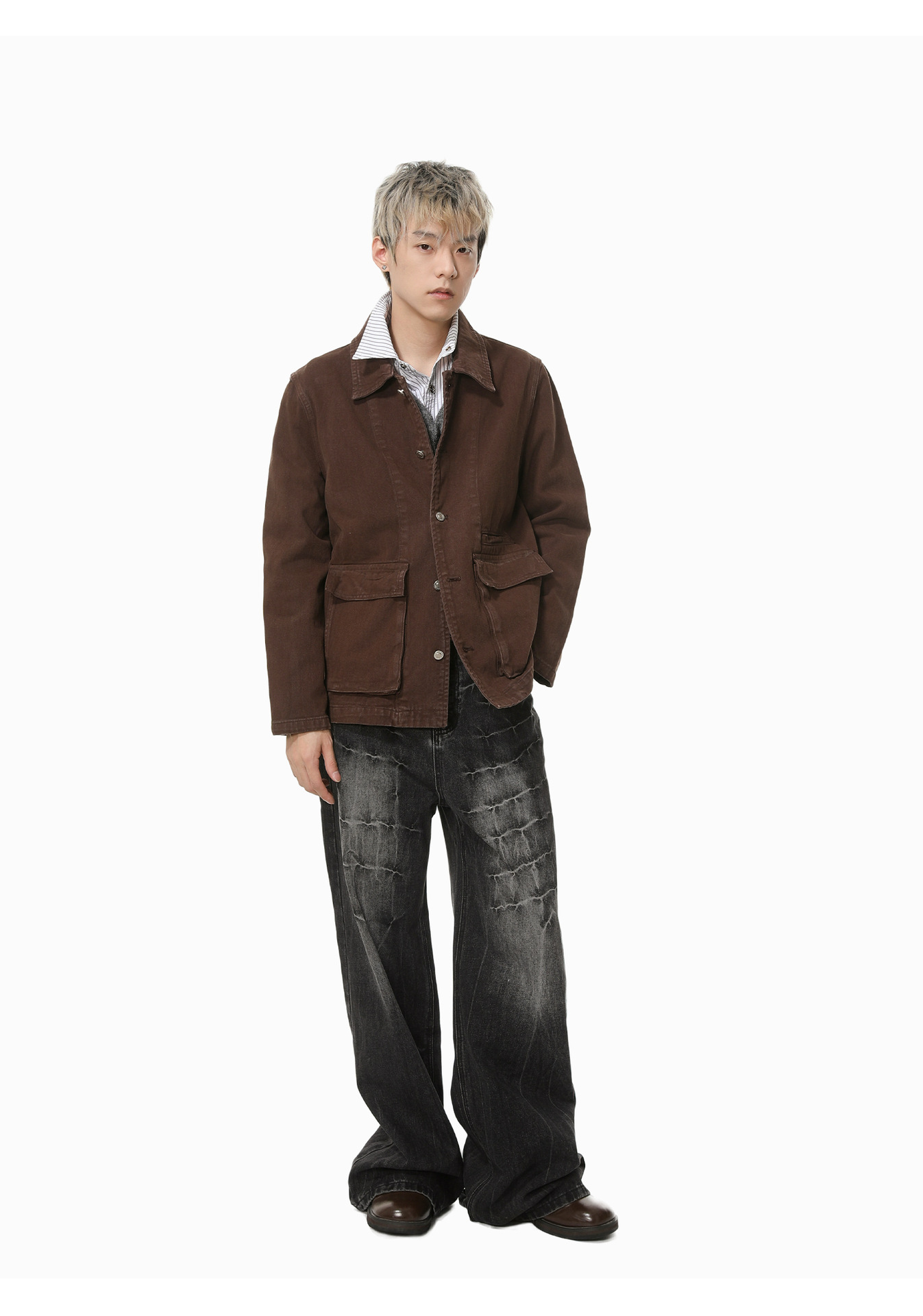 MTLCLOTHES Hombres| Retro hacer viejos altos sentidos algodón herramienta conjunto vaquero