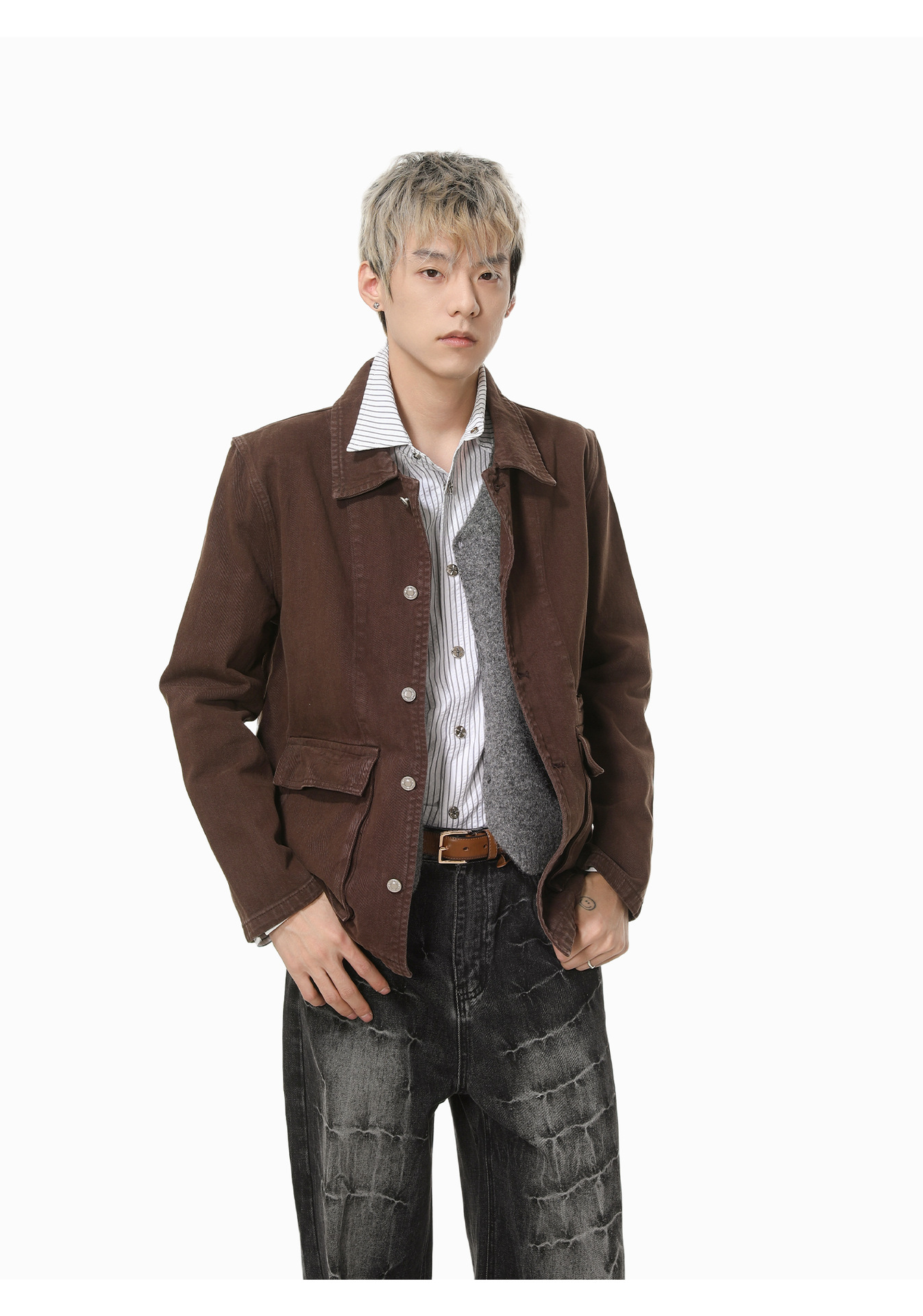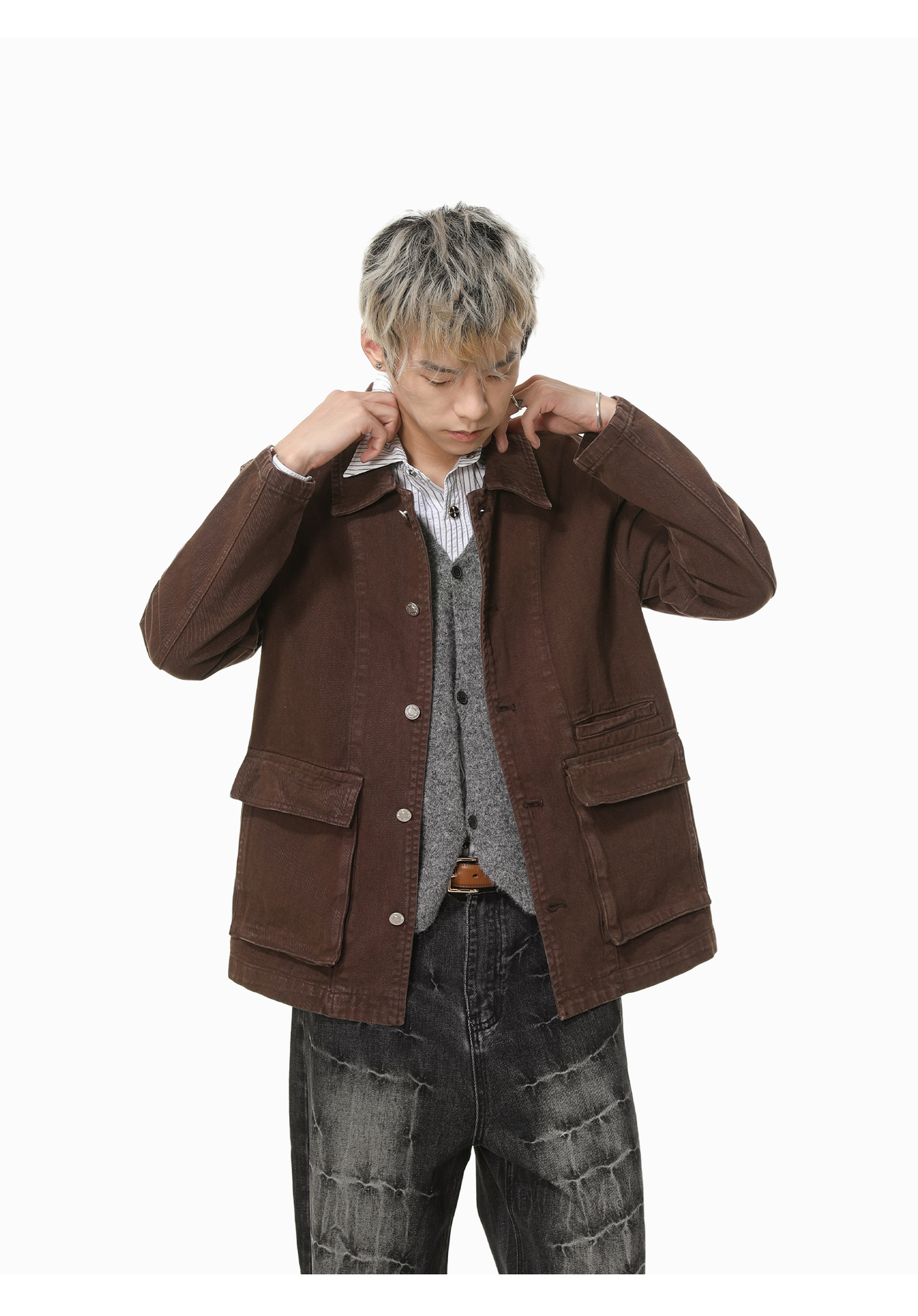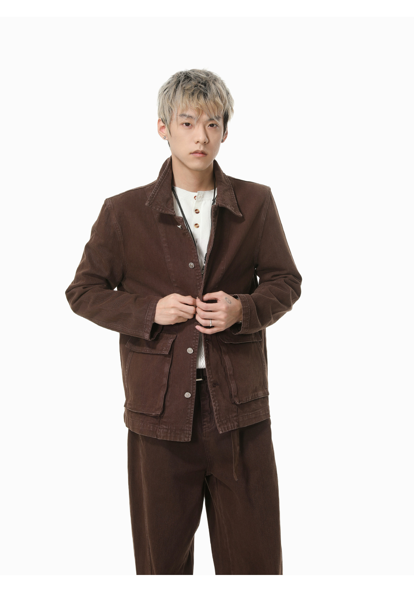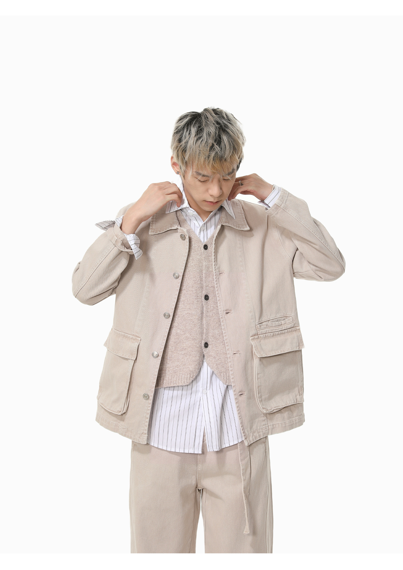 MTLCLOTHES Hombres| Retro hacer viejos altos sentidos algodón herramienta conjunto vaquero