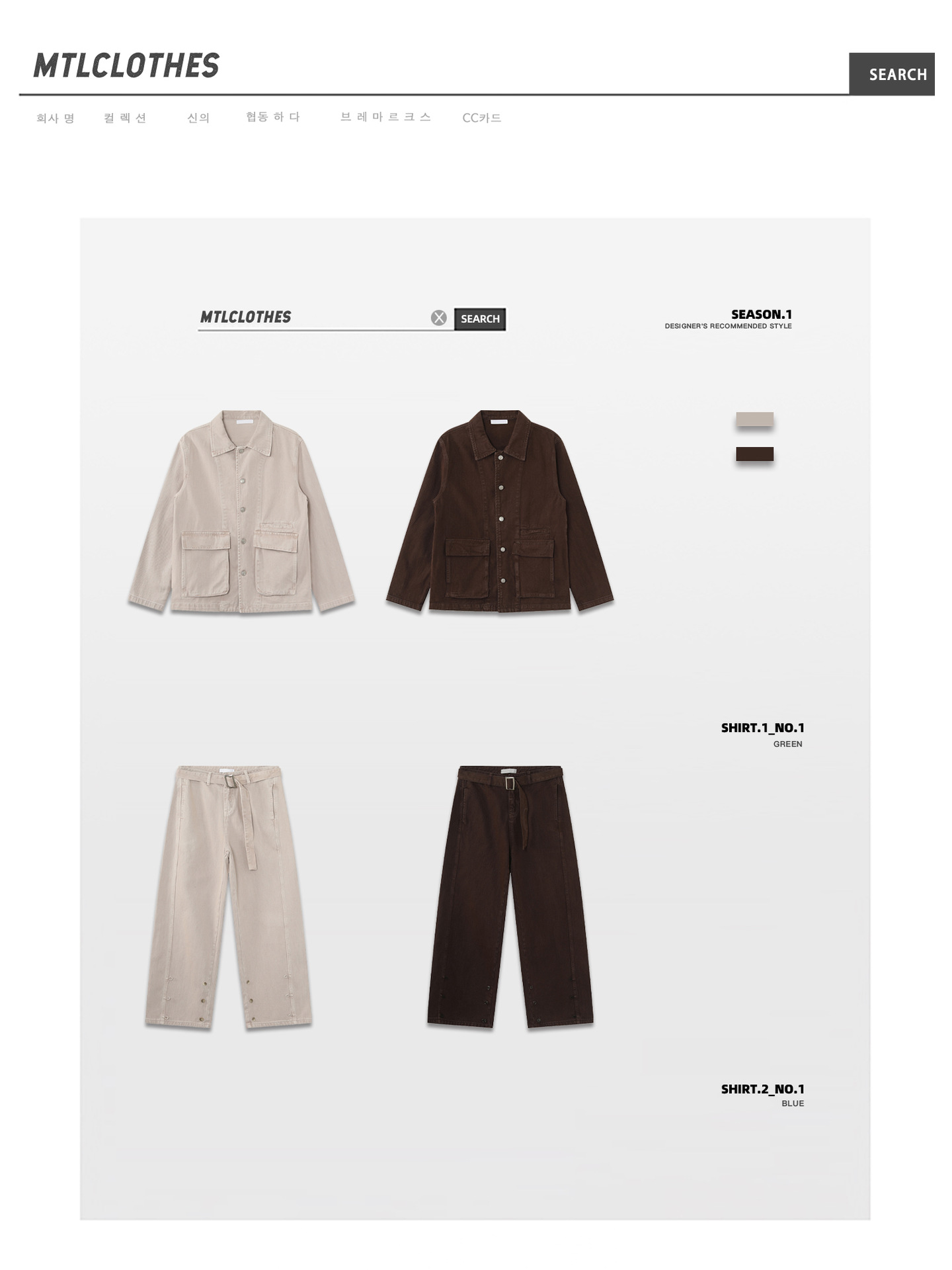 | Color | Camisas marrones, camisas rosa grises, pantalones marrones, pantalones rosa grises |