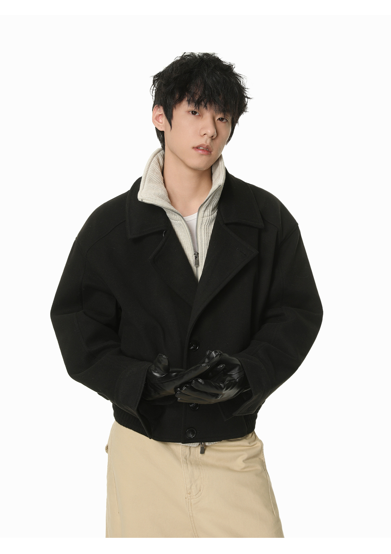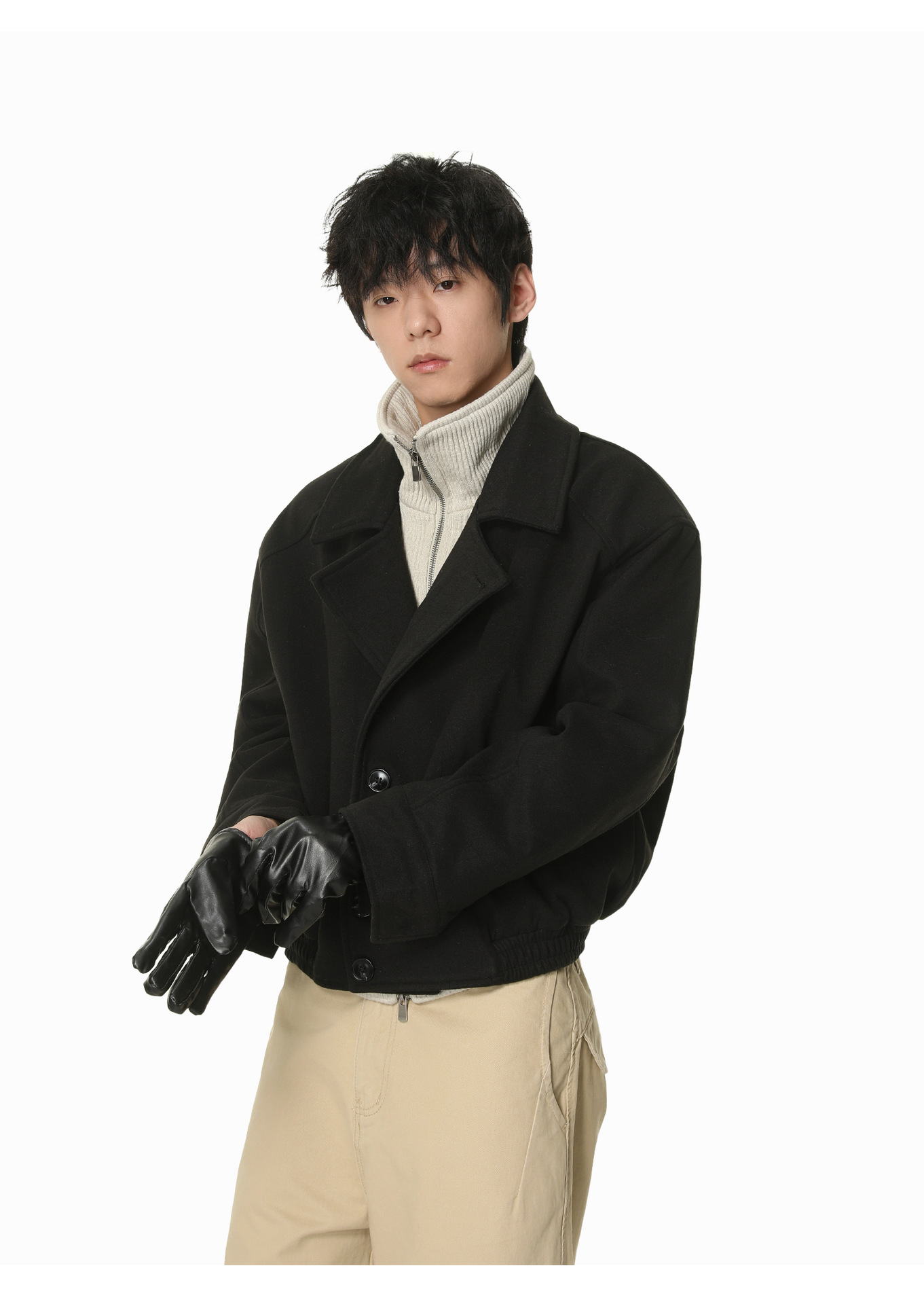 MTLCLOTHES Hombres| Coreano corto color de contraste falso empalme dos piezas de algodón de cuello alto rango ropa de algodón casual de alta calidad