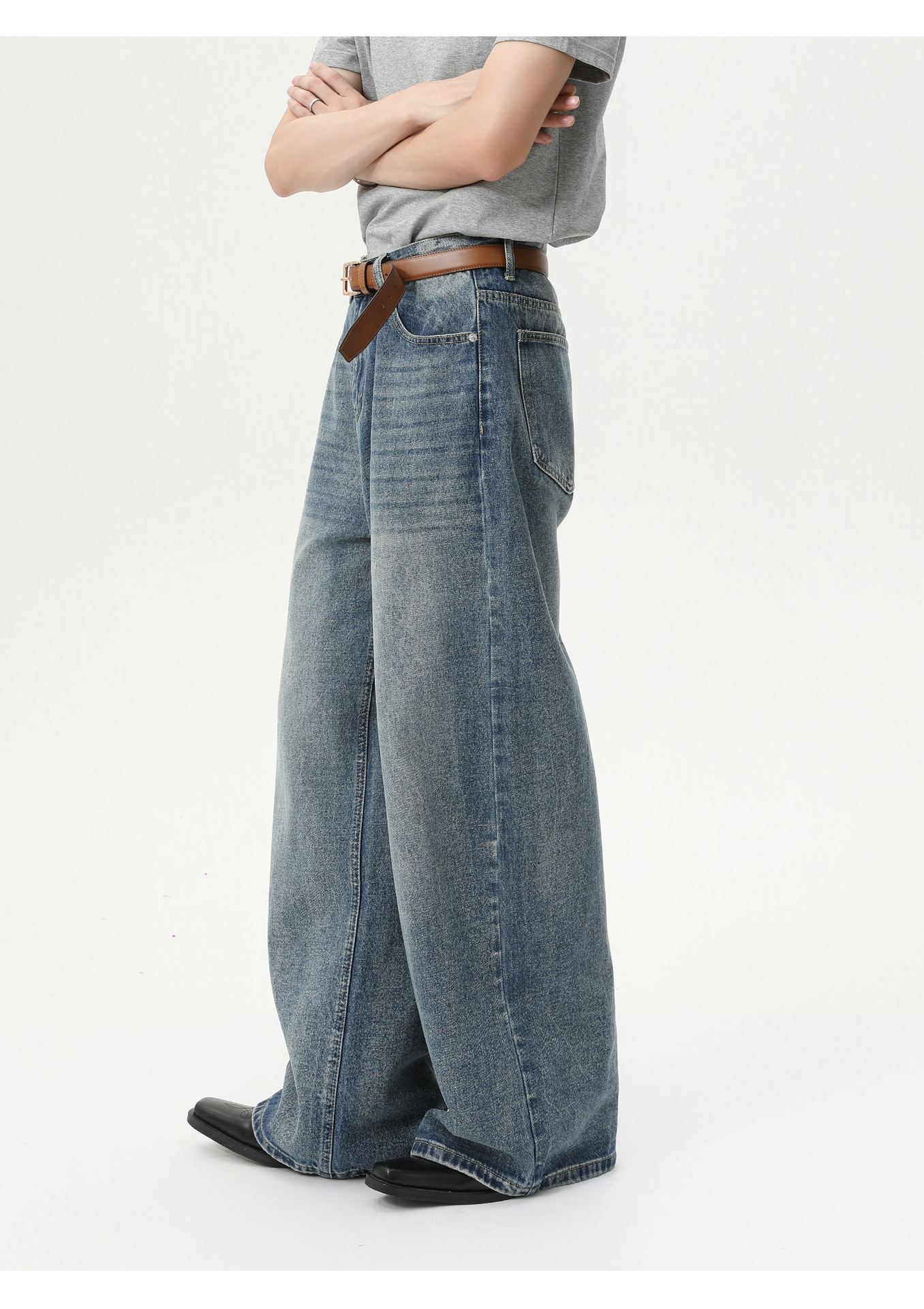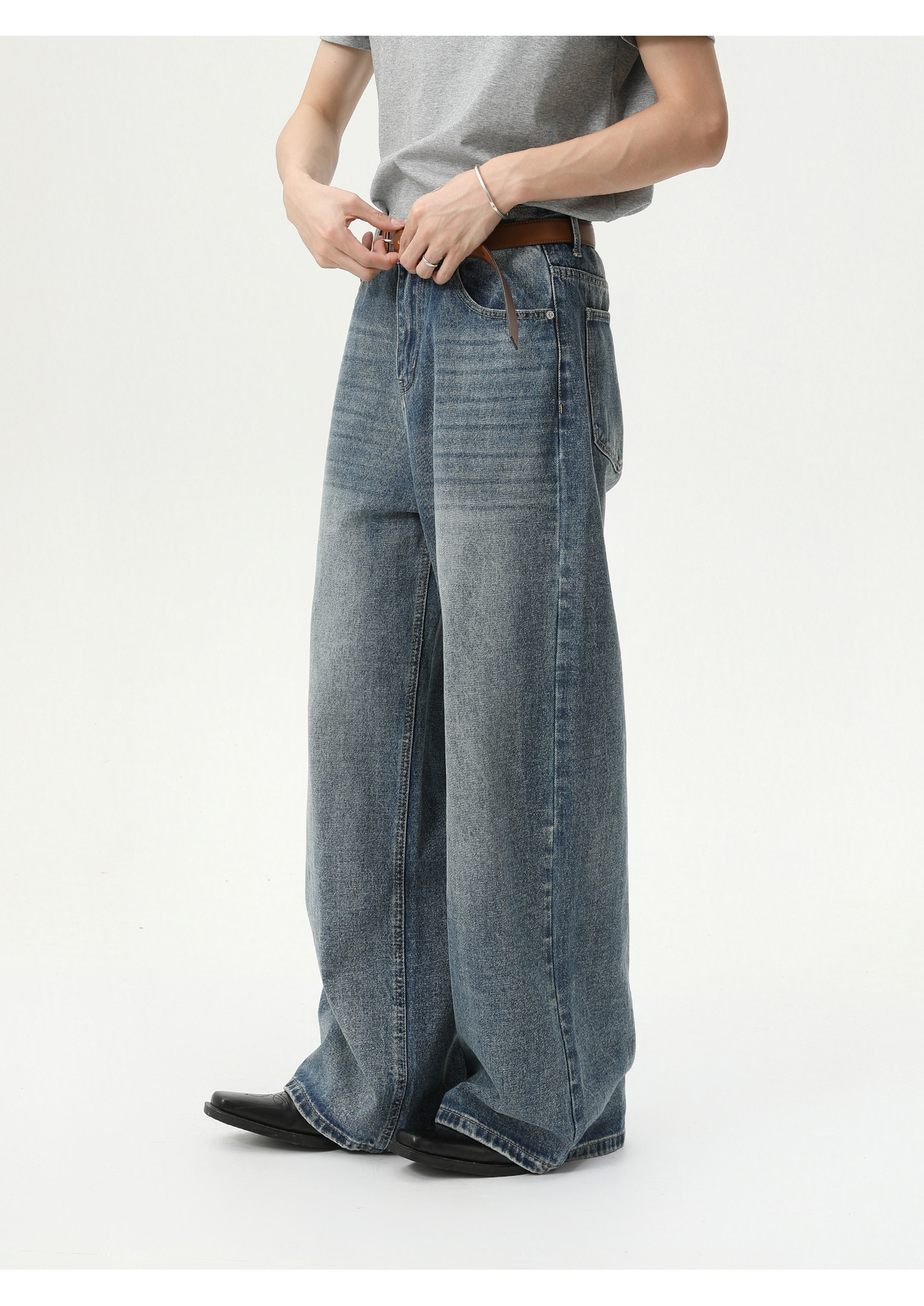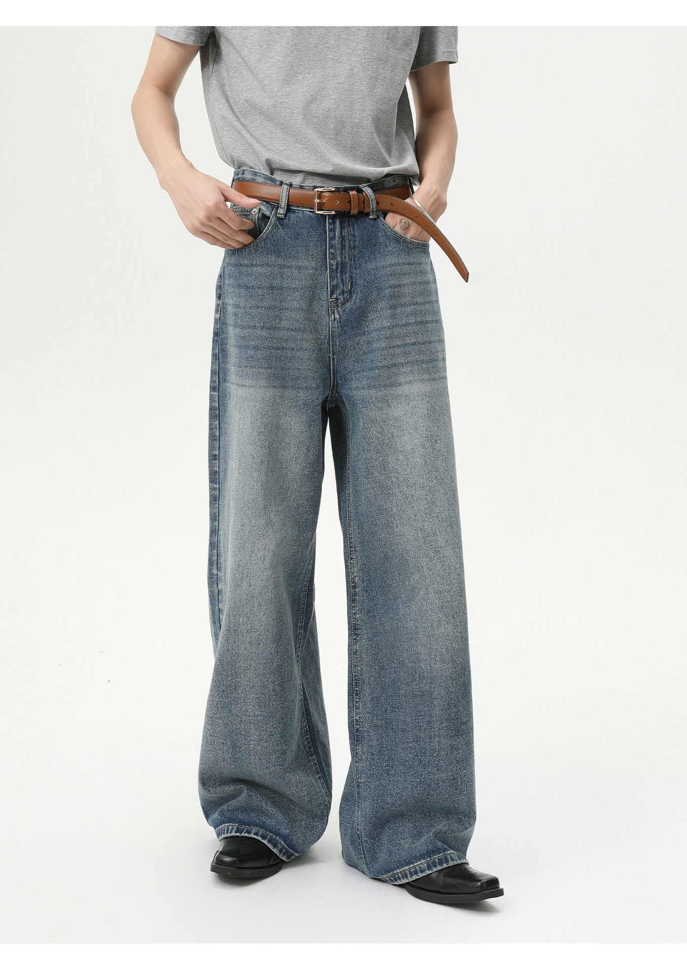 MTLCLOTHES Hombres| Coreano cleanfit recto colgando sensación de piernas anchas con pantalones vaqueros lavados con agua