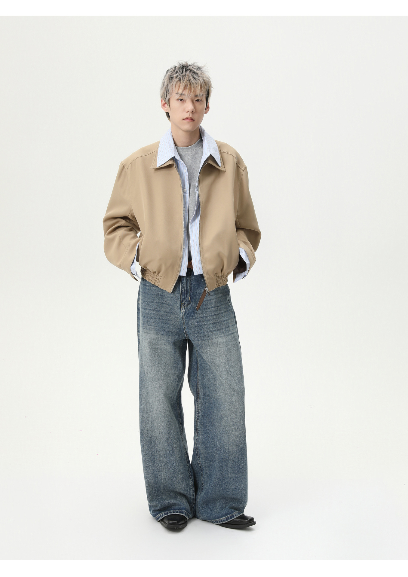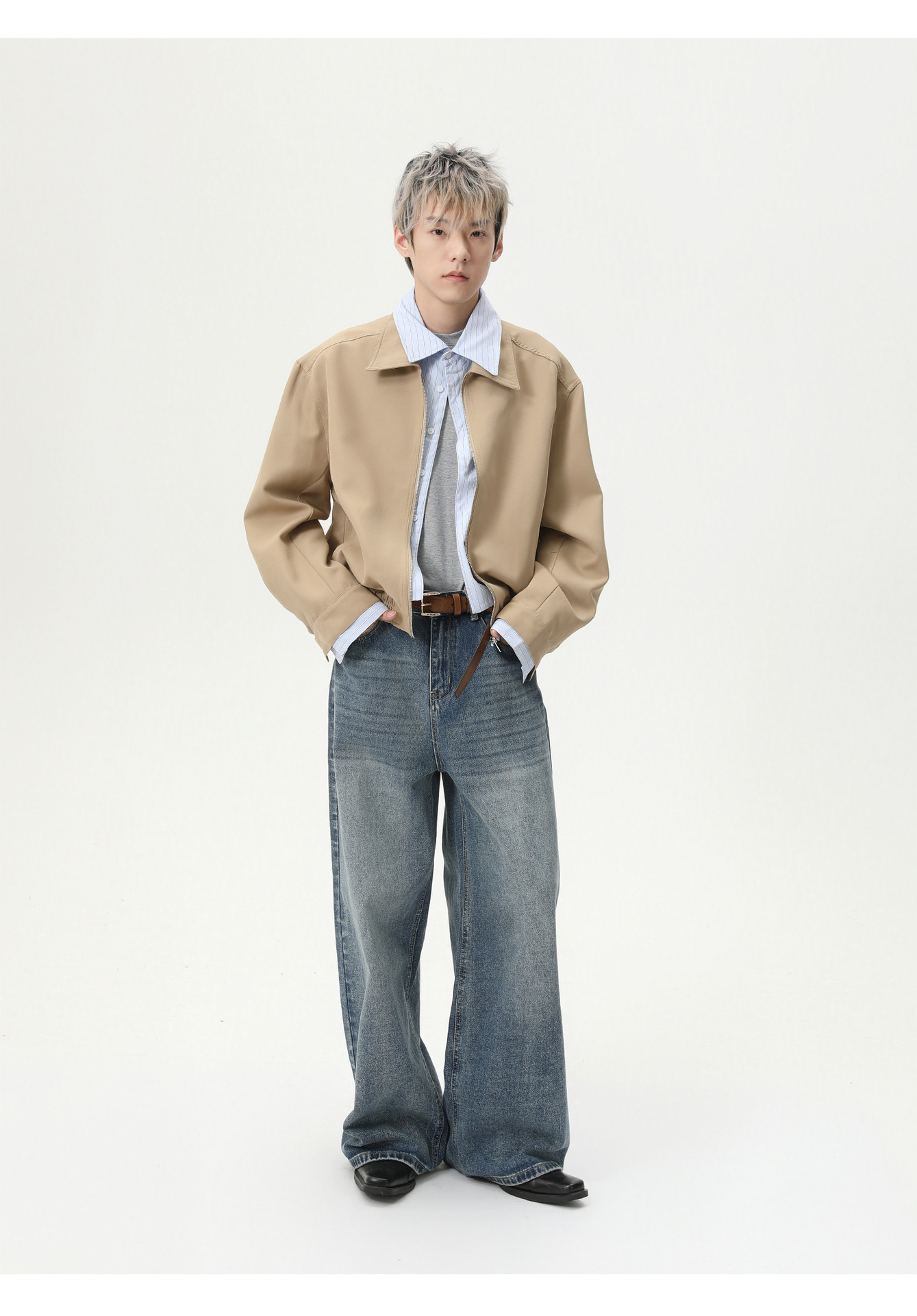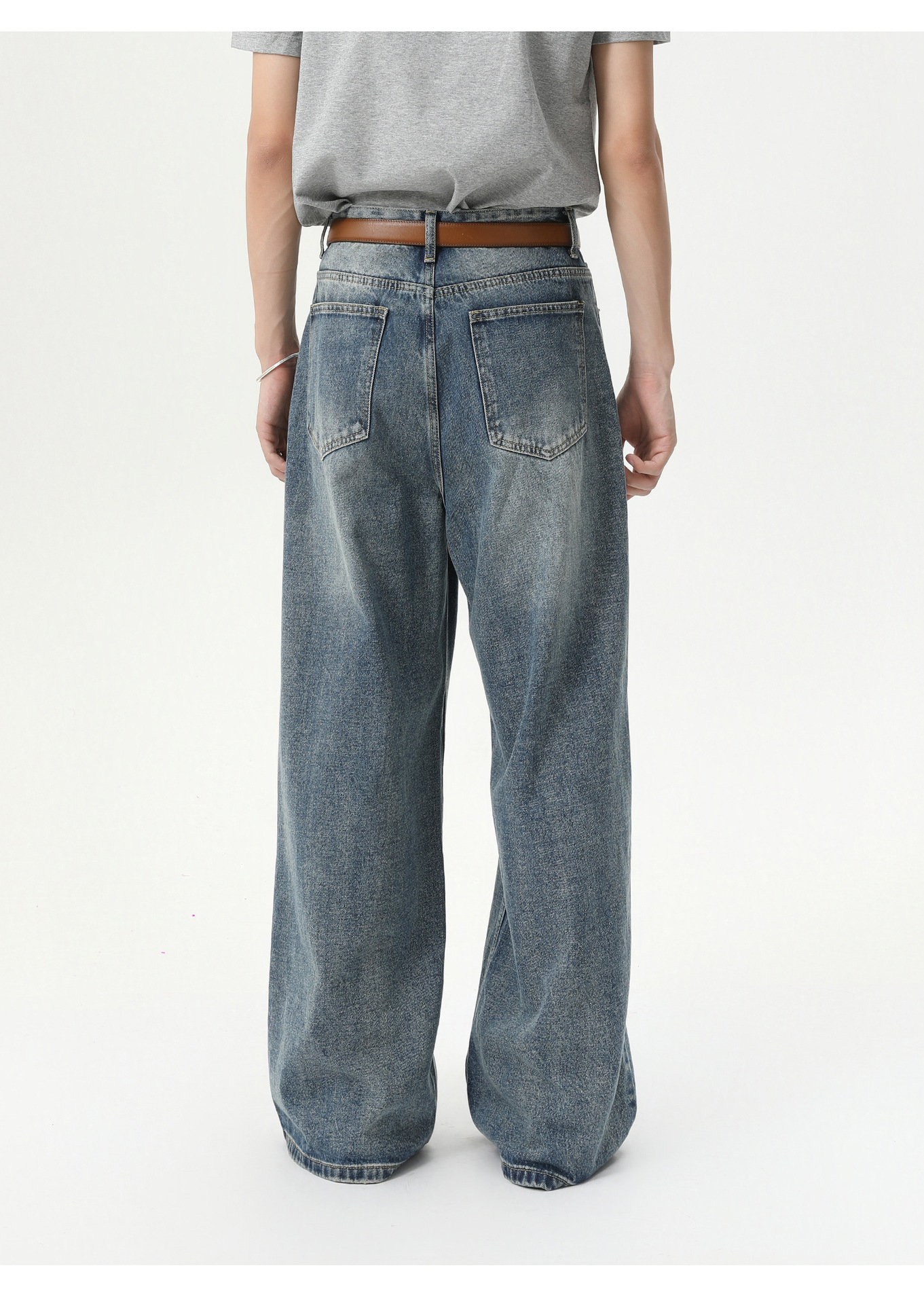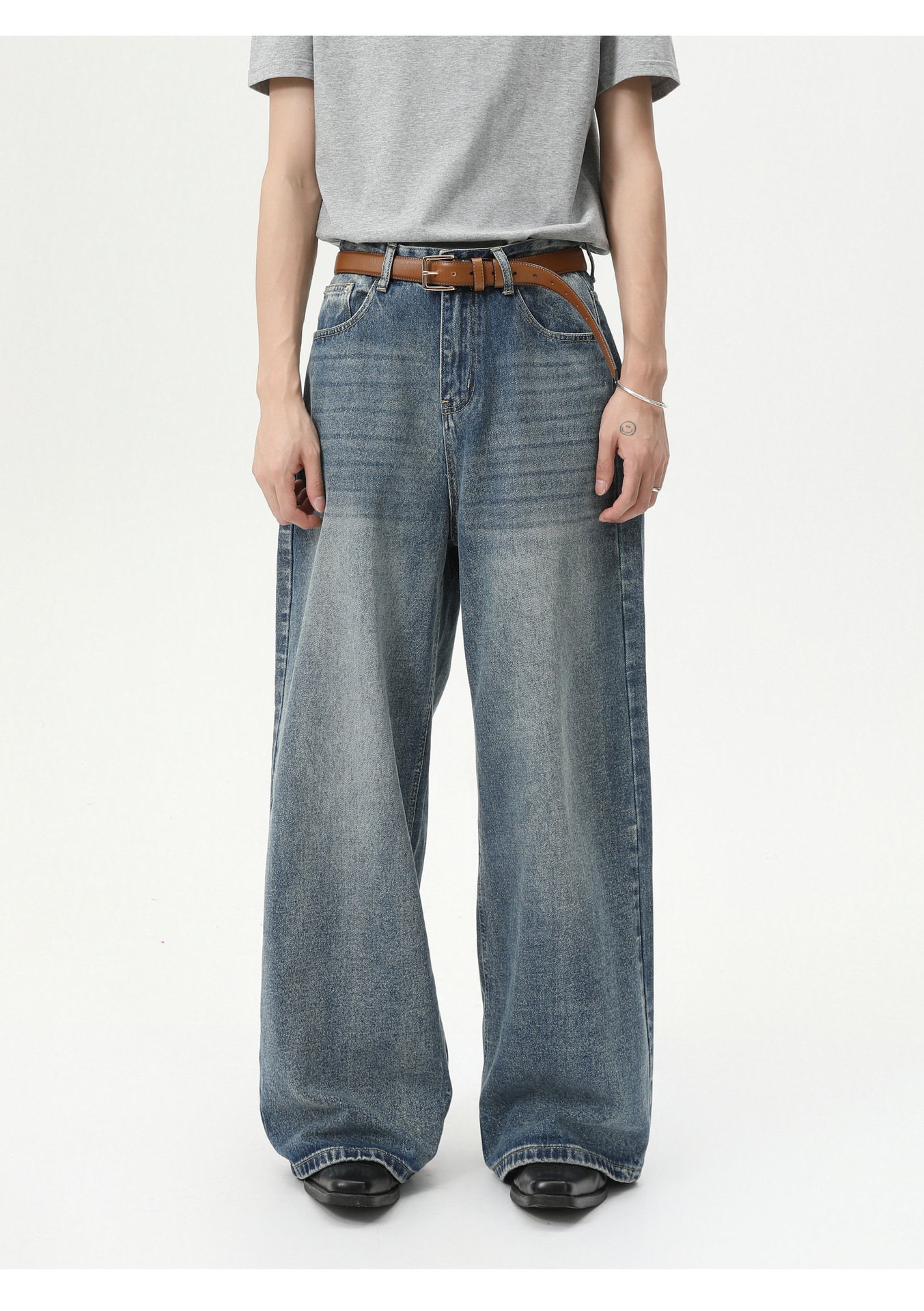 MTLCLOTHES Hombres| Coreano cleanfit recto colgando sensación de piernas anchas con pantalones vaqueros lavados con agua