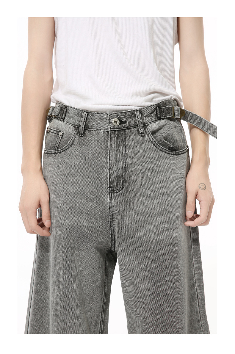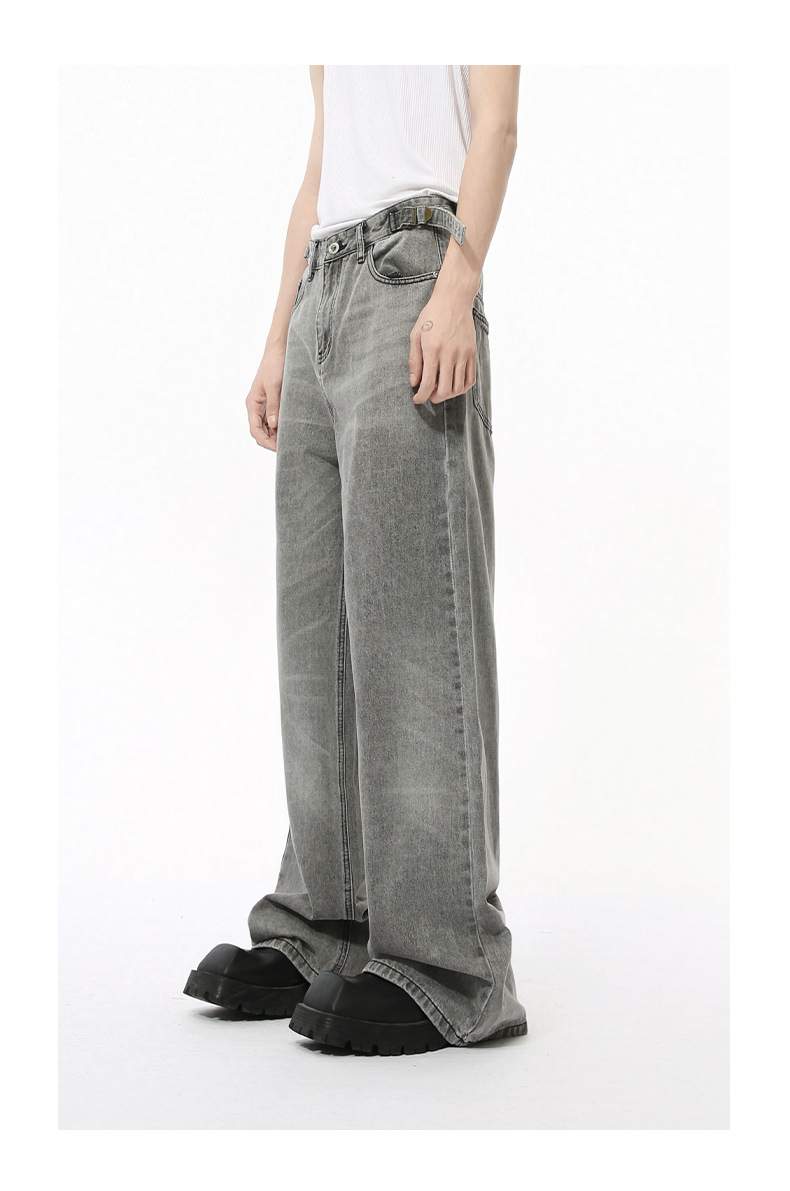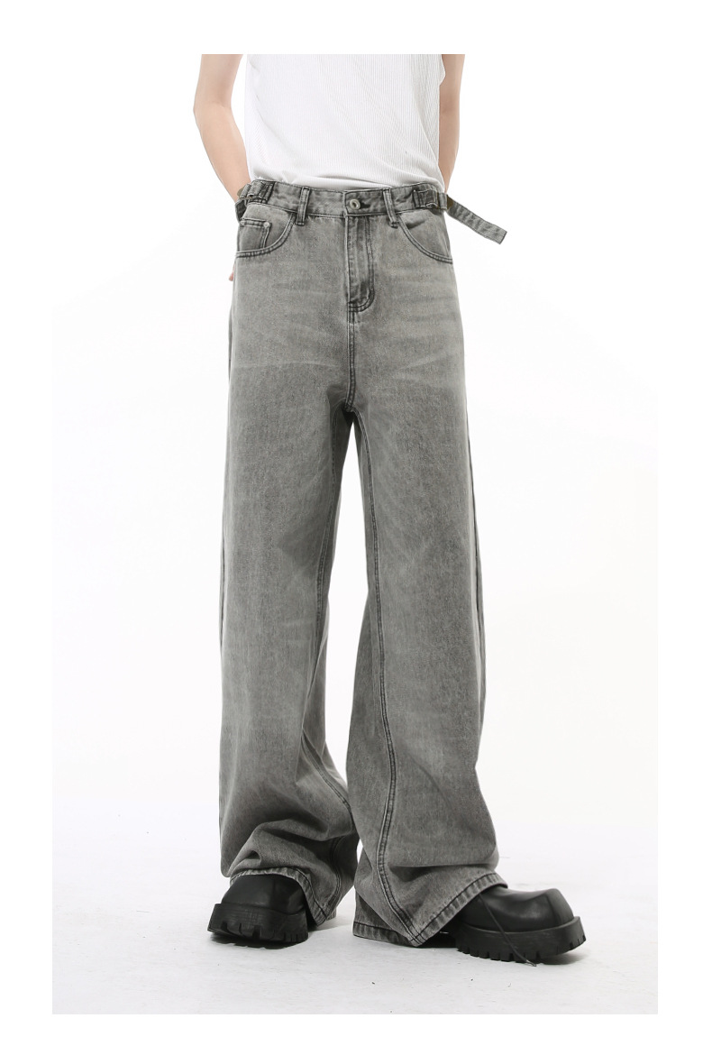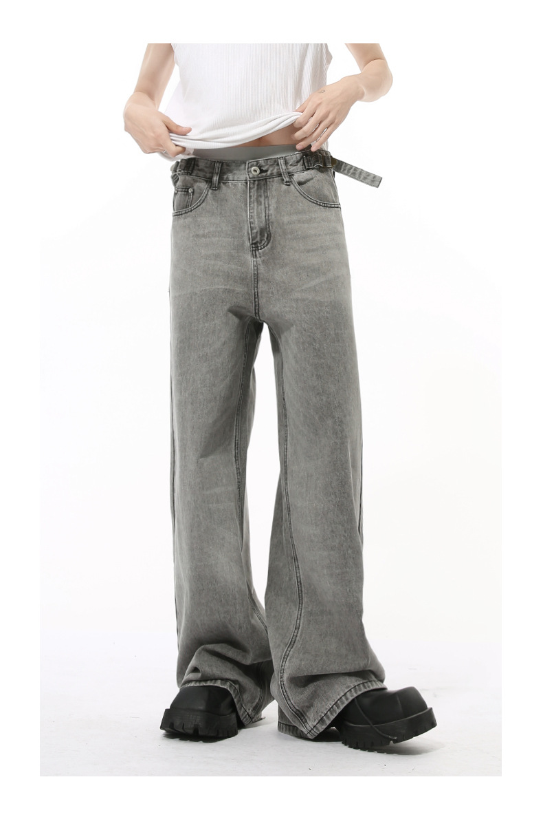MTLCLOTHES Hombres| Otoño nuevo nicho retró cinturón ajustable rectas sueltas jeans grises