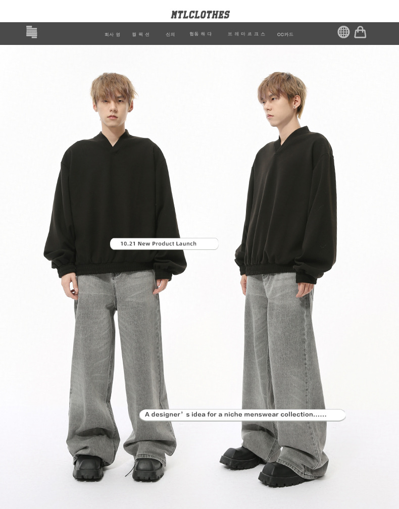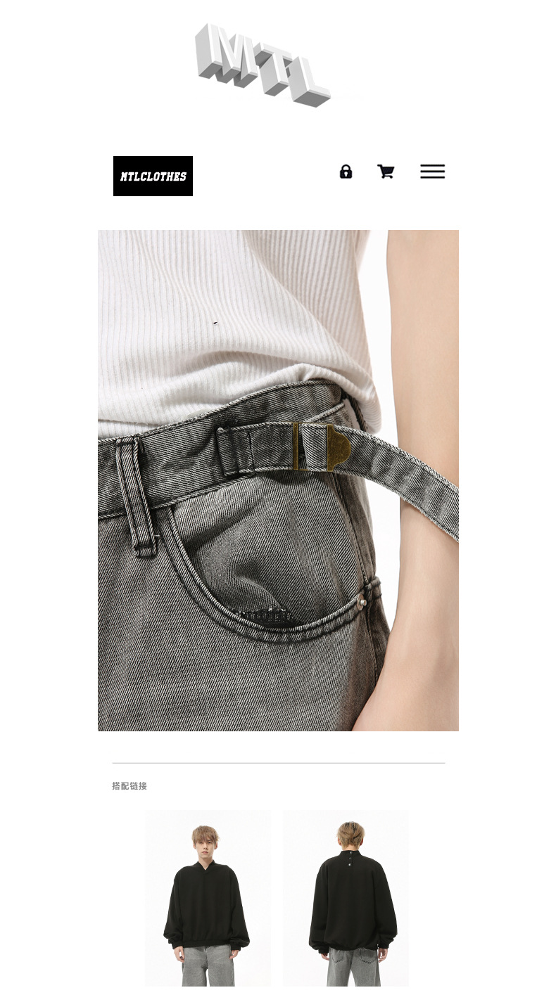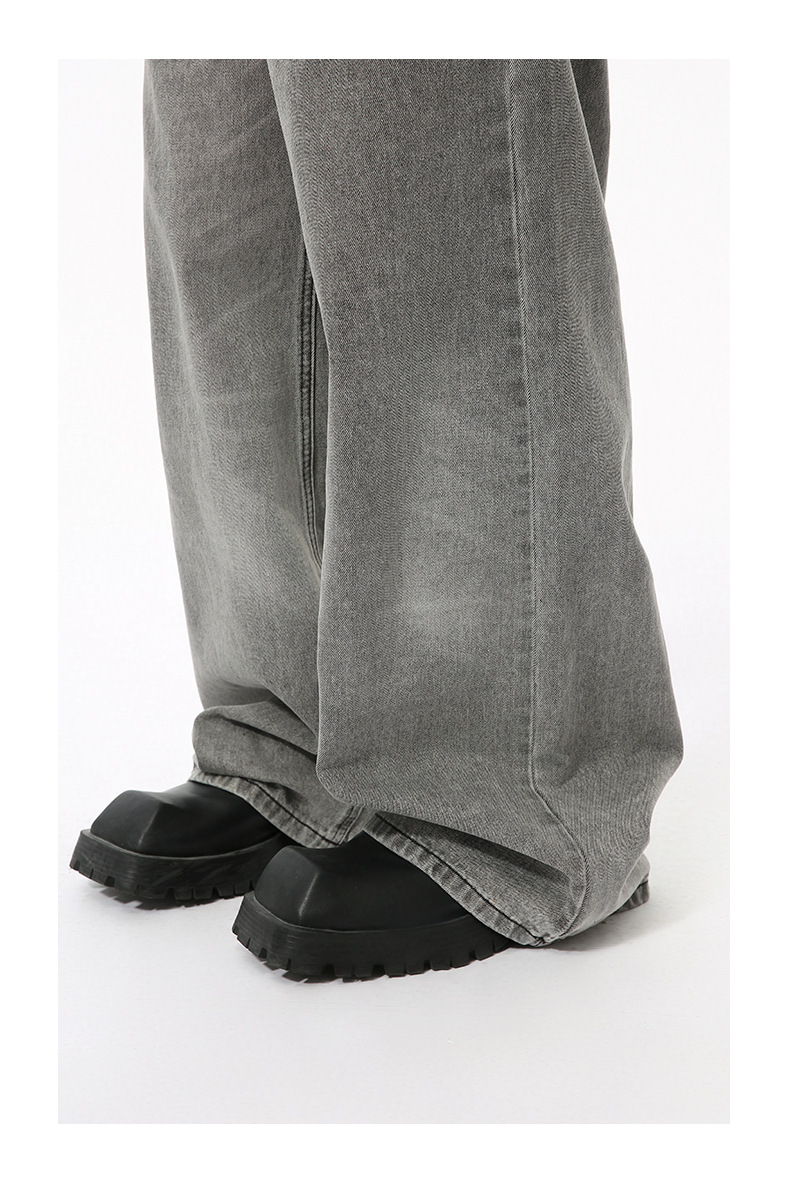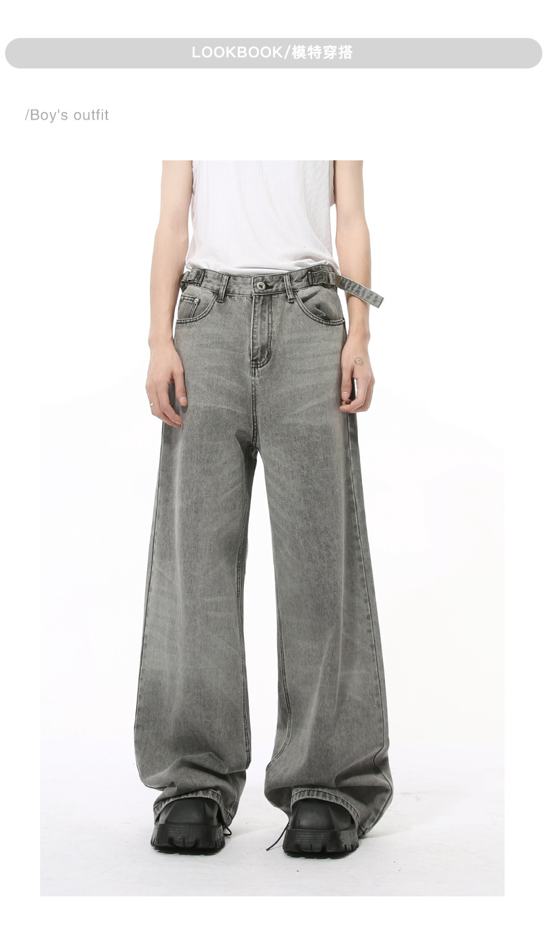MTLCLOTHES Hombres| Otoño nuevo nicho retró cinturón ajustable rectas sueltas jeans grises