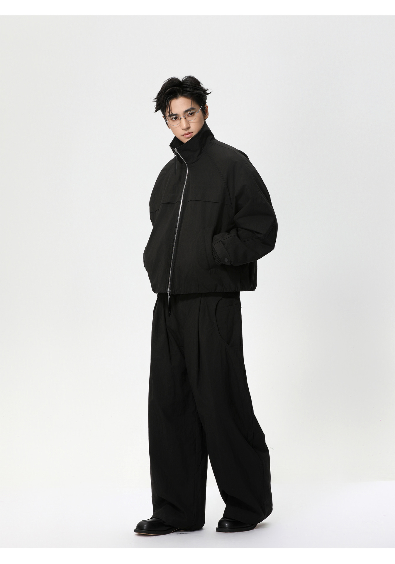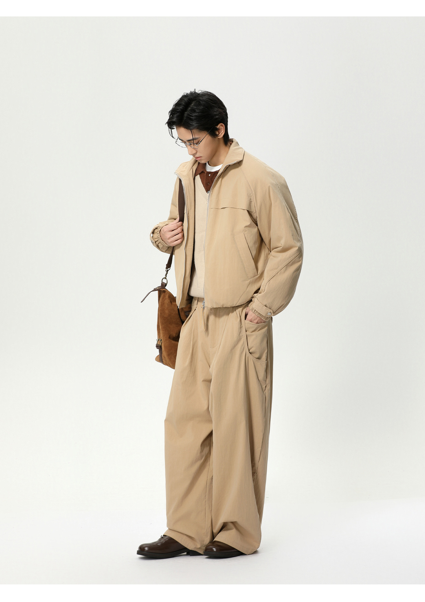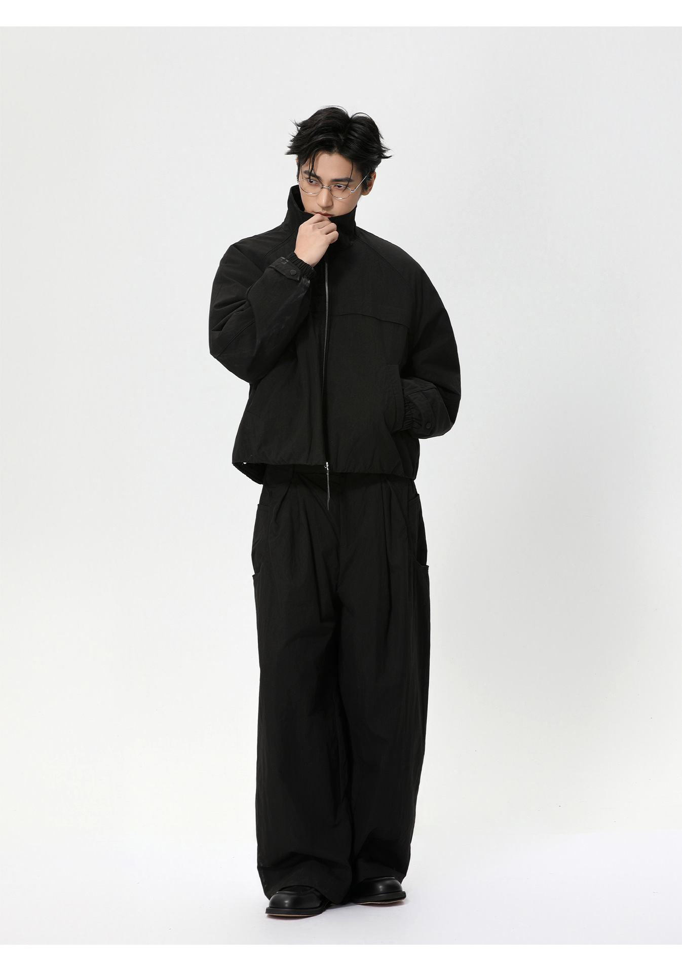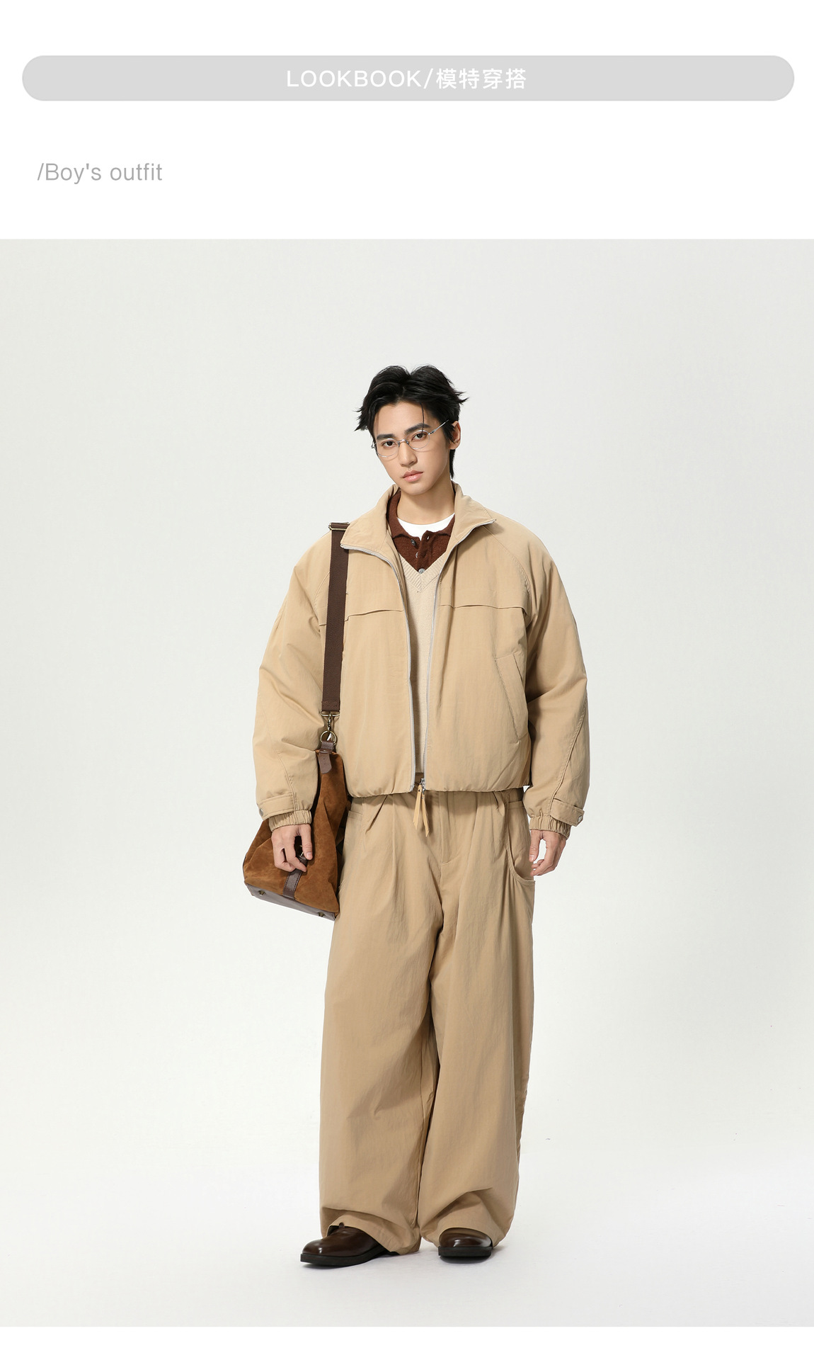 MTLCLOTHES Hombres| Coreano simple ropa de algodón de color sólido chaqueta cintura elástica pantalones casuales multifuncional conjunto diario