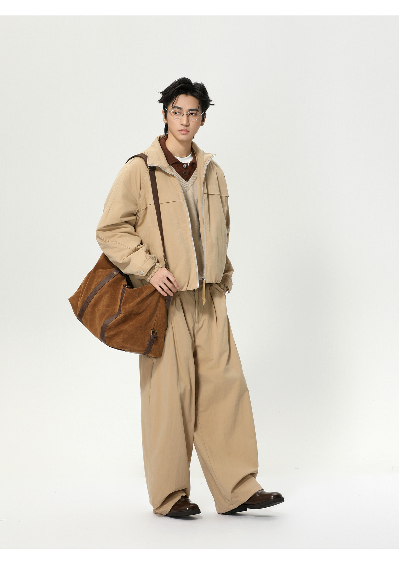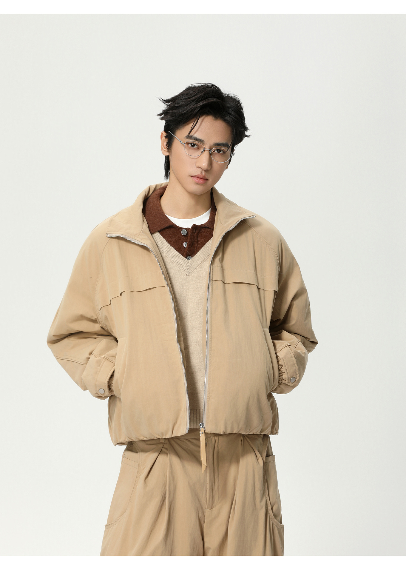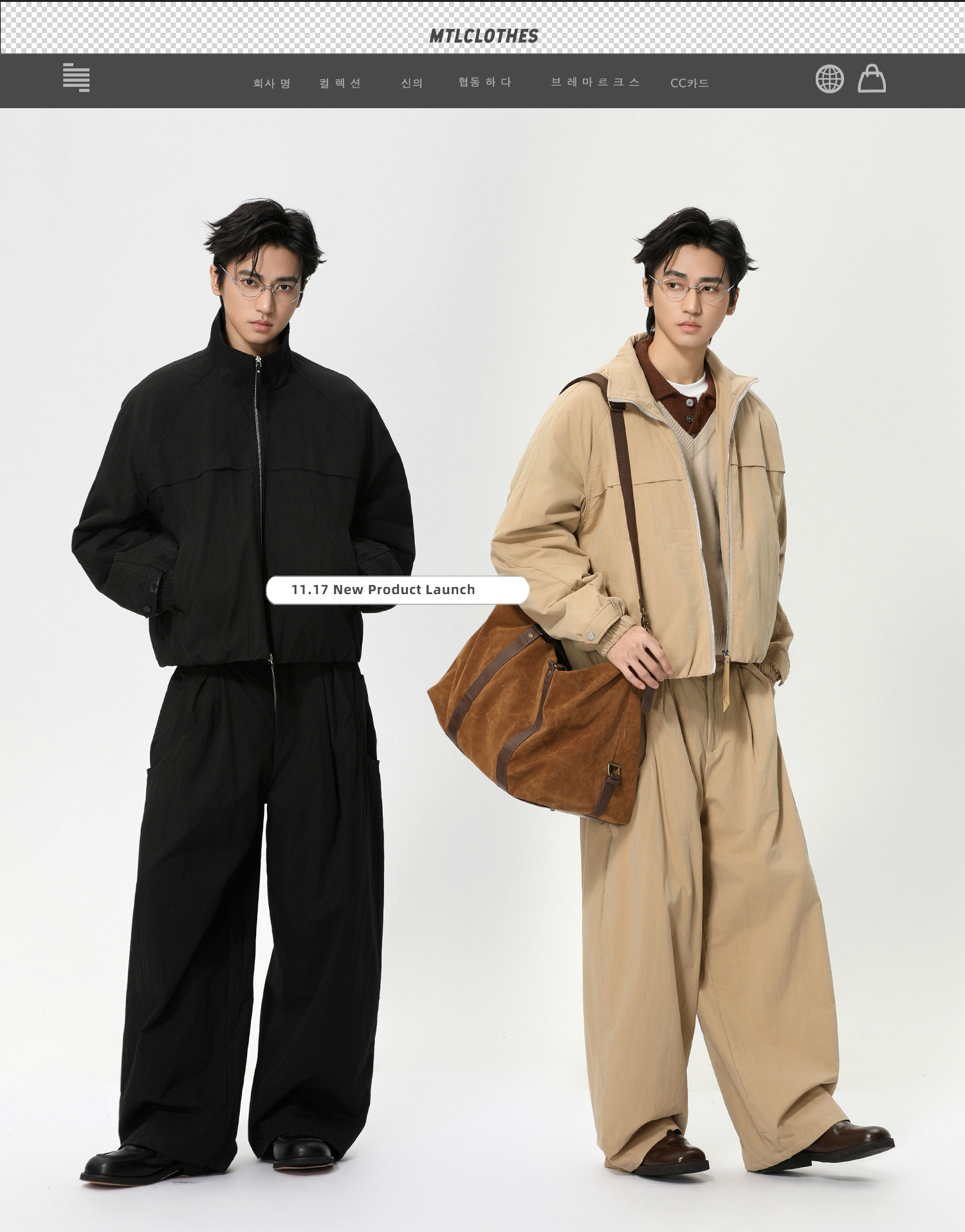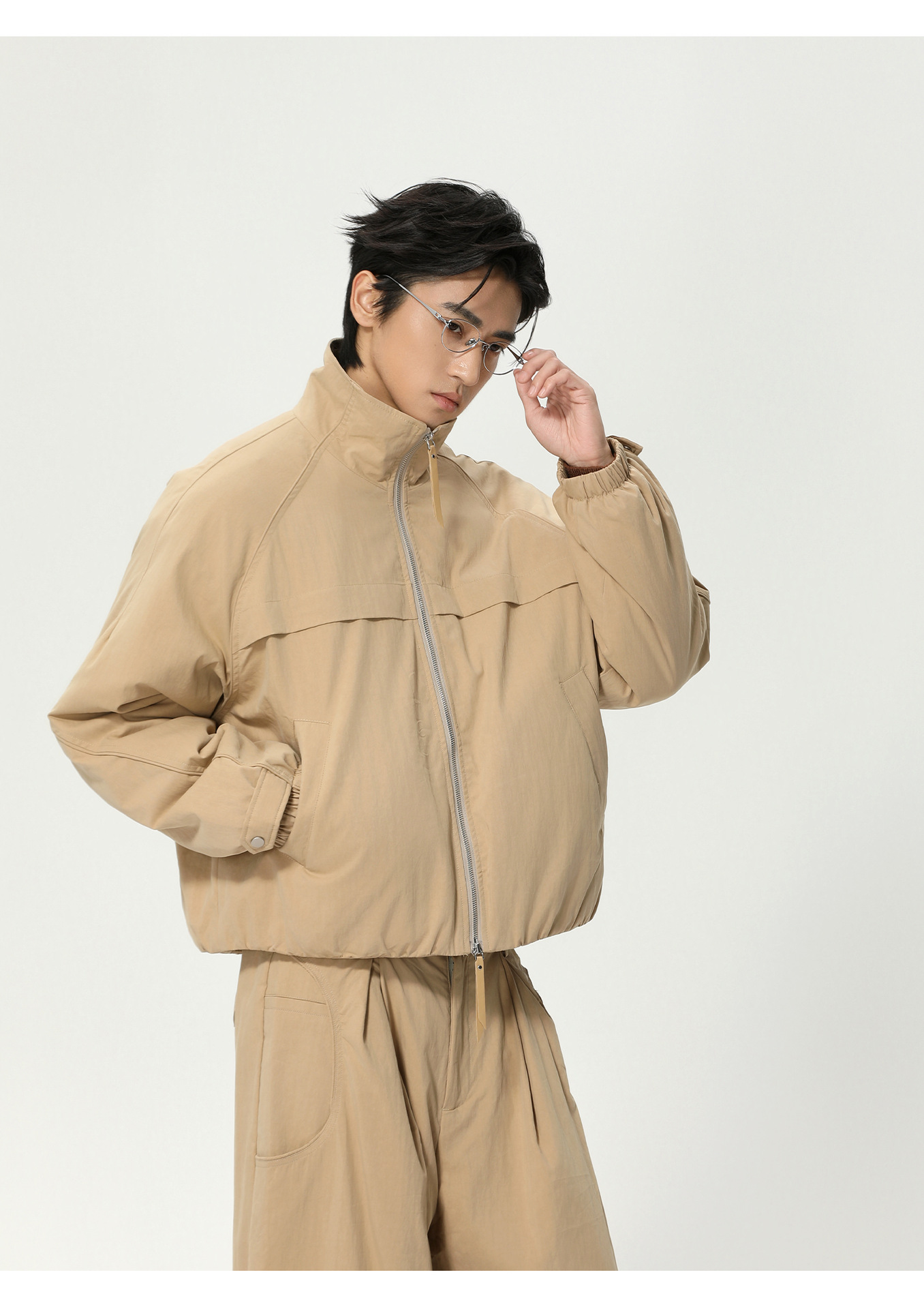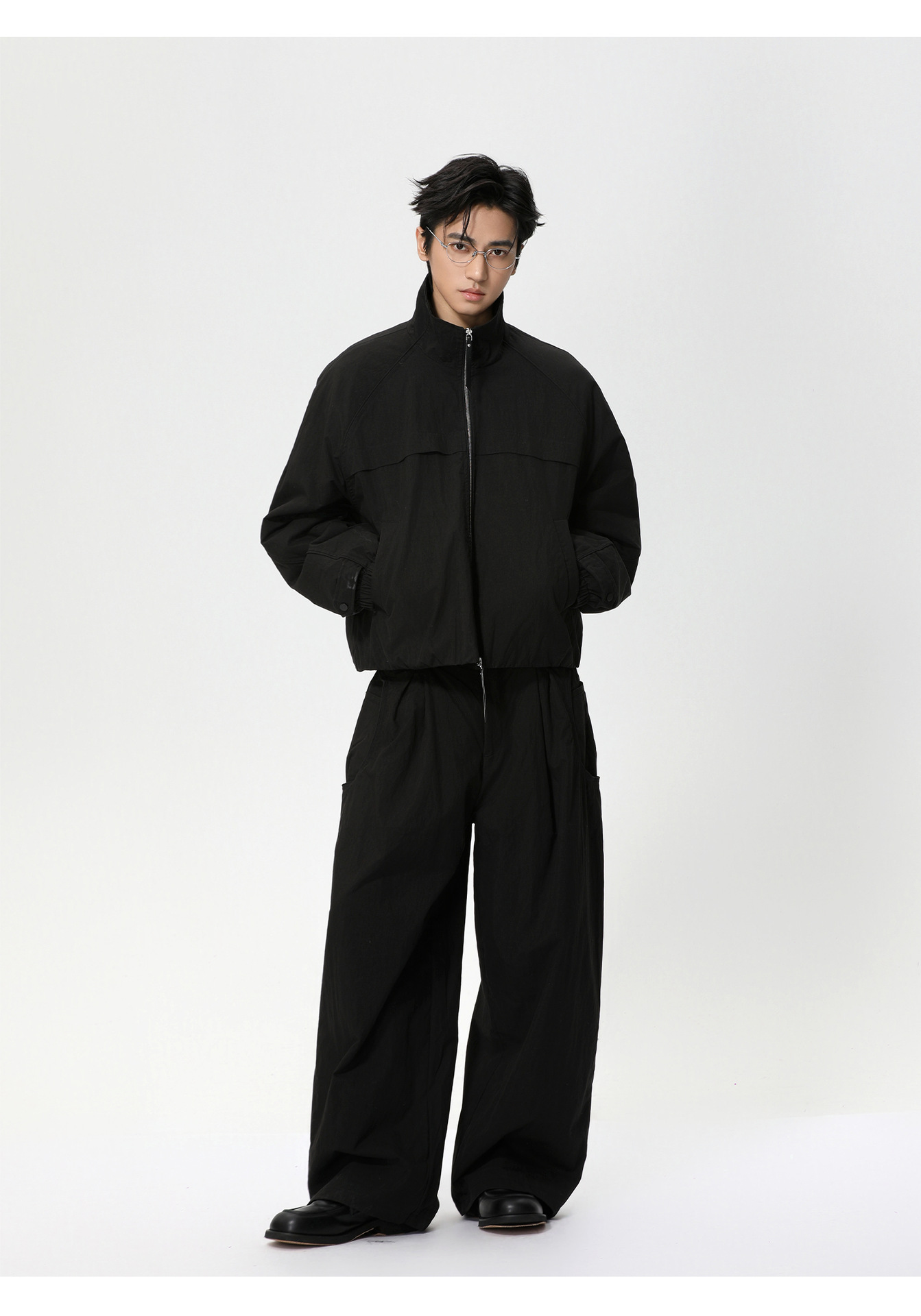 MTLCLOTHES Hombres| Coreano simple ropa de algodón de color sólido chaqueta cintura elástica pantalones casuales multifuncional conjunto diario