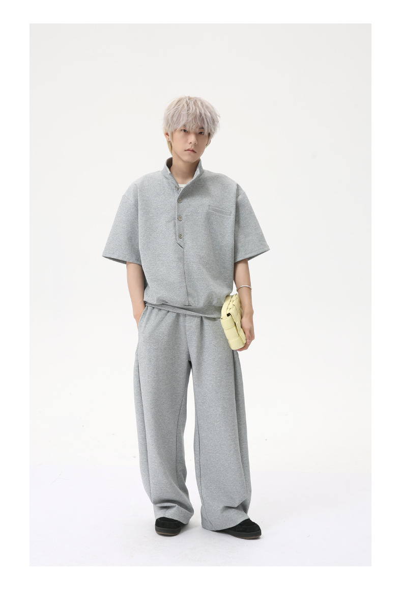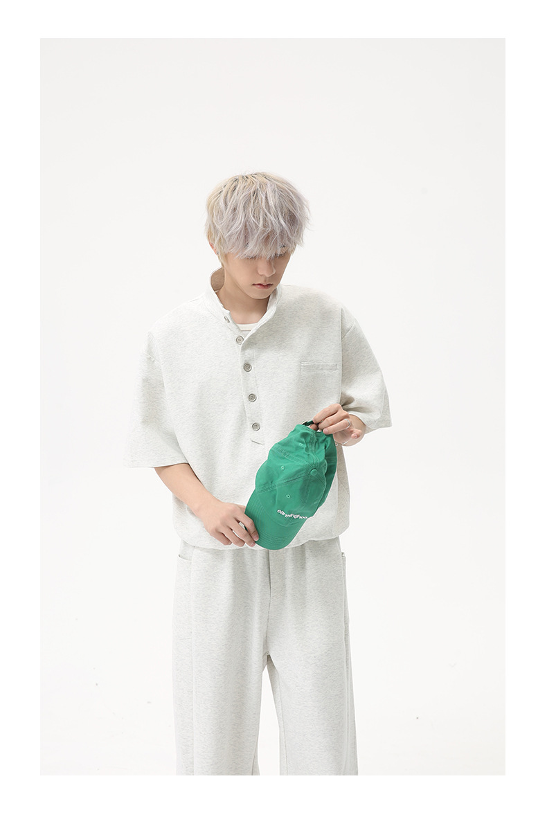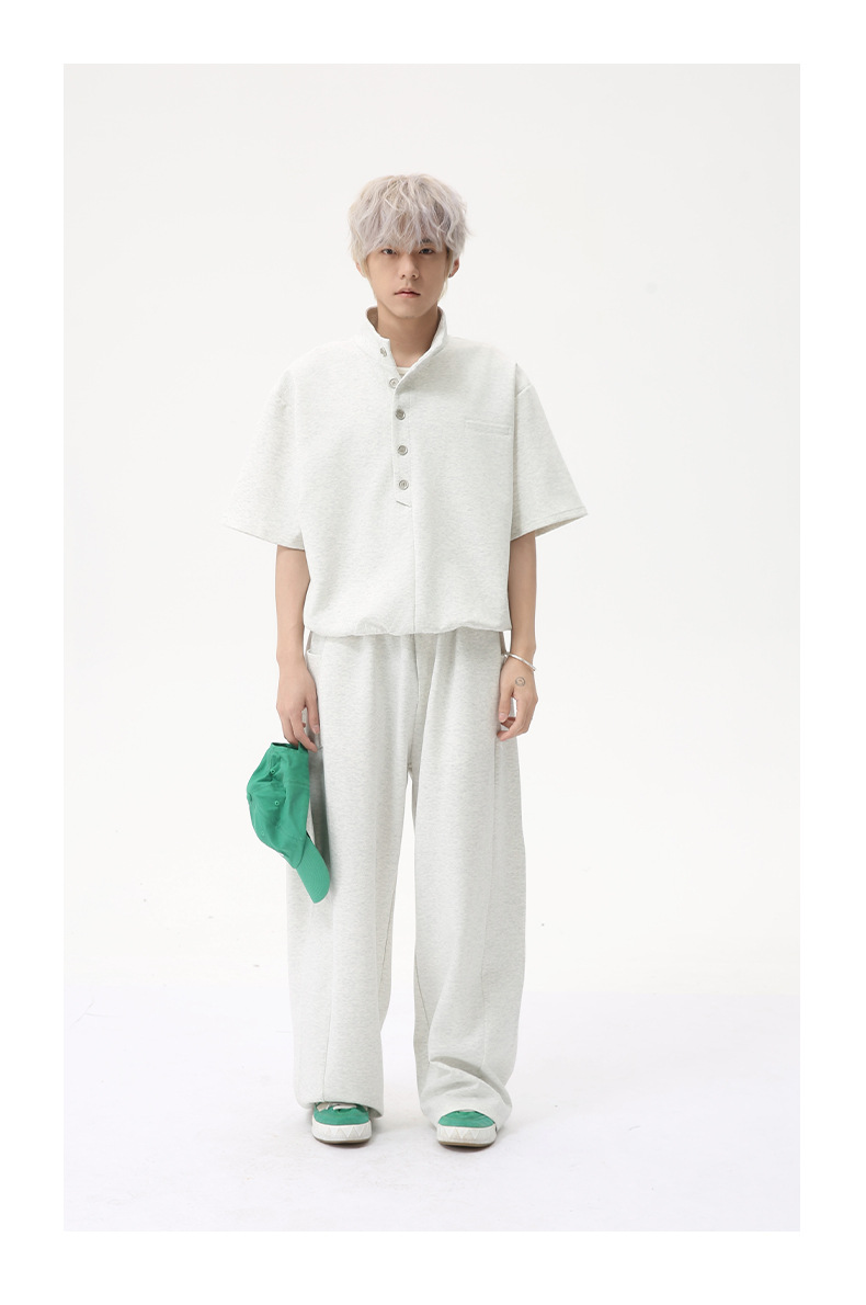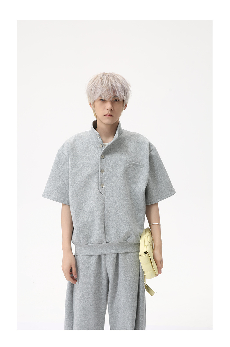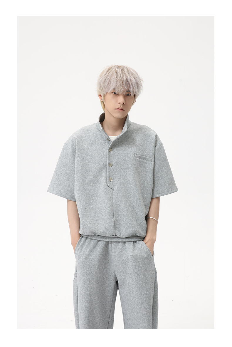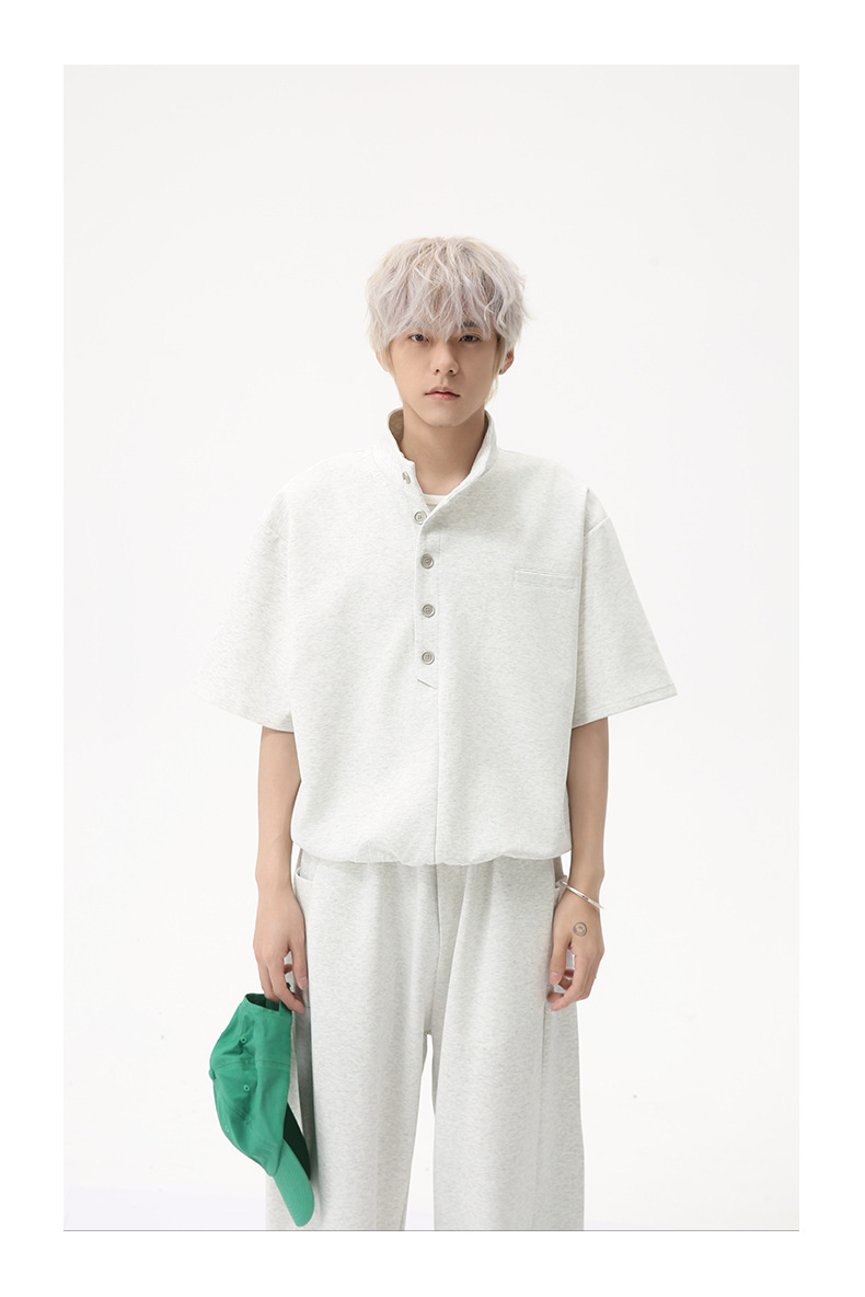 MTLCLOTHES para hombre | Coreano simple espacio botón de algodón cuello alto color sólido casual todo fósforo traje deportivo de moda