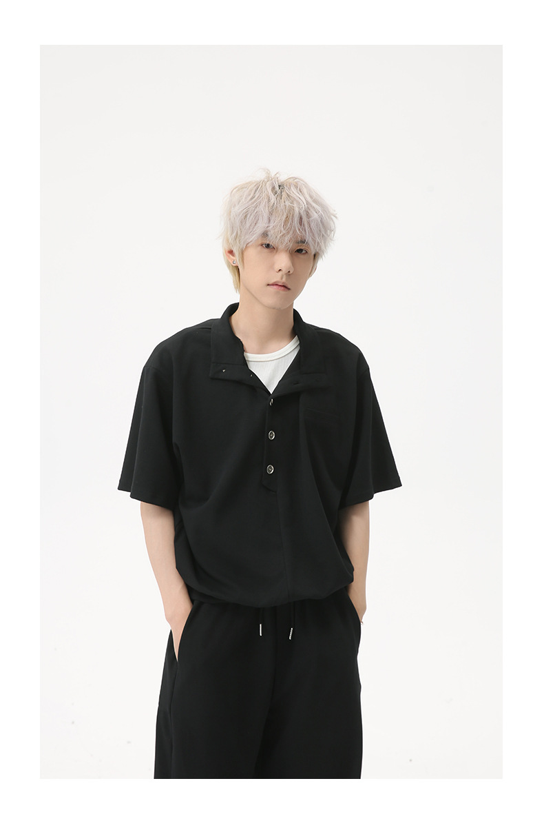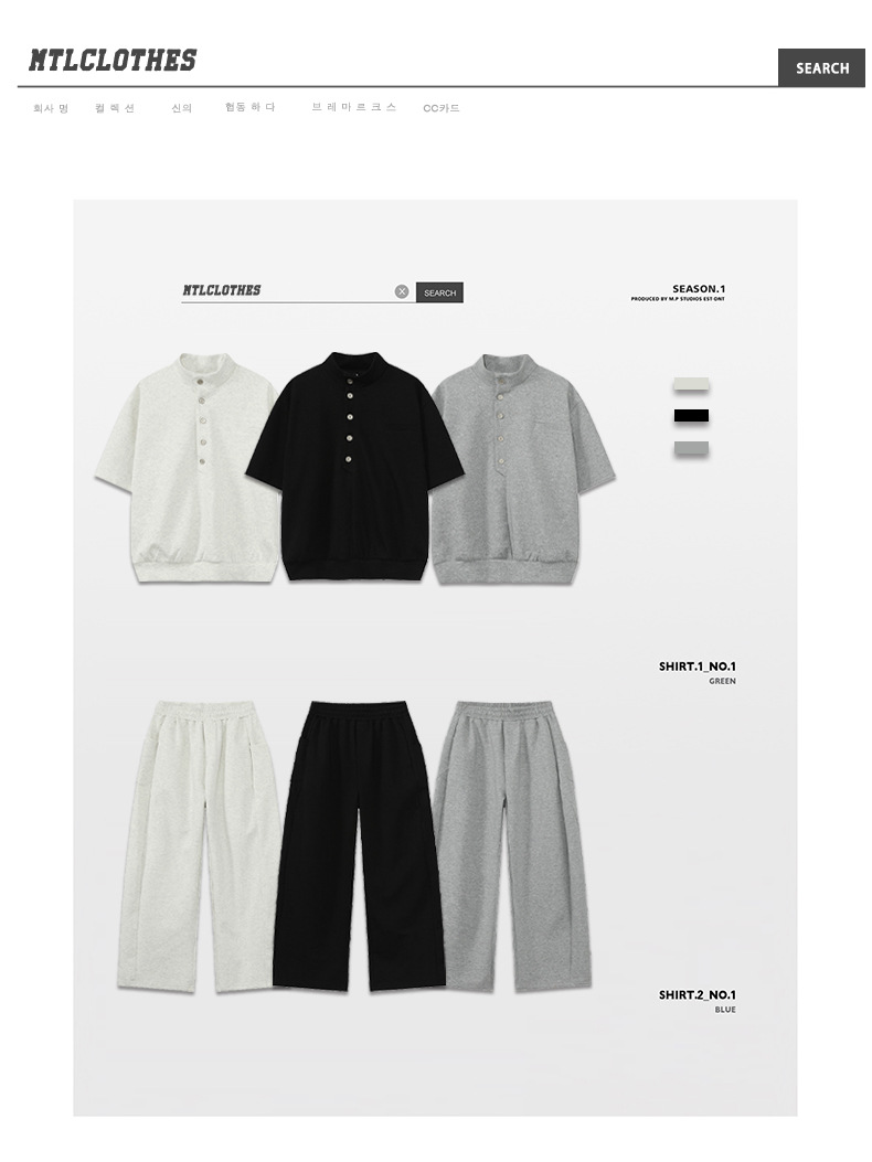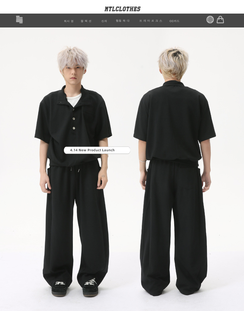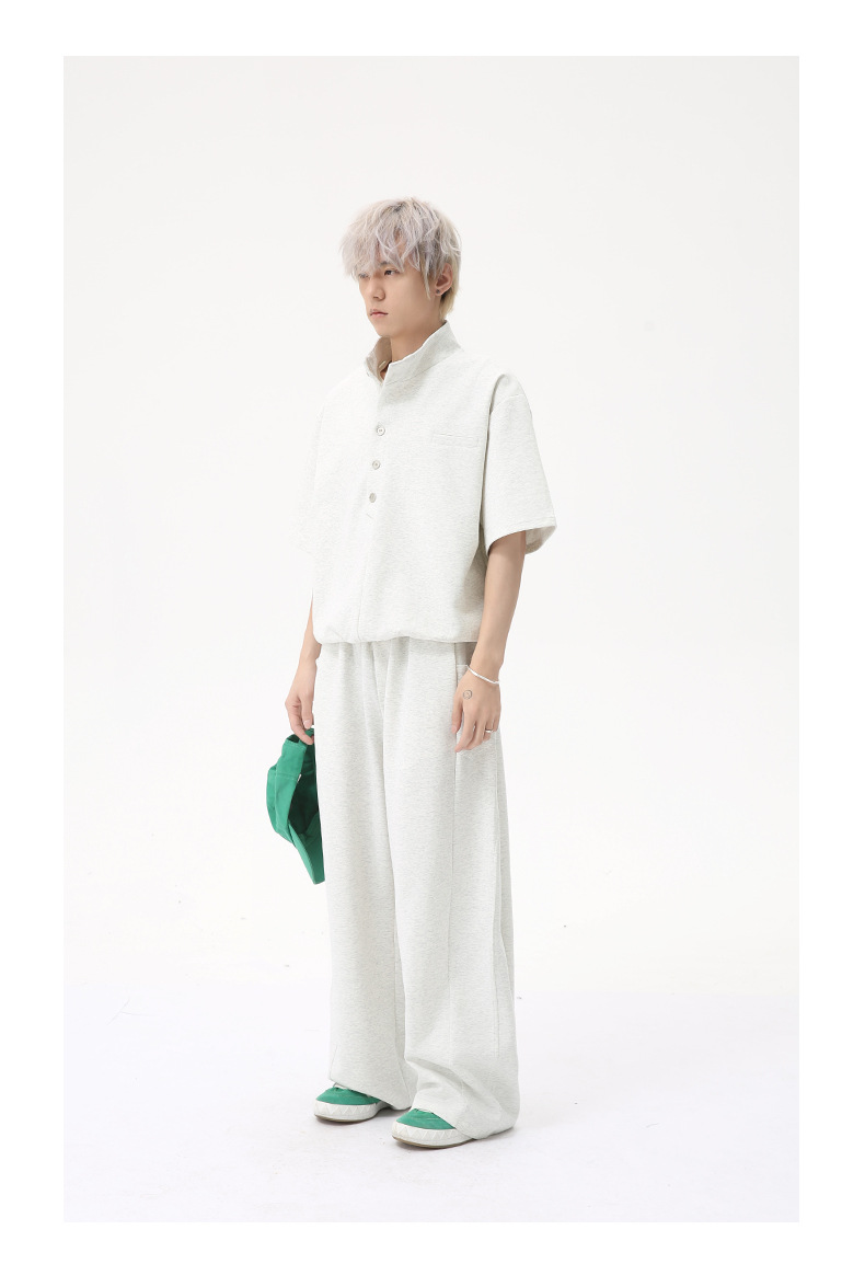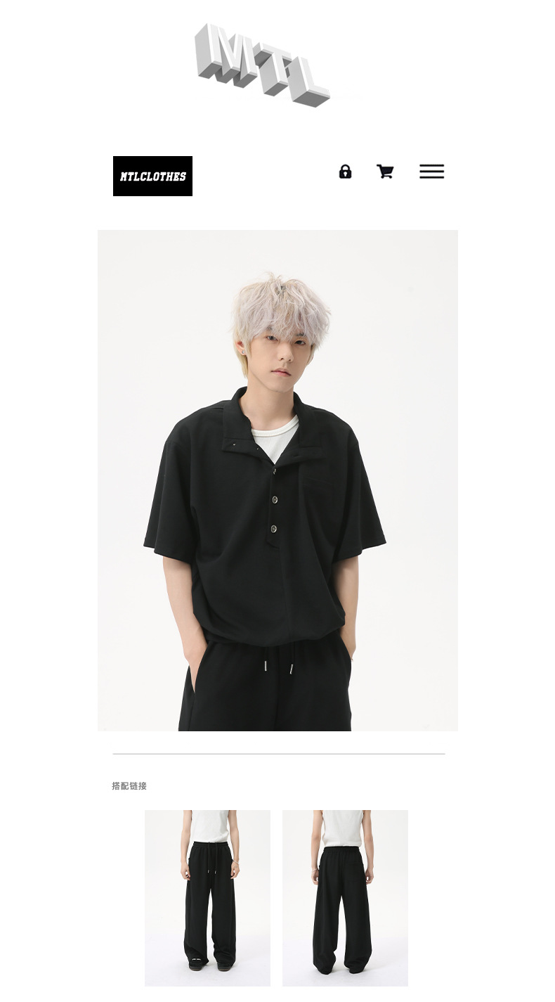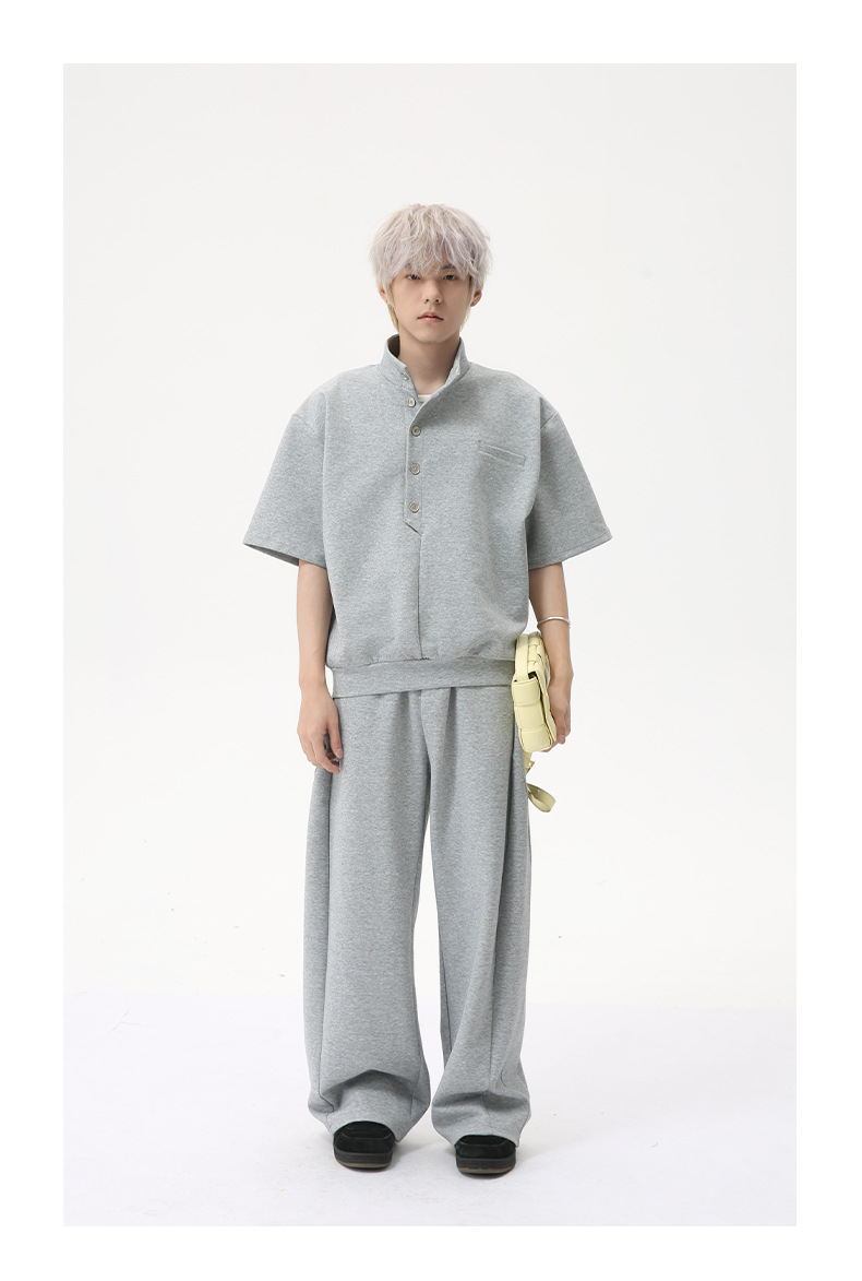 MTLCLOTHES para hombre | Coreano simple espacio botón de algodón cuello alto color sólido casual todo fósforo traje deportivo de moda