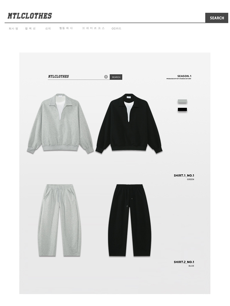 | Color | Blusa negra, blusa gris, pantalón negro, pantalón gris |