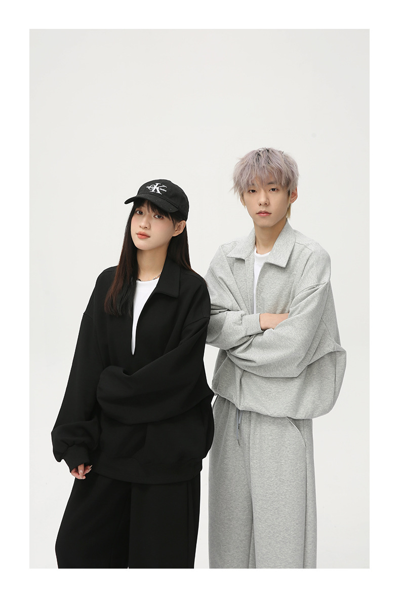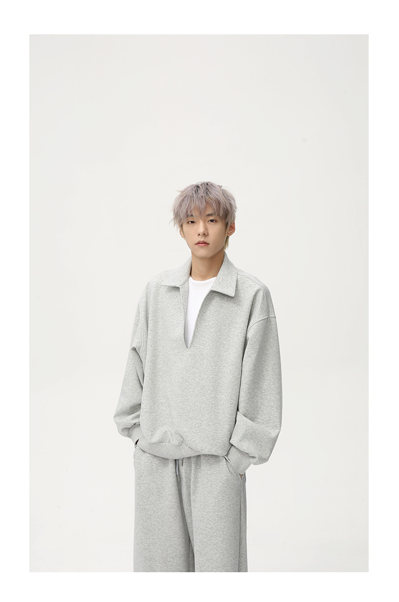 MTLCLOTHES Hombres| Coreano sólido minimalista estilo deportivo casual diario V-collar suelto conjunto versátil
