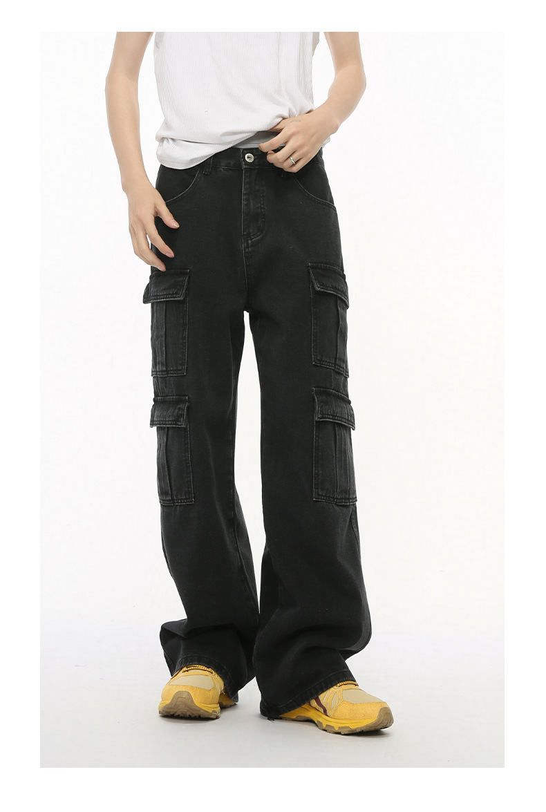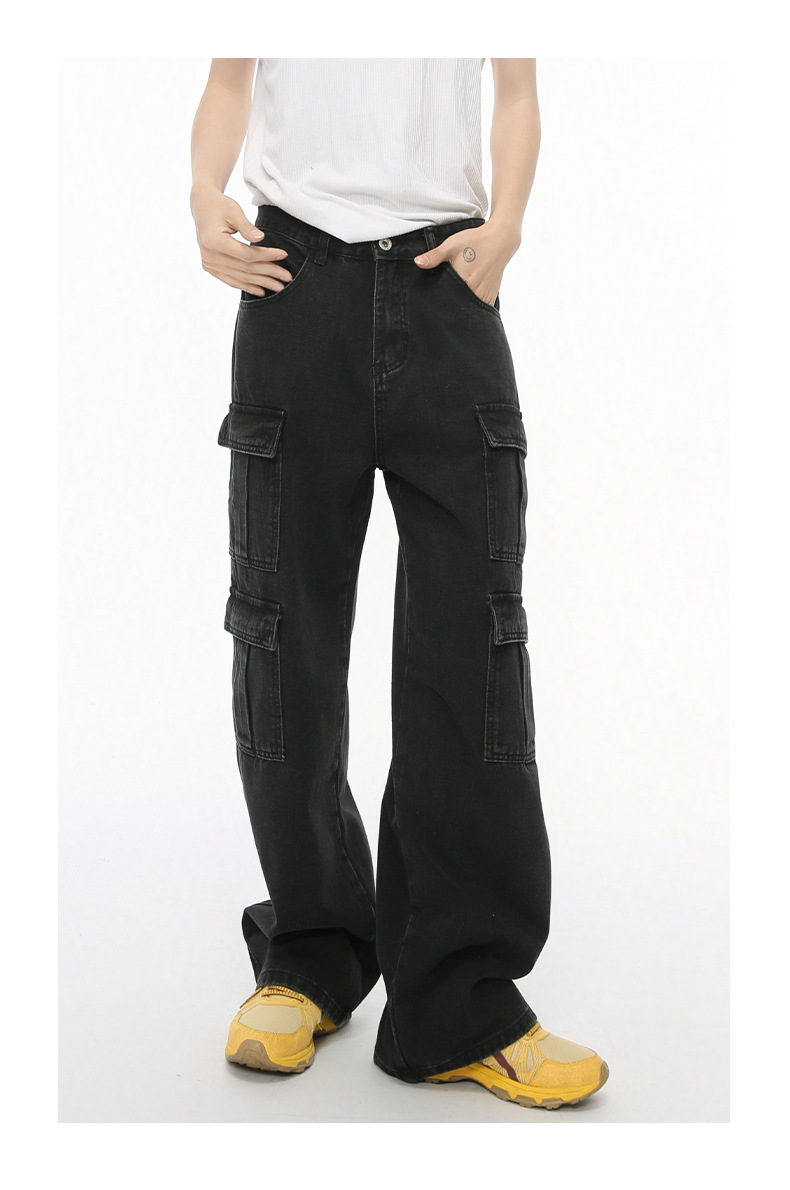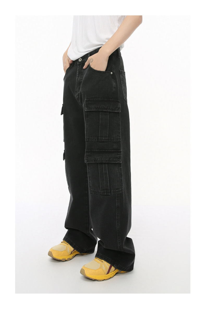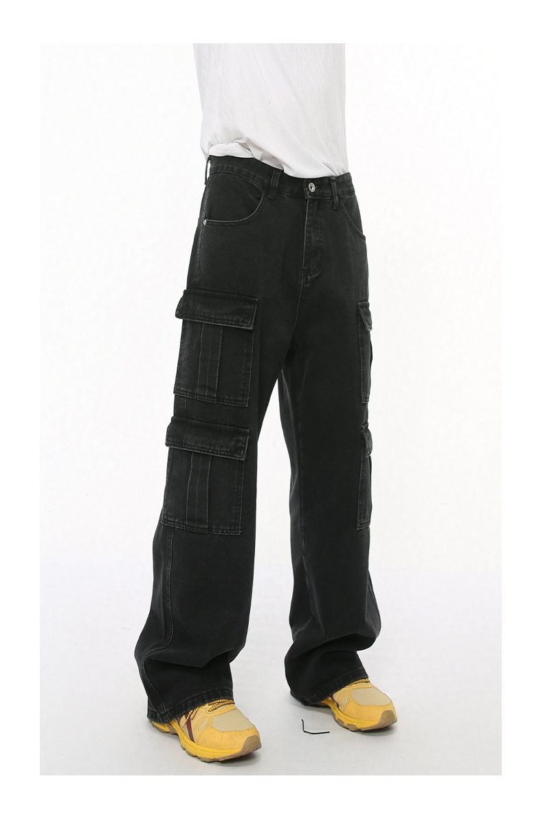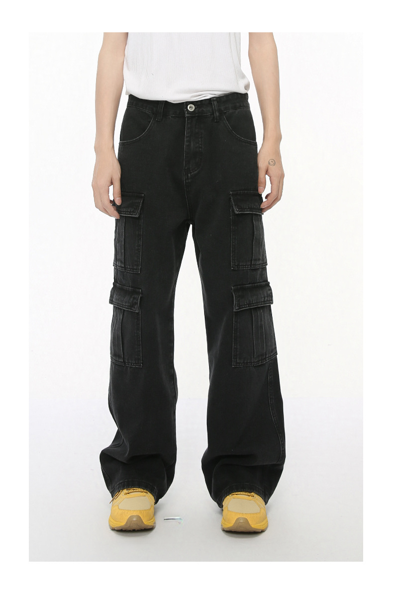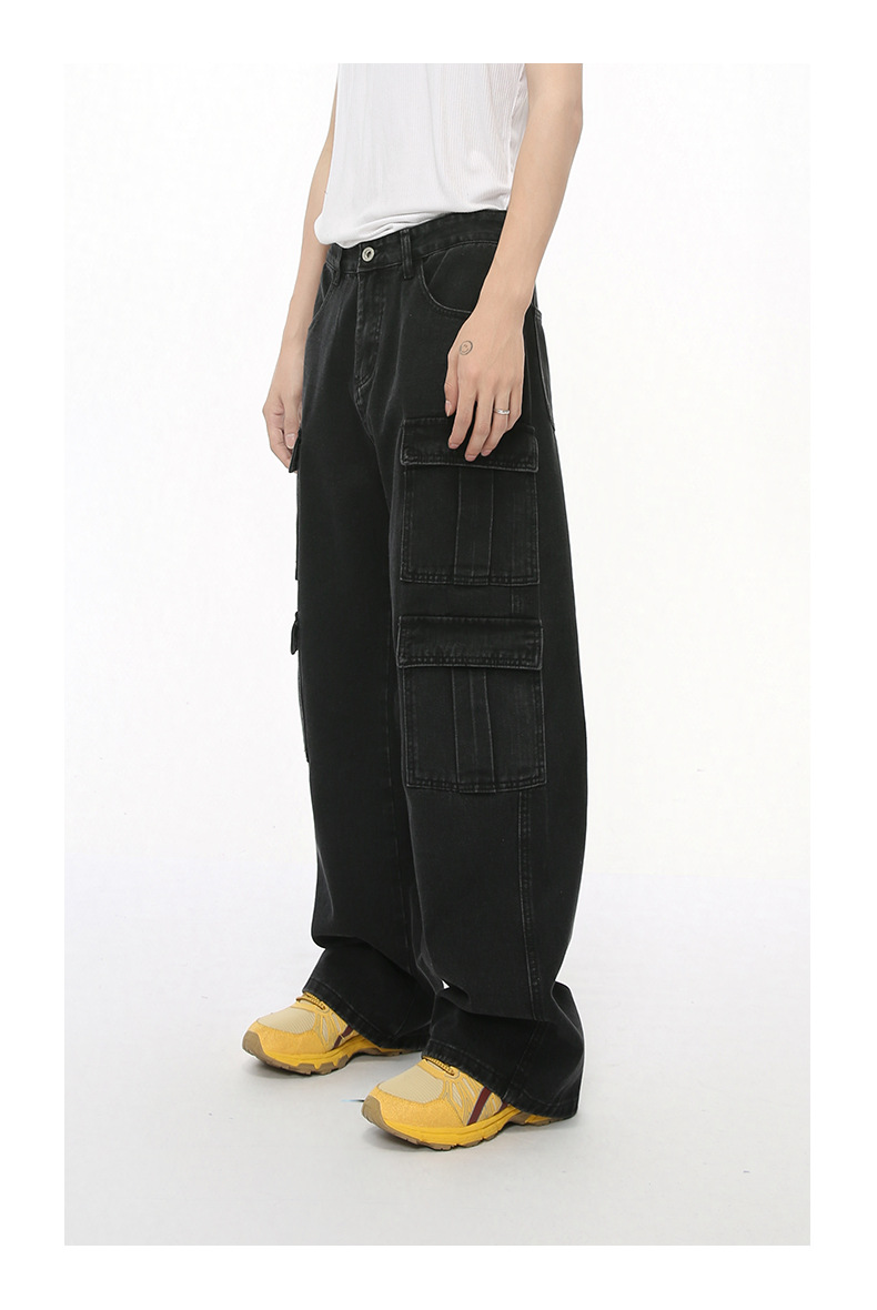 MTLCLOTHES Hombres| Coreana de la industria pesada suelta de la calle de moda recta multi-bolsillo decoración de piernas anchas jeans