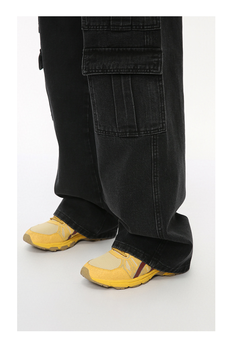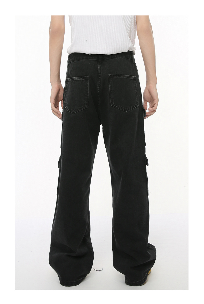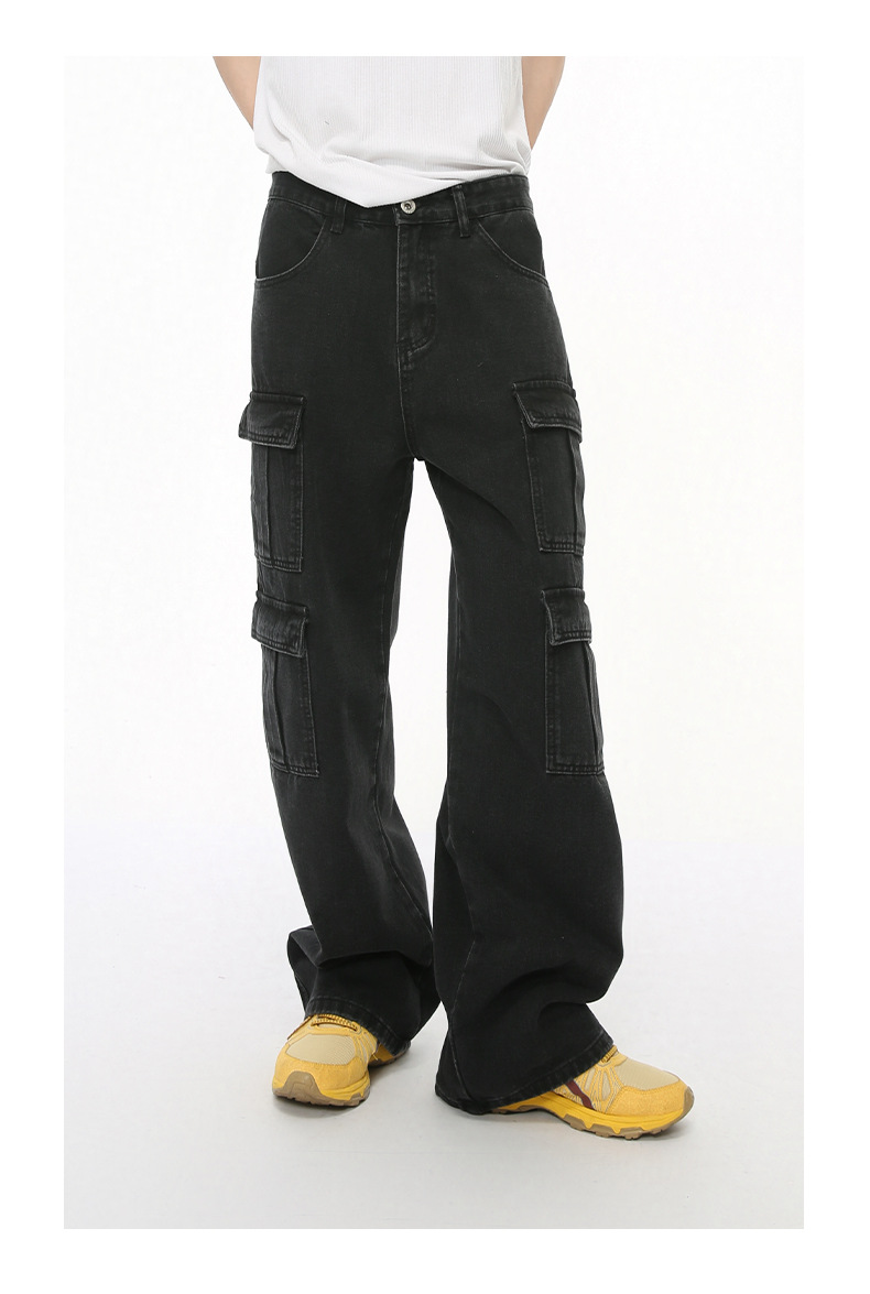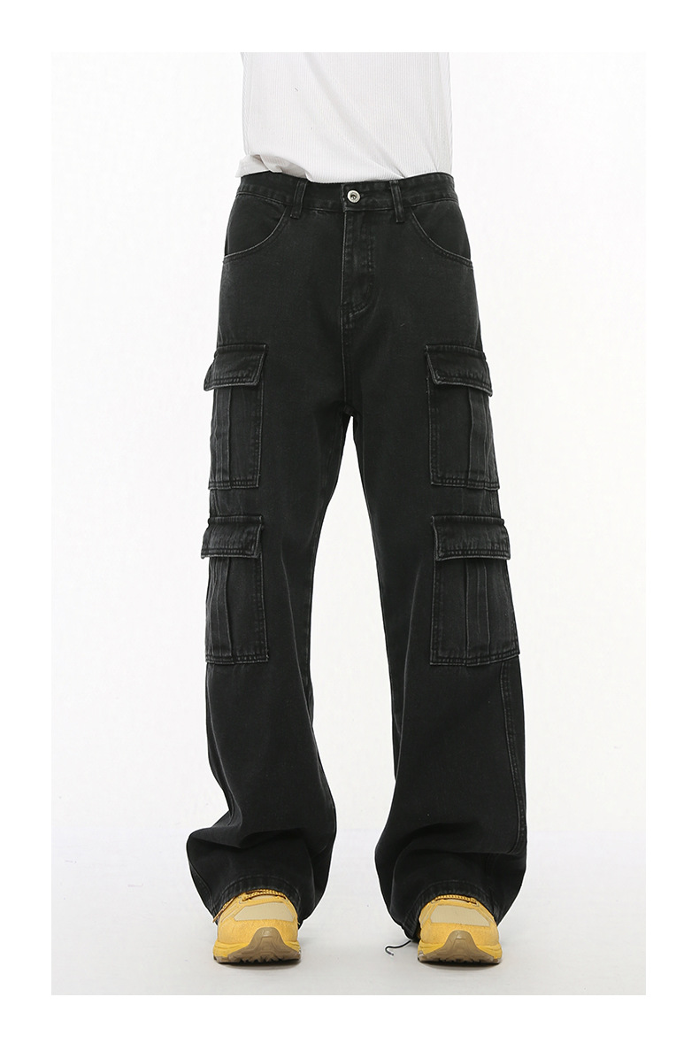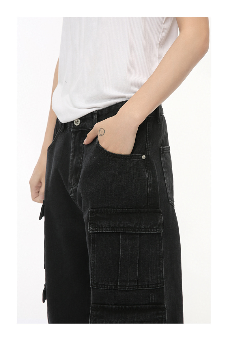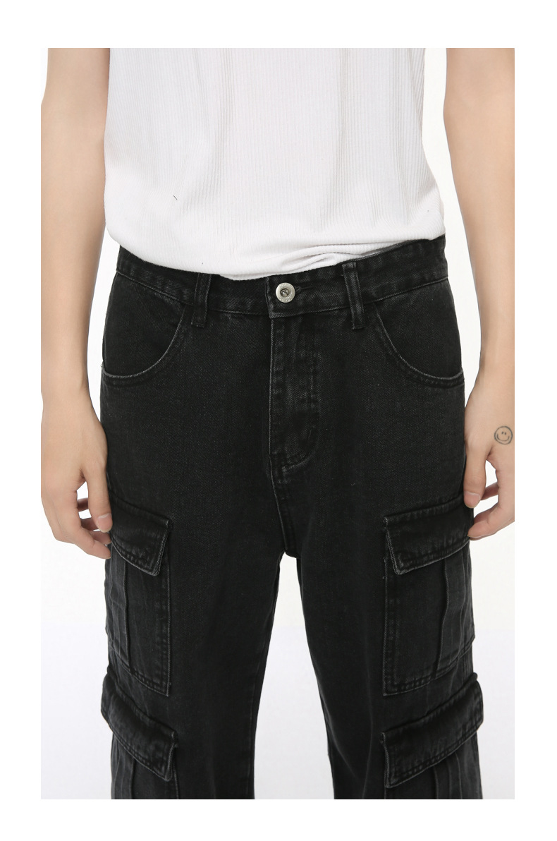 MTLCLOTHES Hombres| Coreana de la industria pesada suelta de la calle de moda recta multi-bolsillo decoración de piernas anchas jeans