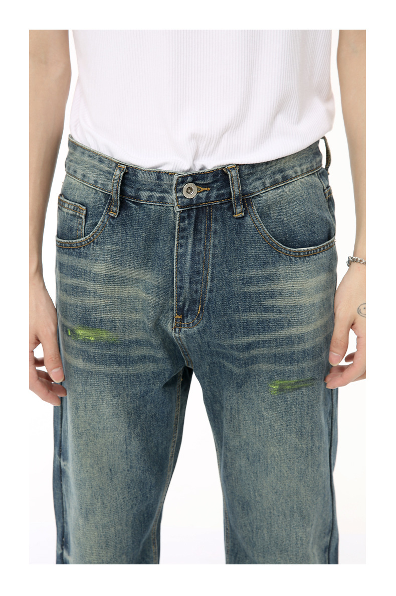 MTLCLOTHES Hombres| 2024 verano nuevos productos de alta calle simple pintado delgado micro lavar la tendencia de jeans