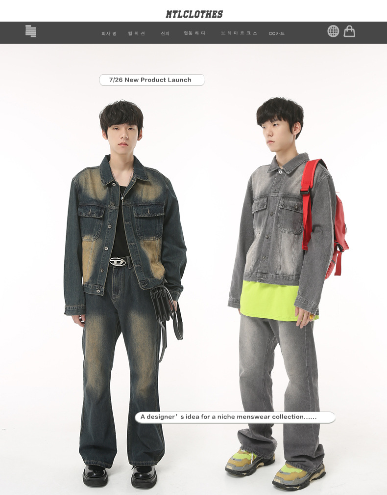 Mtlclothes ropa de Hombre | 2023 nuevo estilo coreano casual suelta MEDIADOS DE-alta cintura micro-pull traje de chaqueta de mezclilla