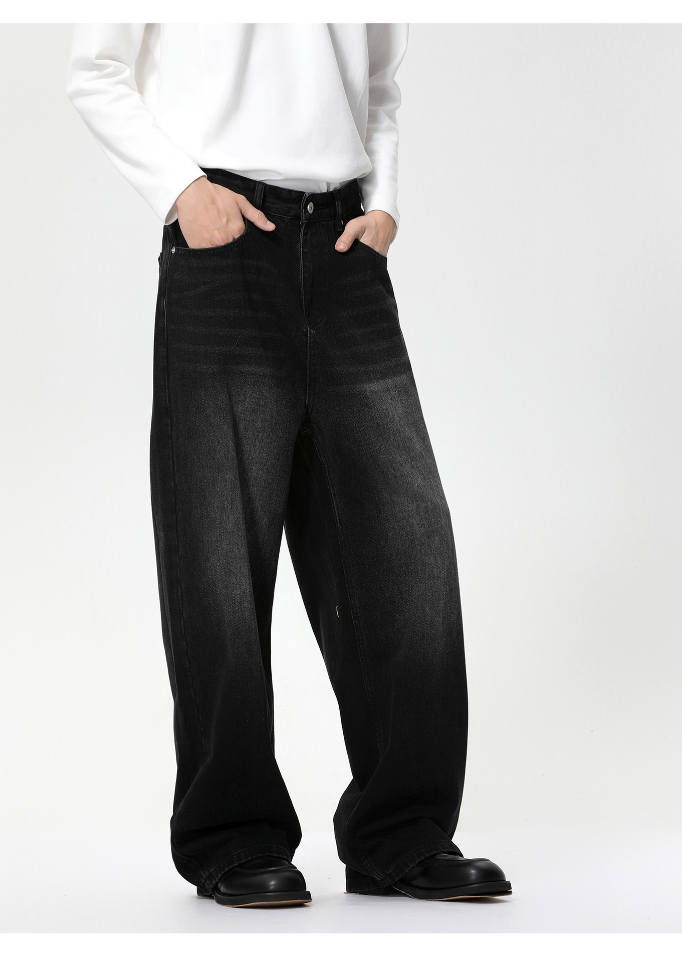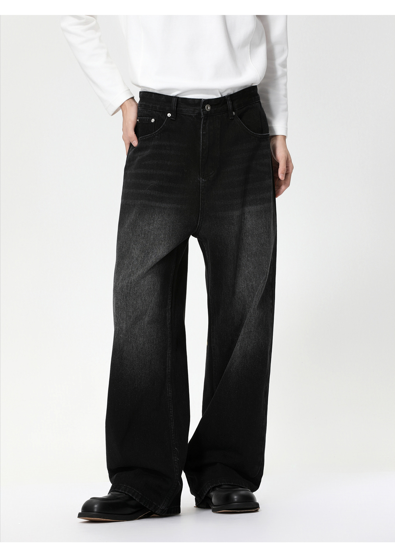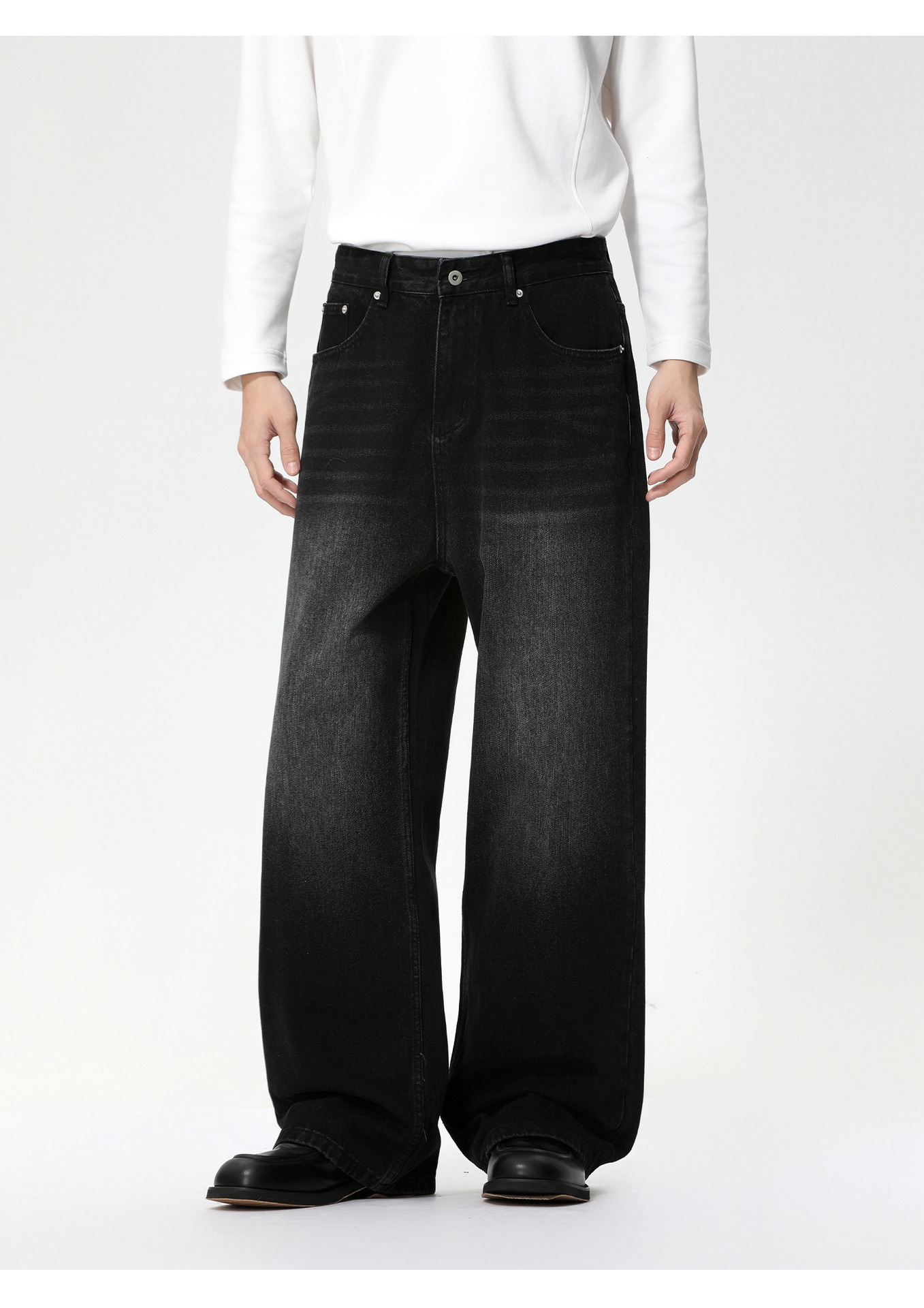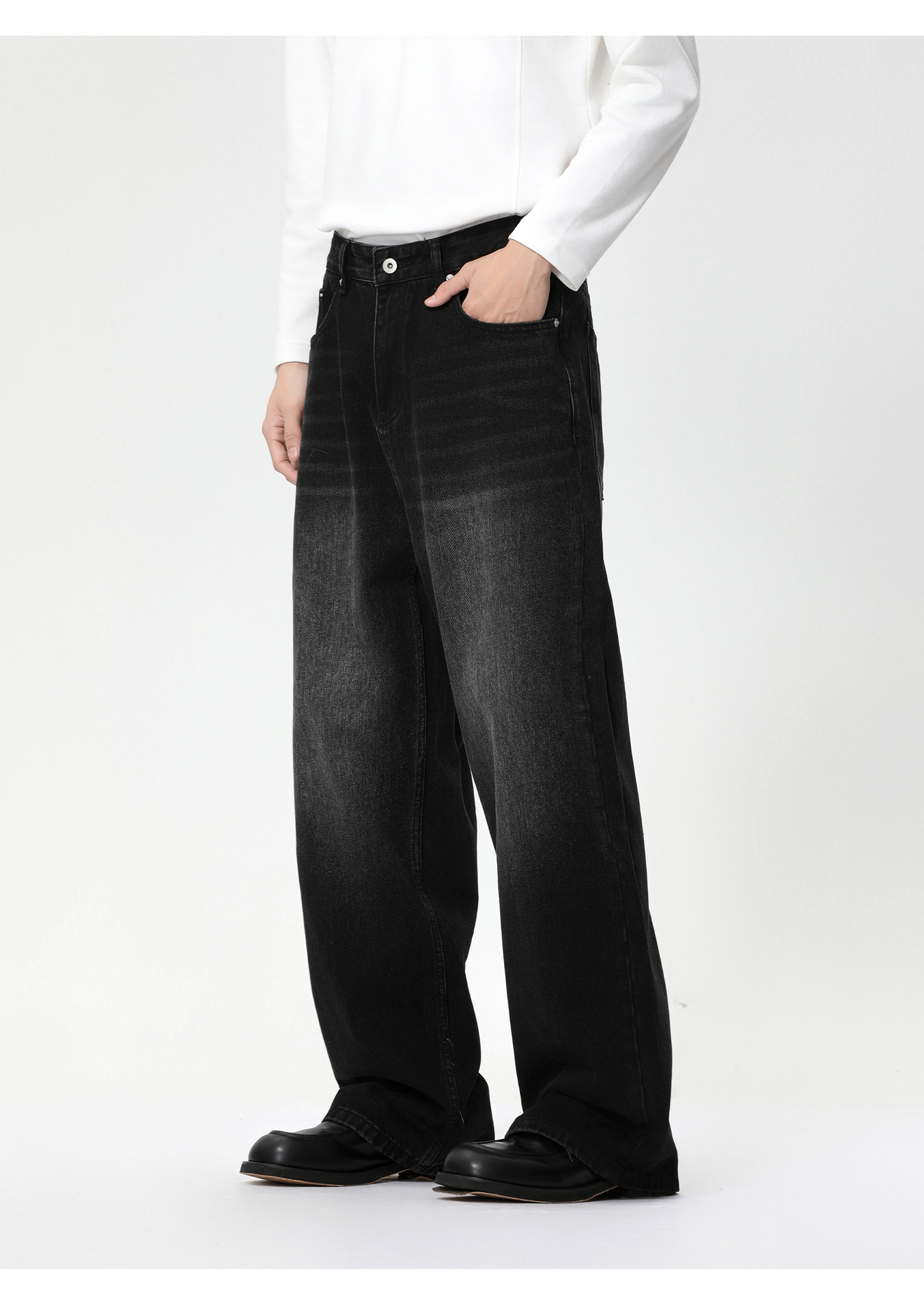 MTLCLOTHES Hombres| Corea del Sur sensación de flujo casual viaje blanco pulido oversize piernas anchas lavados jeans de moda