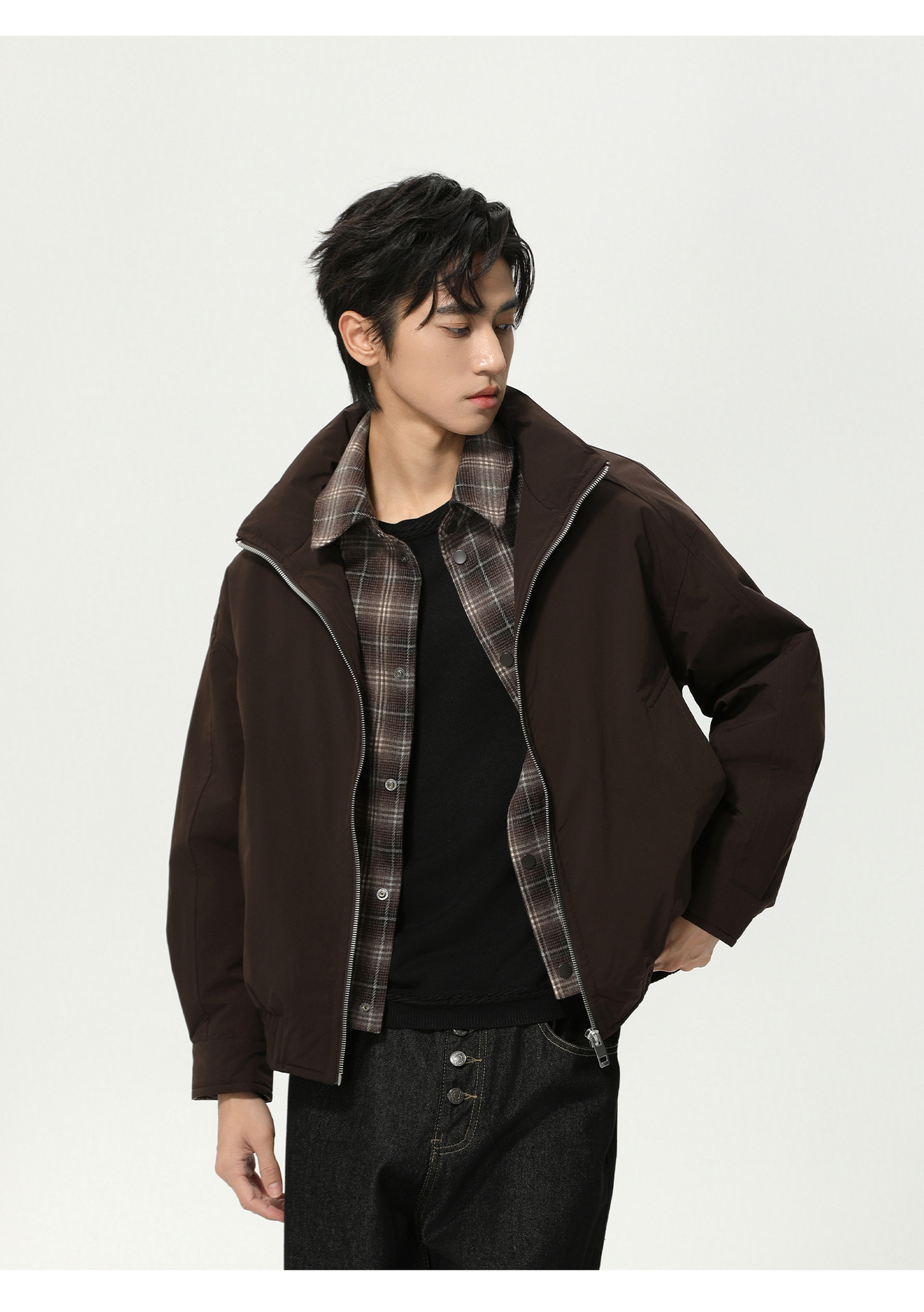 MTLCLOTHES Hombres| Nicho falso de dos piezas camisa a cuadrícula 90% blanco chaqueta con cremallera casual