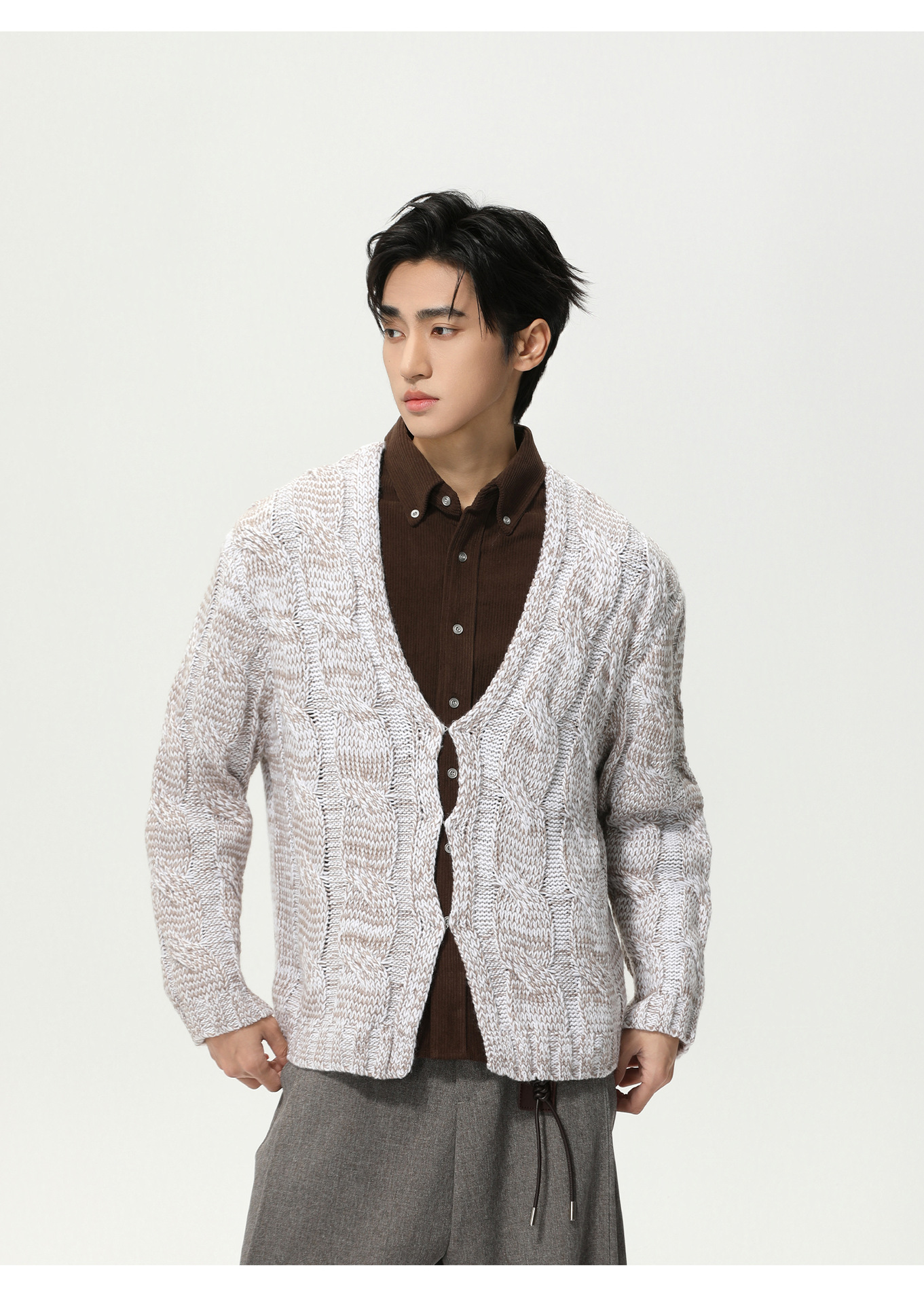 MTLCLOTHES Hombres| Francés Niu Hua relajado con botones en forma de cuello V Cardigan de punto Suéter abrigo de moda casual
