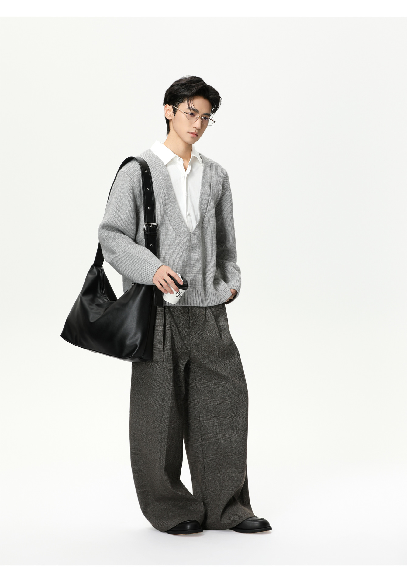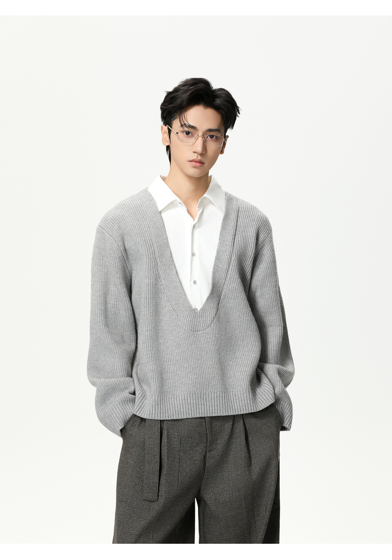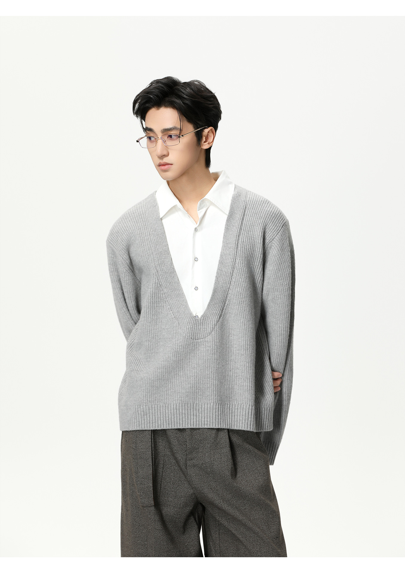 MTLCLOTHES Hombres| Alta sensibilidad viejo qianfeng falso dos piezas de camisa de costura de cuello en V profundo nicho camisa de punto de tendencia