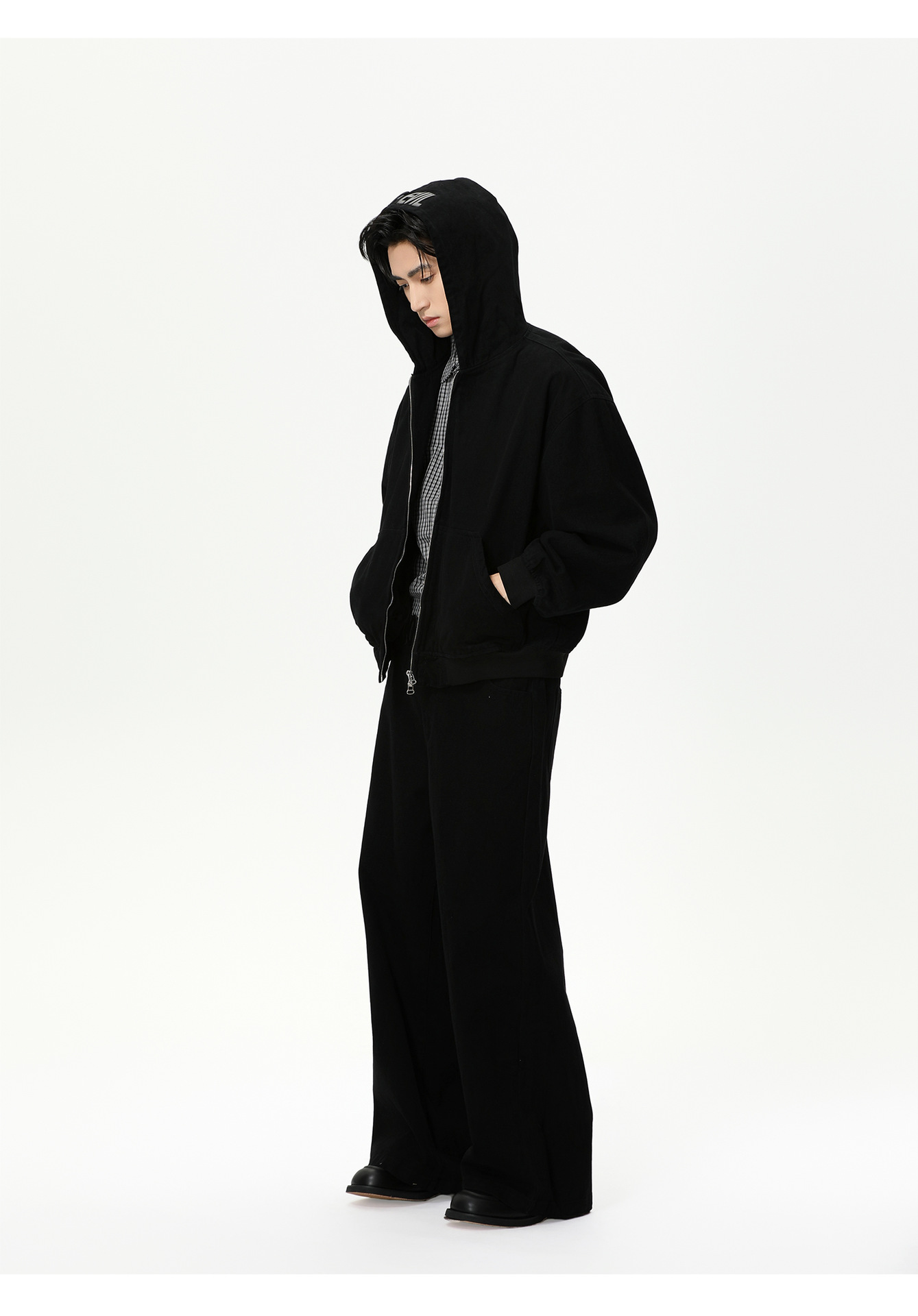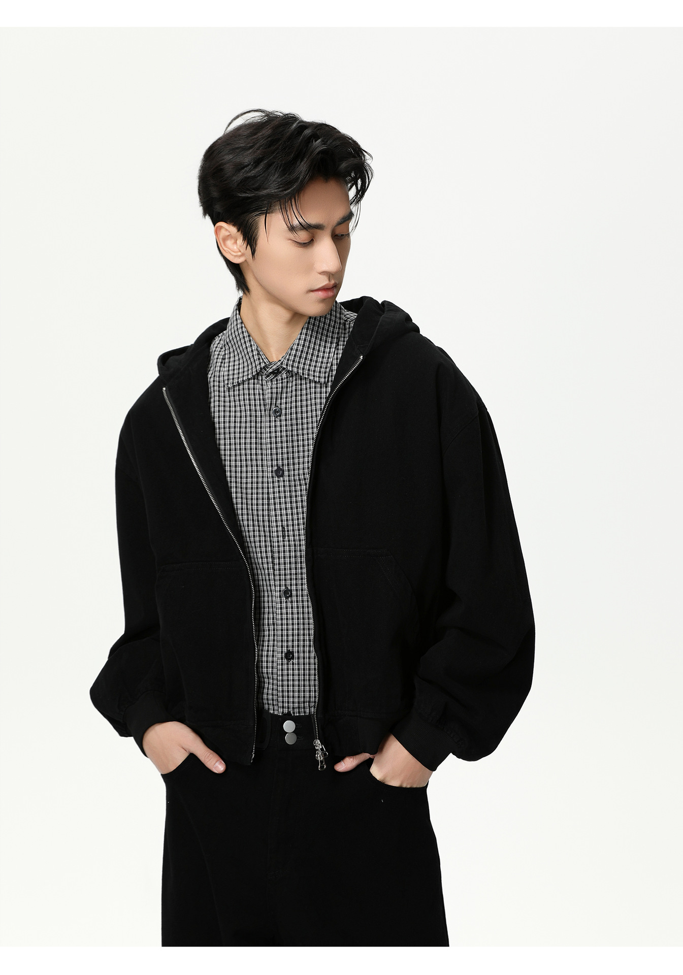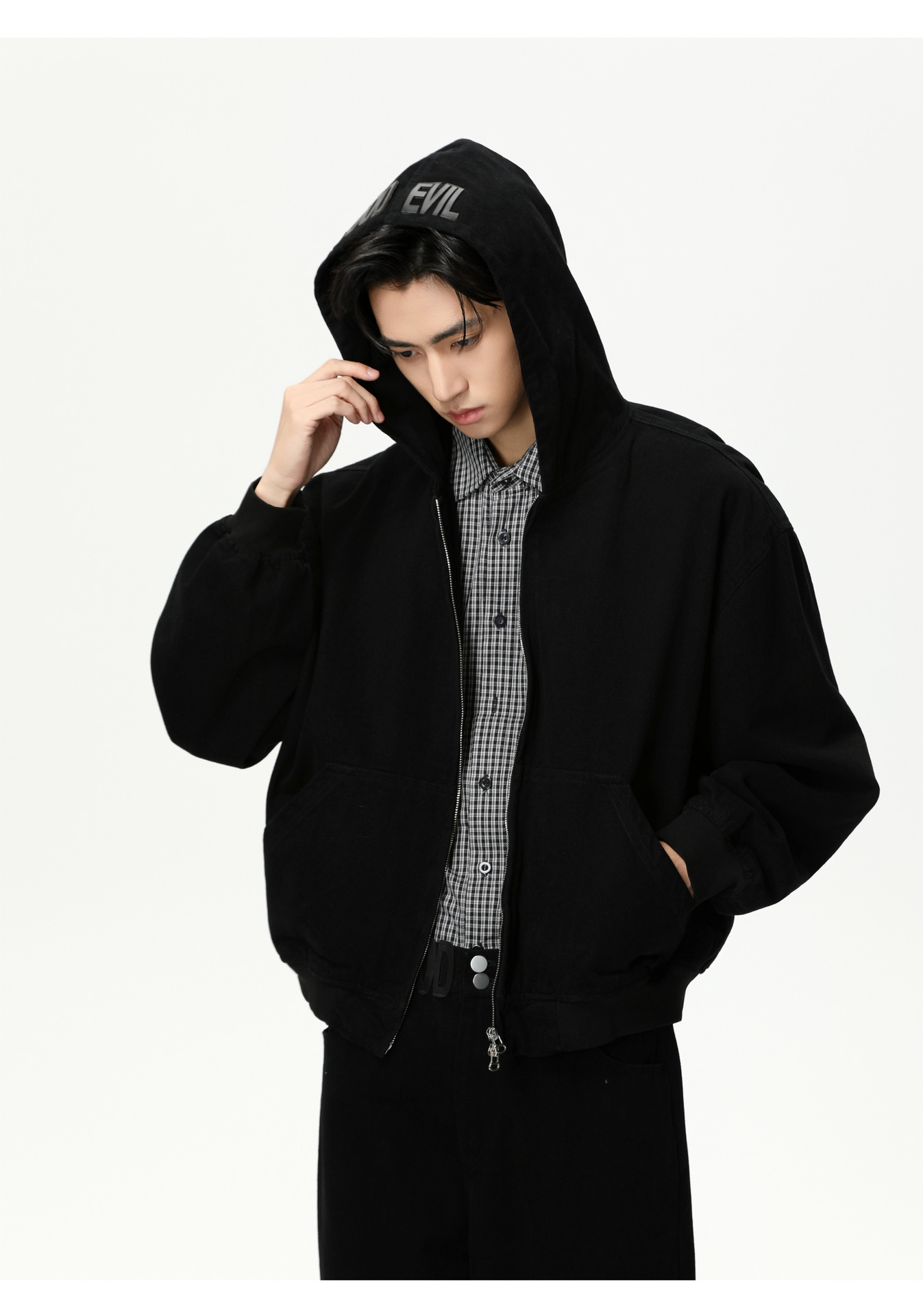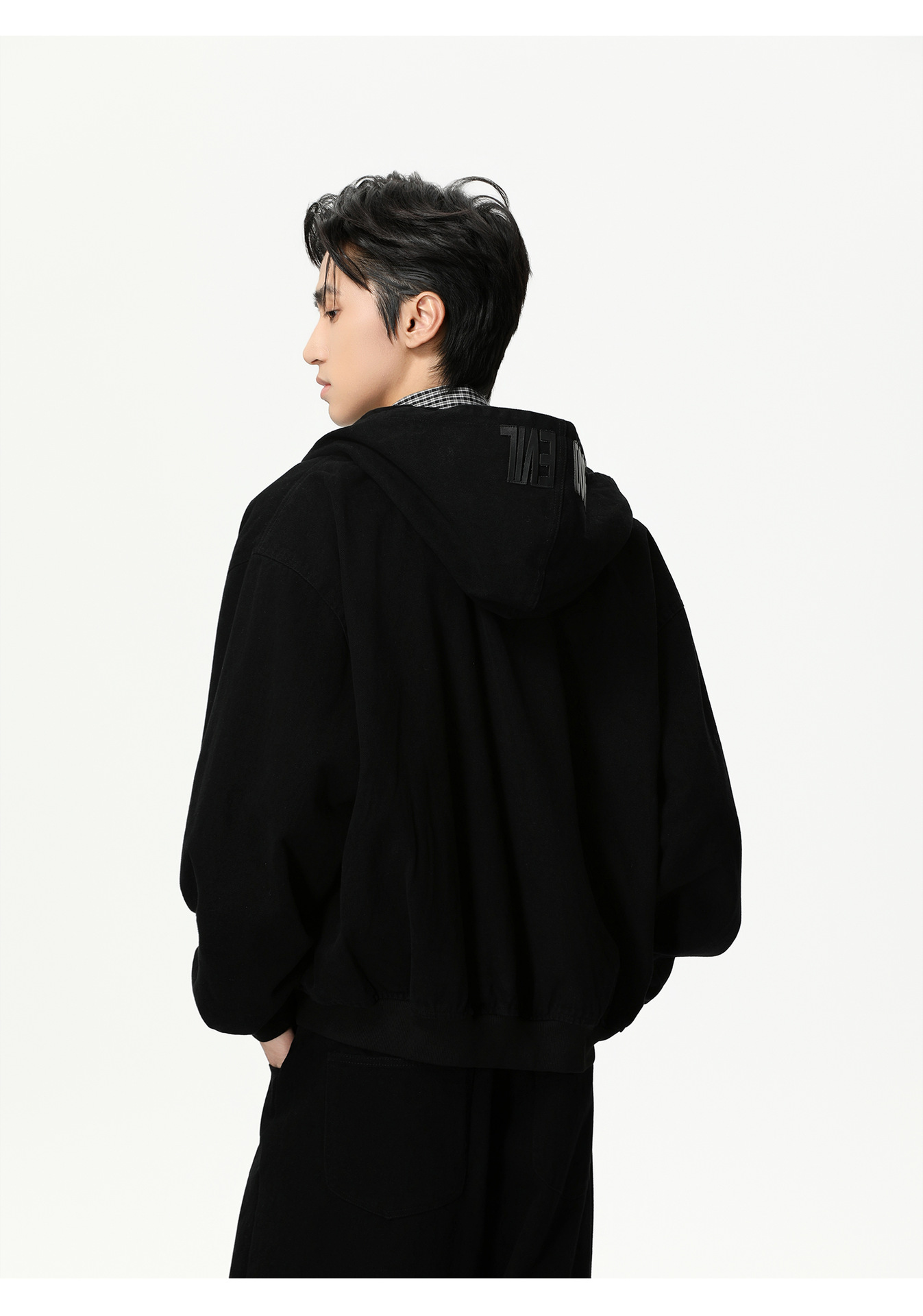 MTLCLOTHES Hombres| Personalidad logotipo encapuchado chaqueta corta color sólido pantalones de viento simple moda
