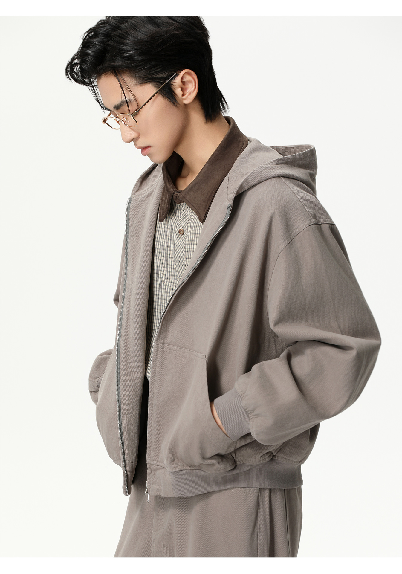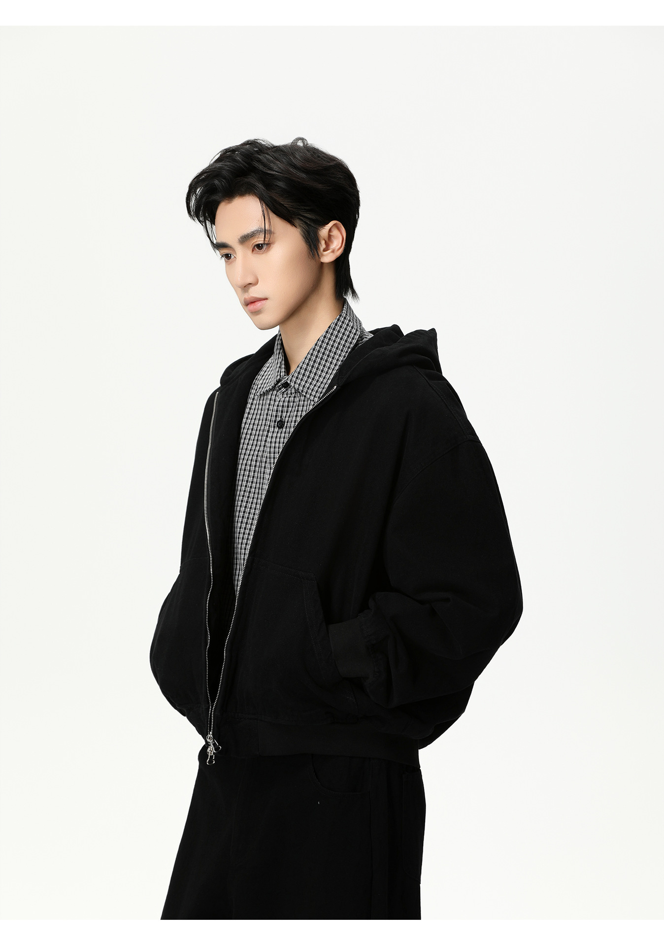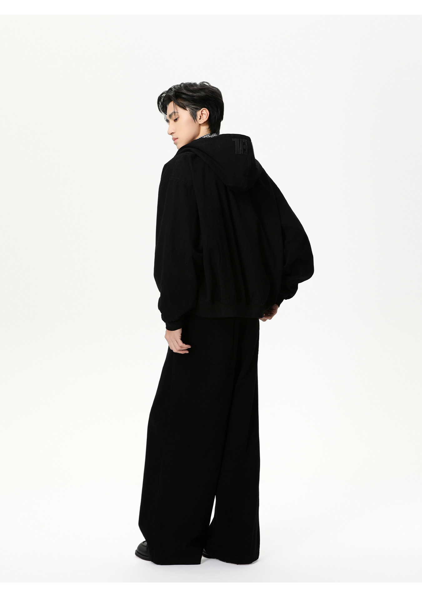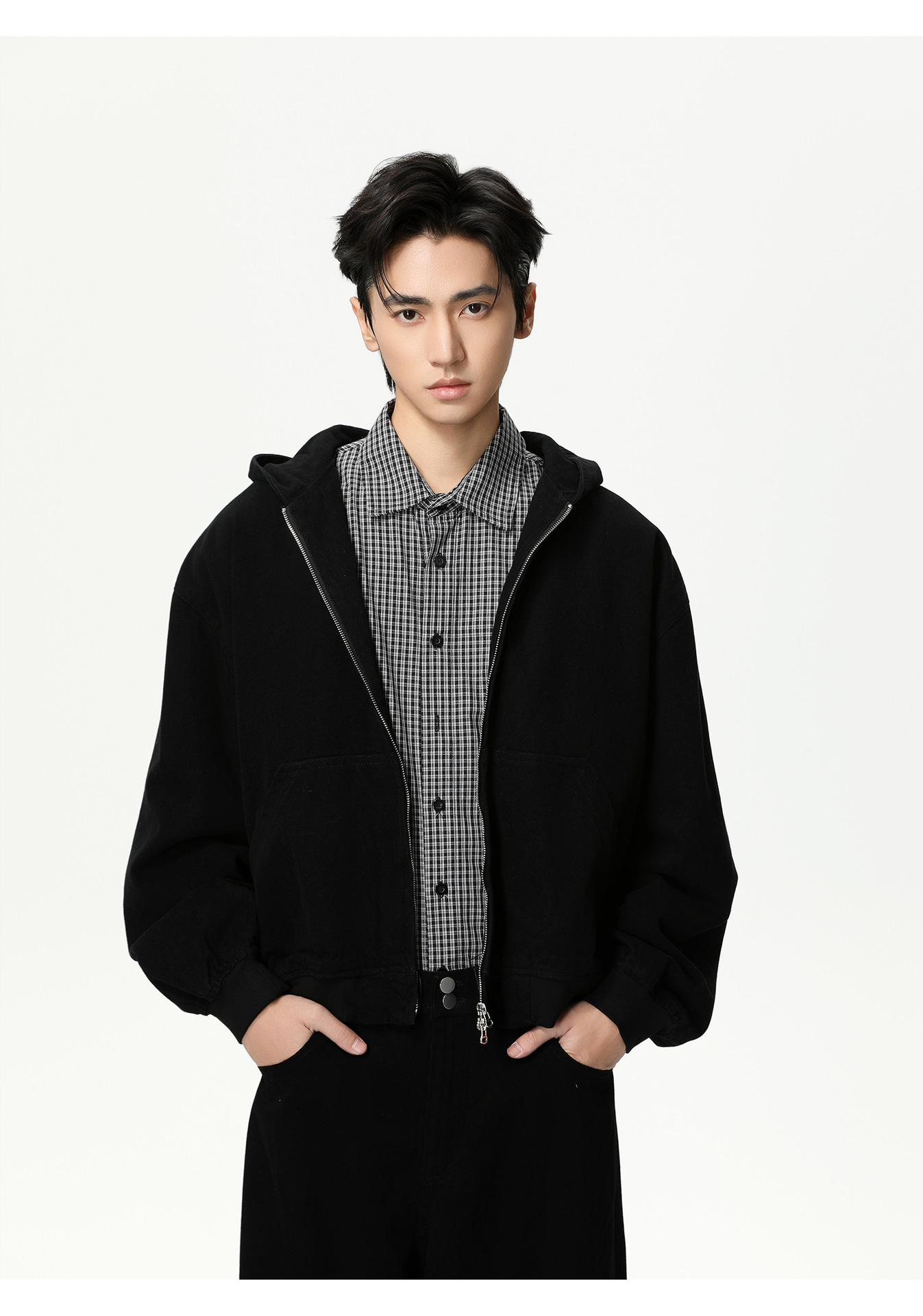 MTLCLOTHES Hombres| Personalidad logotipo encapuchado chaqueta corta color sólido pantalones de viento simple moda