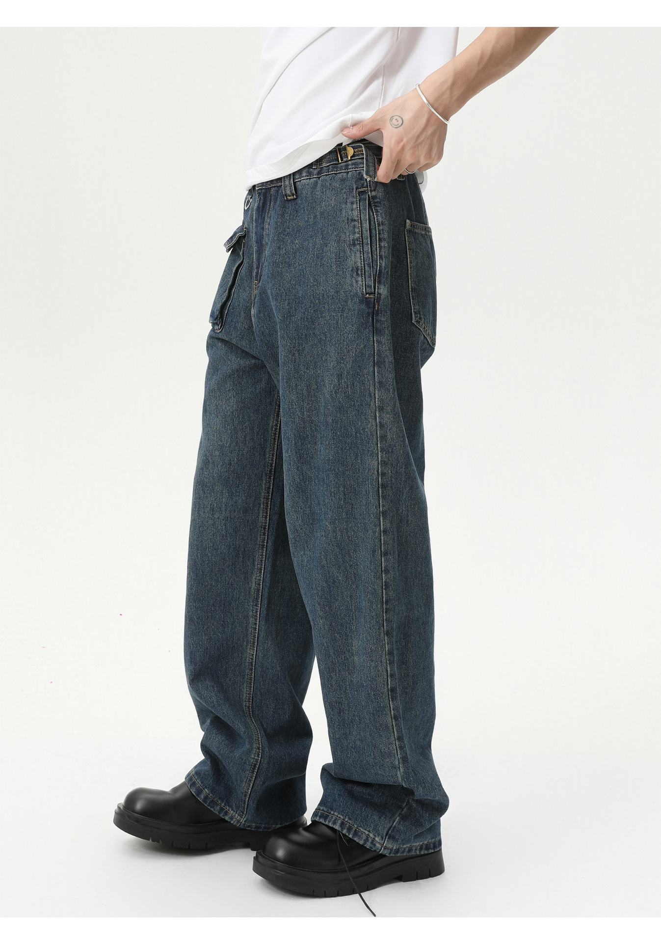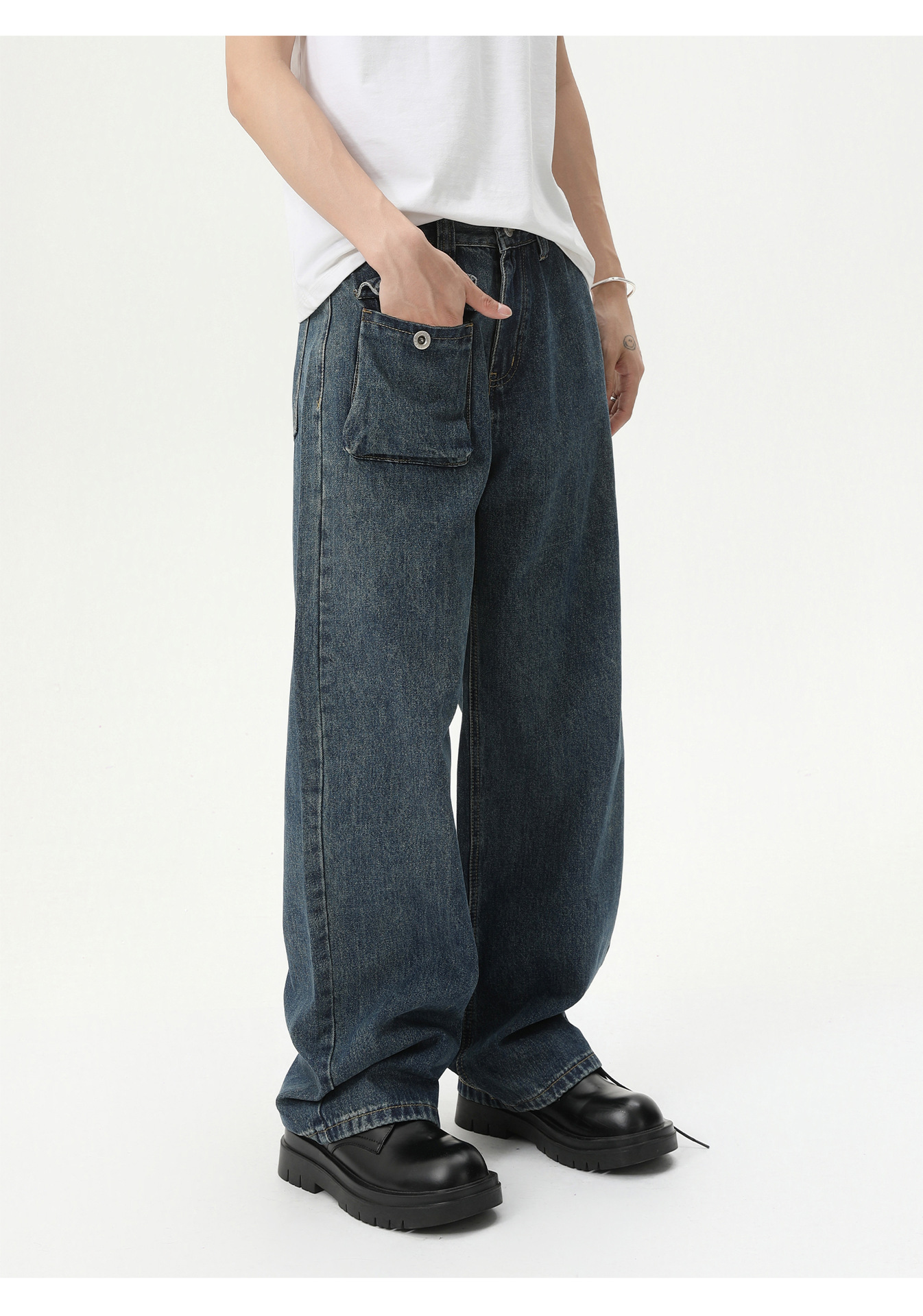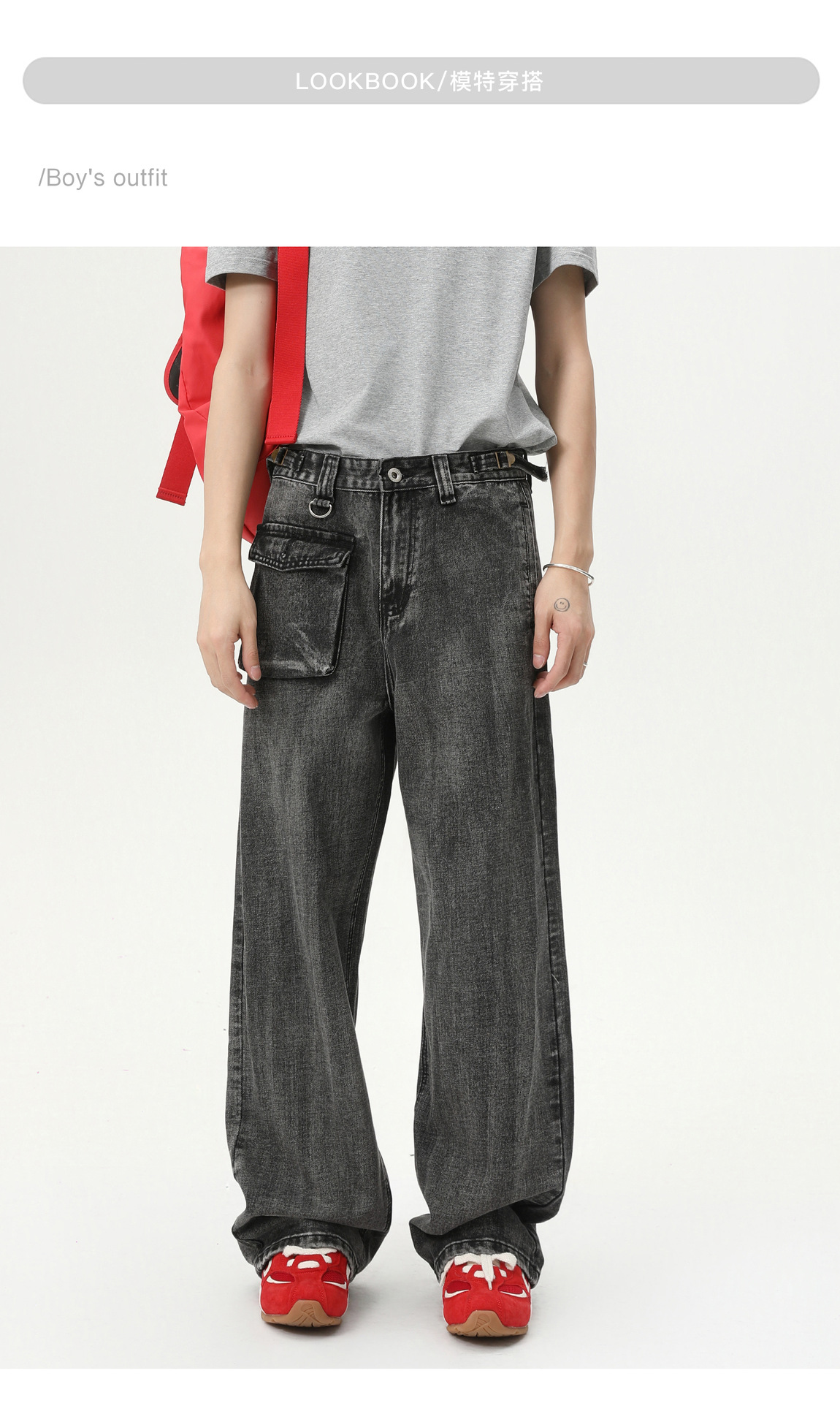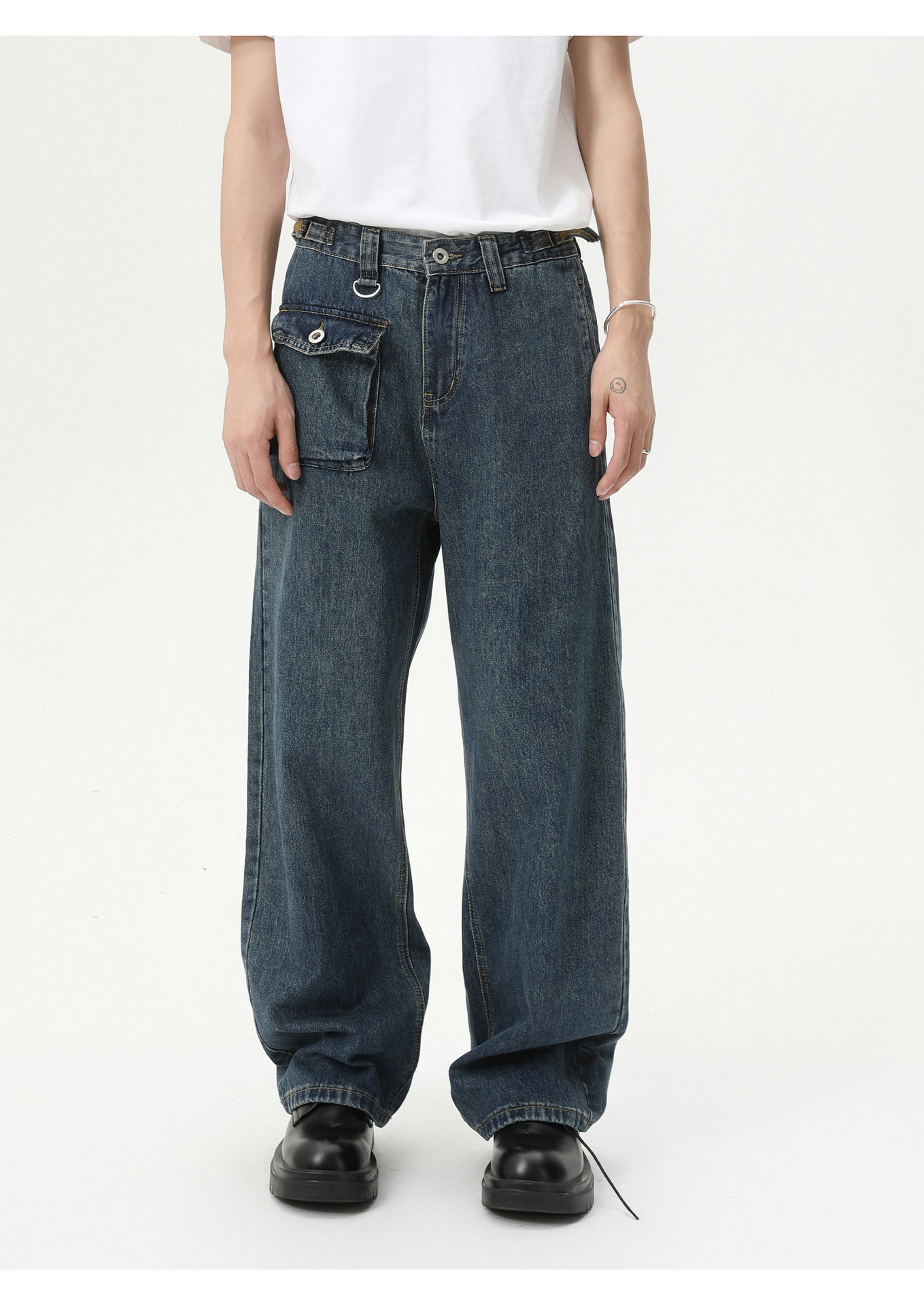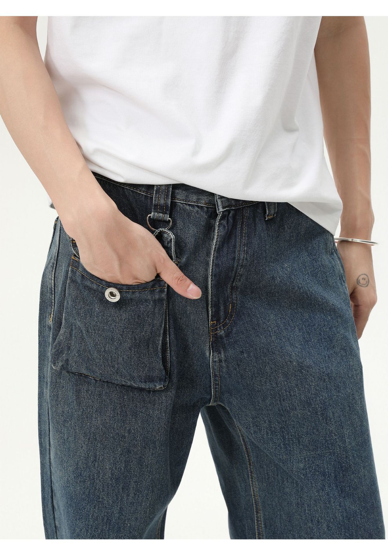 MTLCLOTHES Hombres| Nicho personalidad de diseño de bolso pequeño estilo rectas versátiles jeans lavados con agua