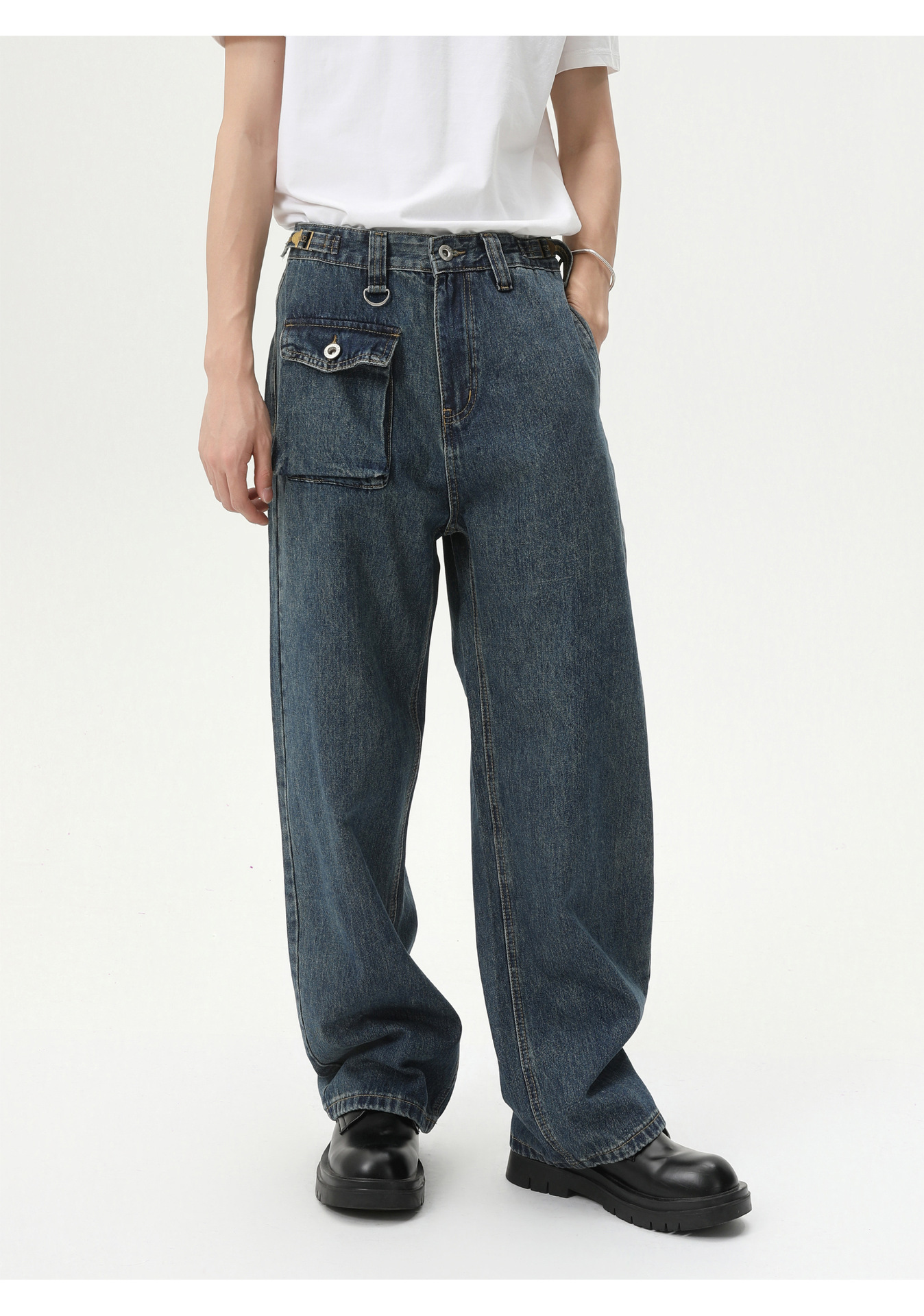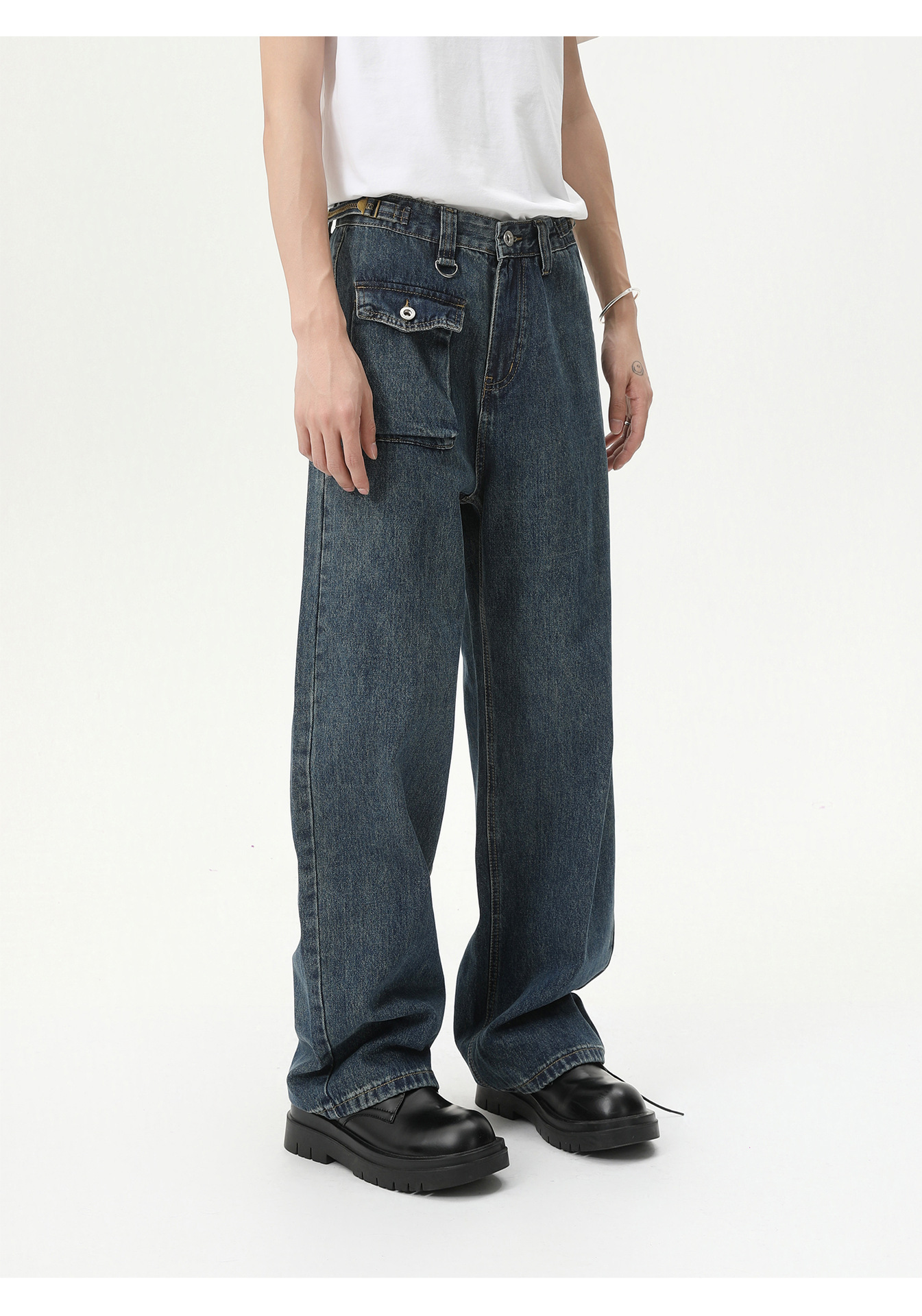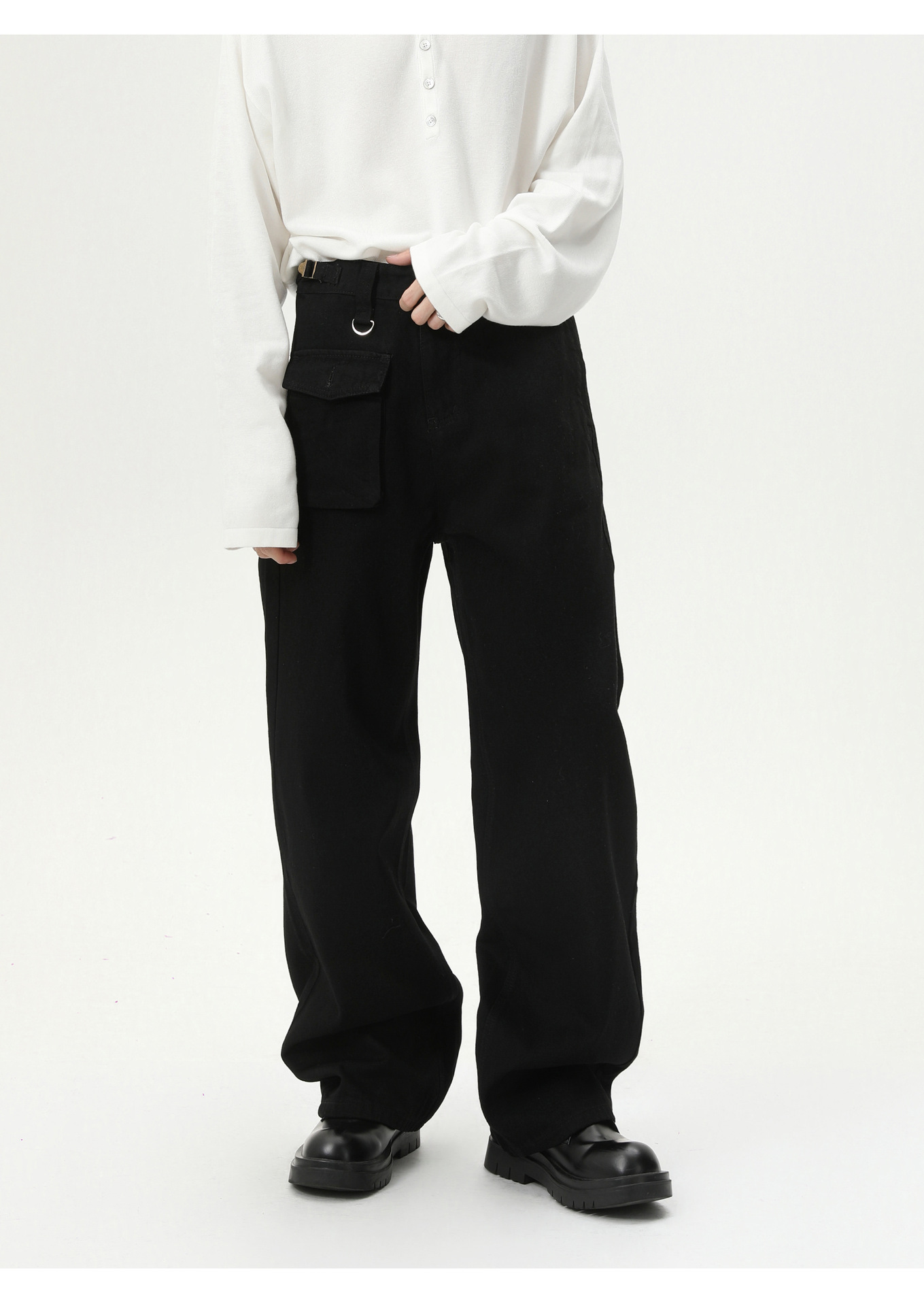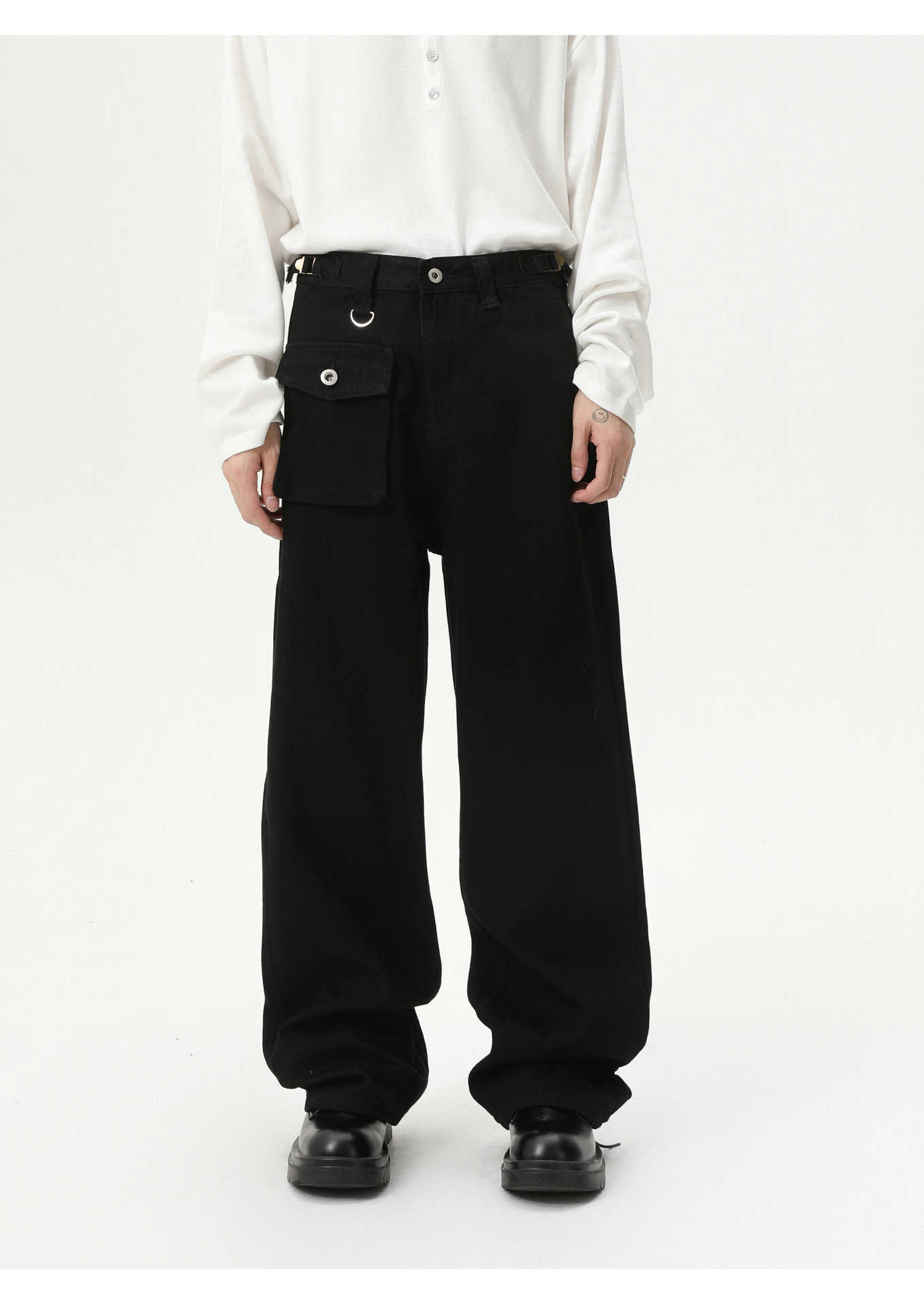 MTLCLOTHES Hombres| Nicho personalidad de diseño de bolso pequeño estilo rectas versátiles jeans lavados con agua