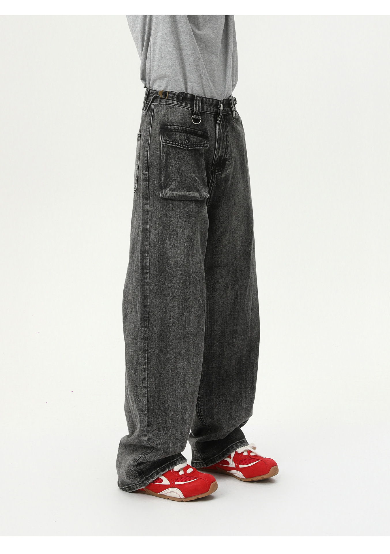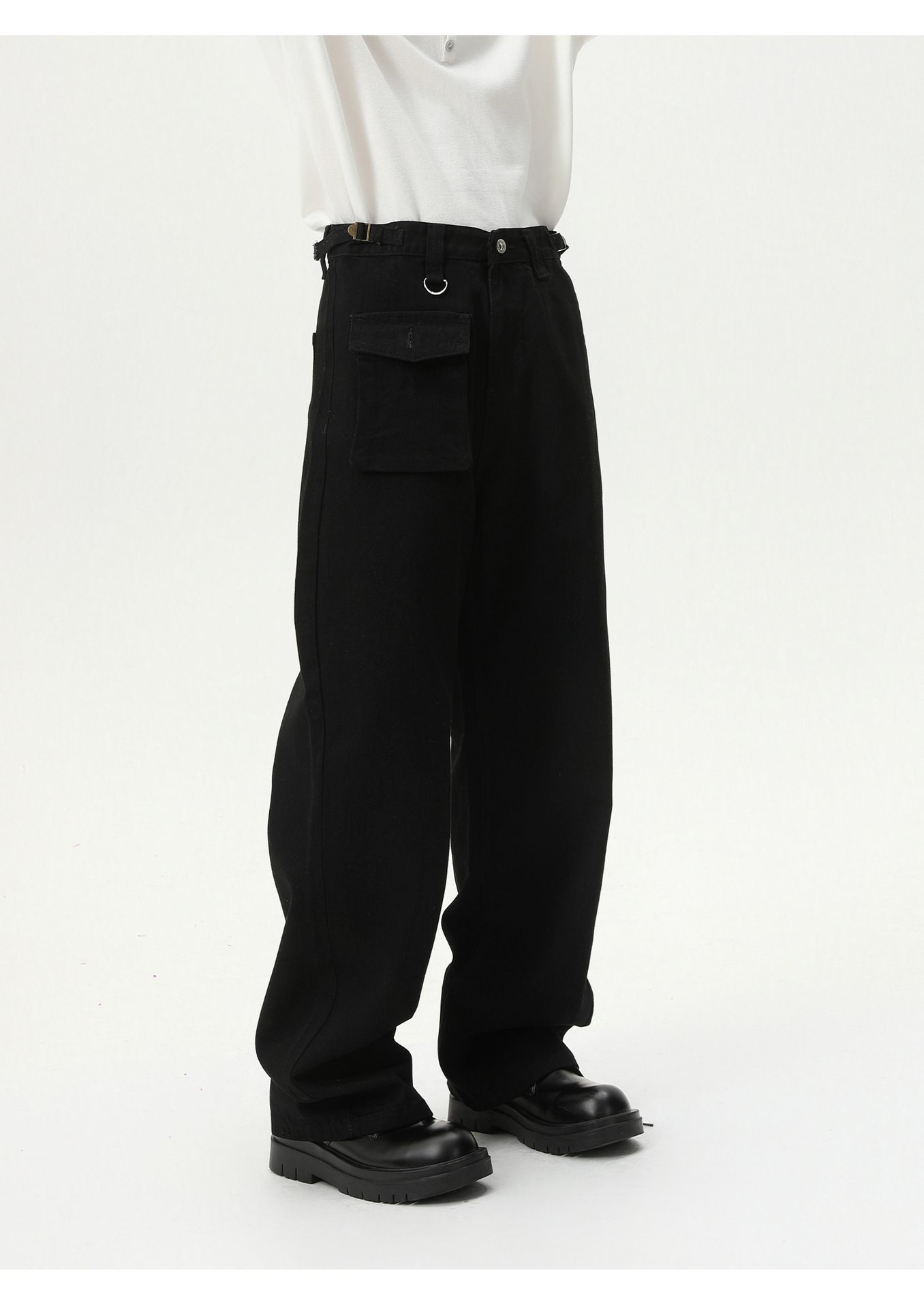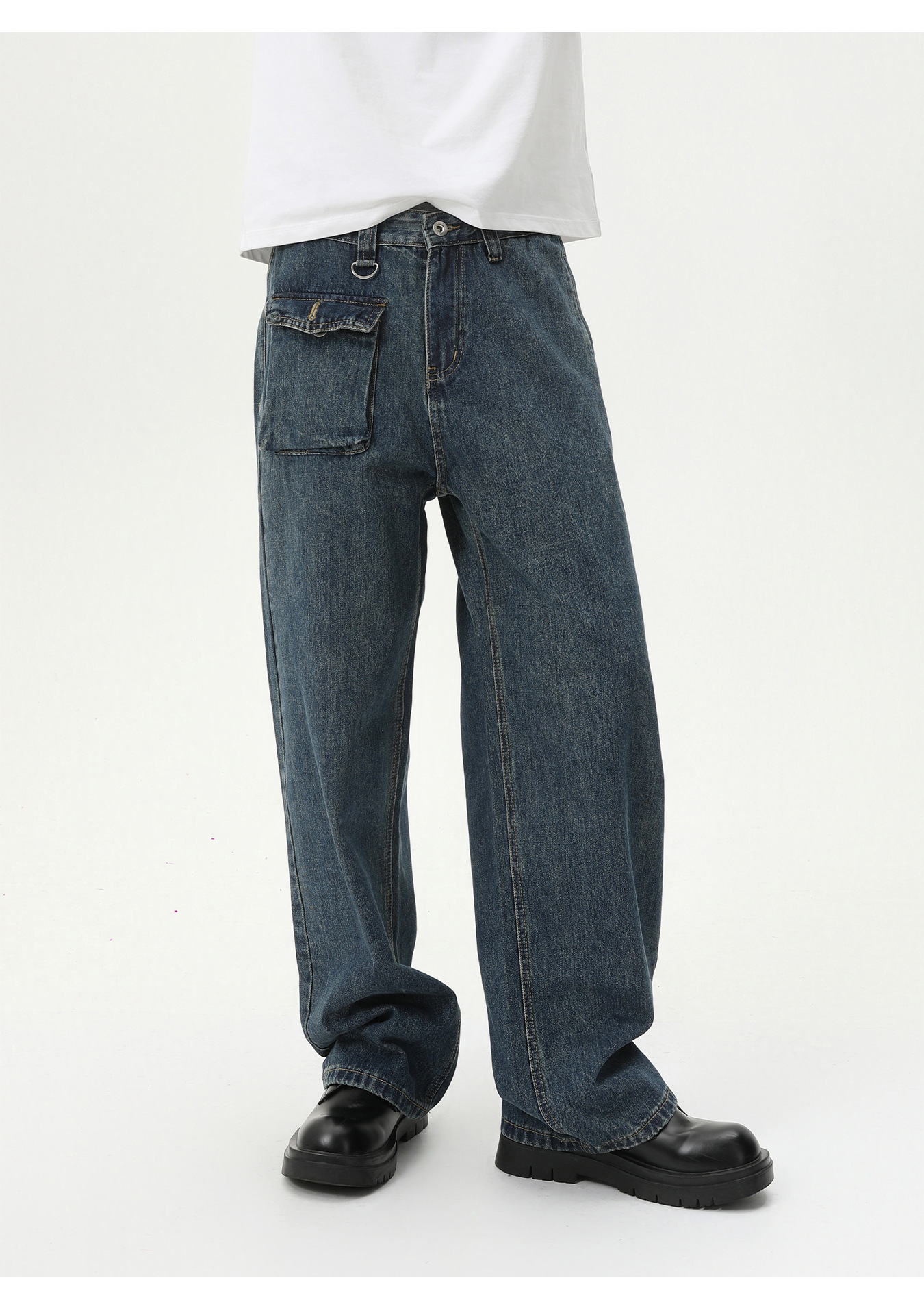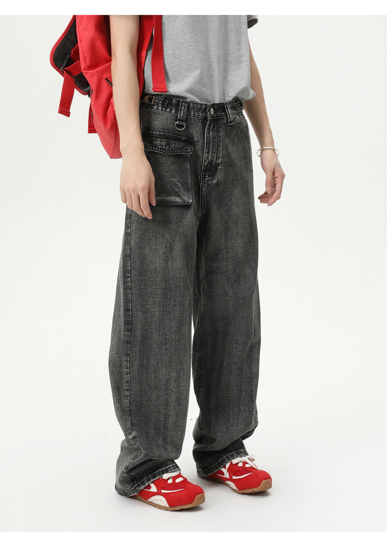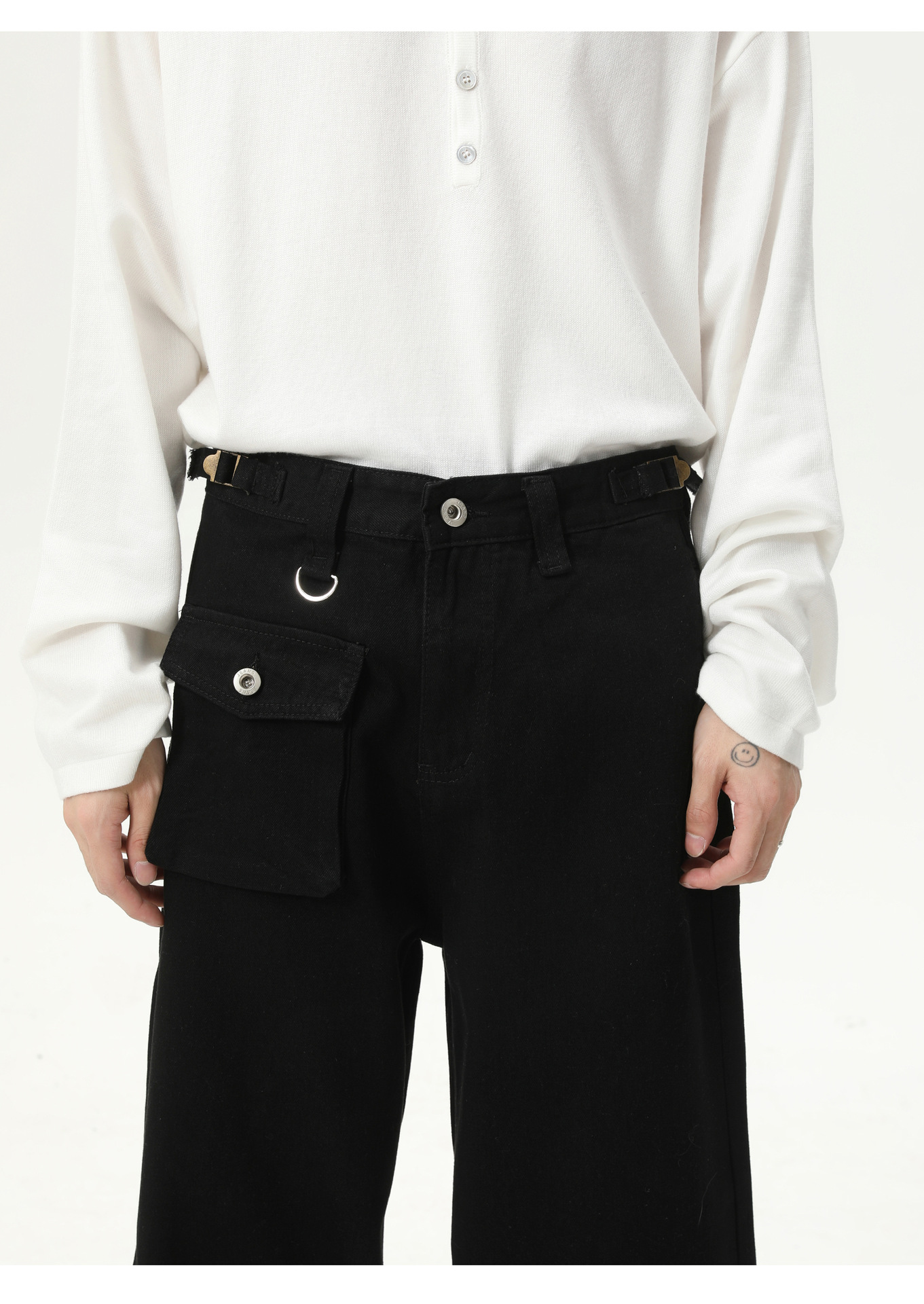 MTLCLOTHES Hombres| Nicho personalidad de diseño de bolso pequeño estilo rectas versátiles jeans lavados con agua