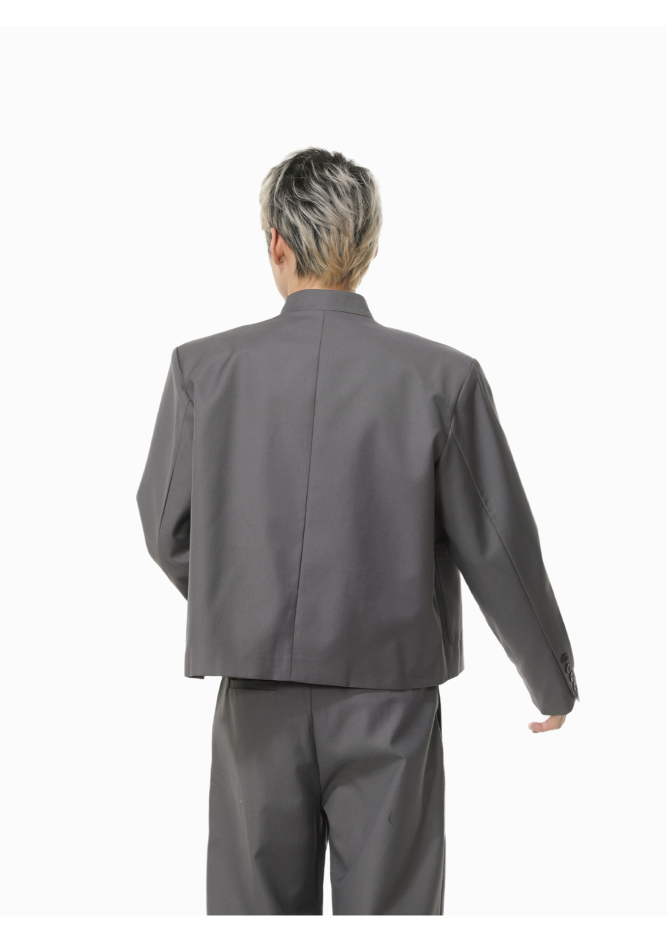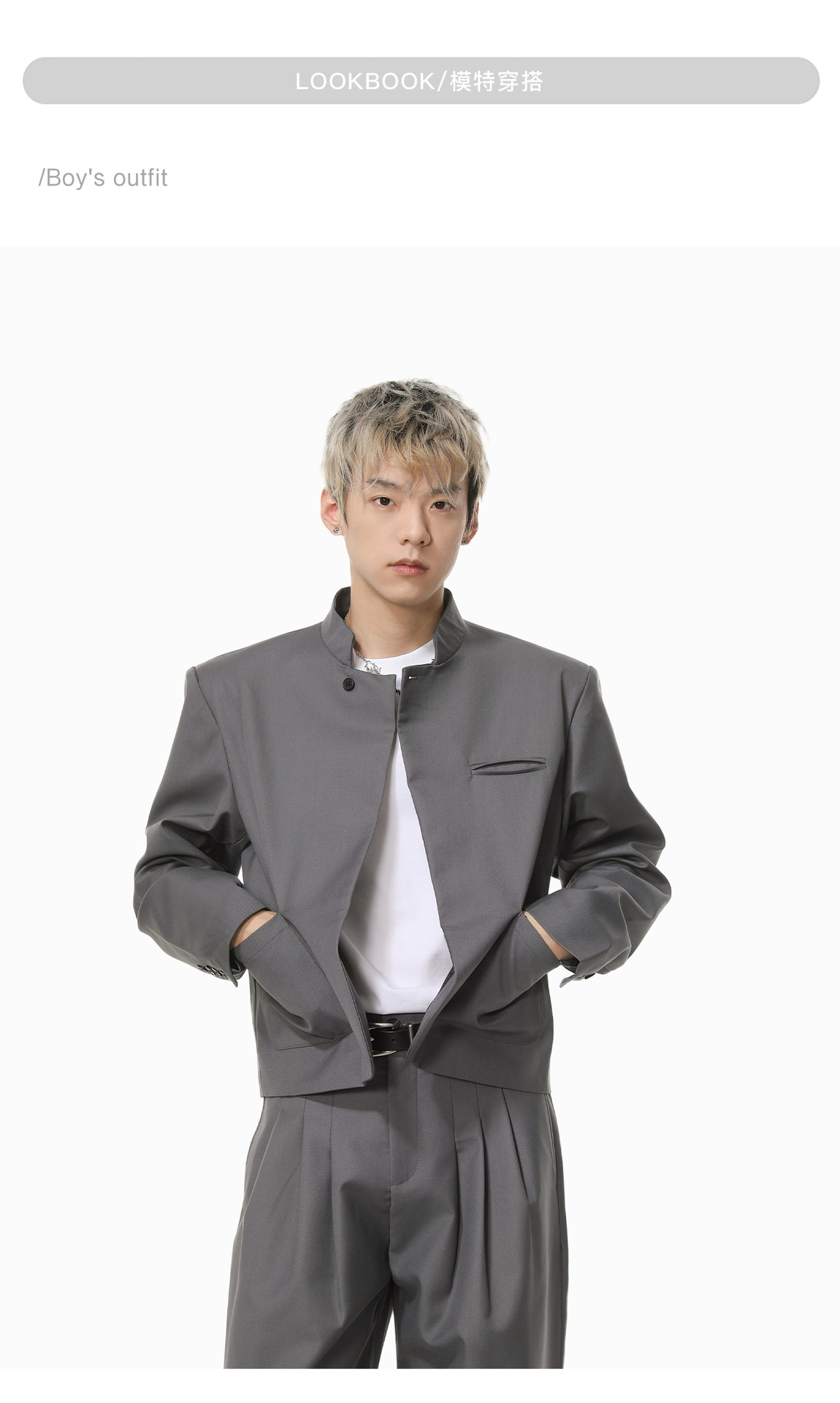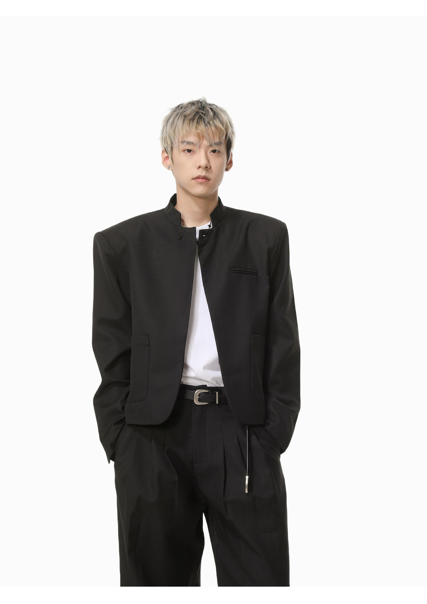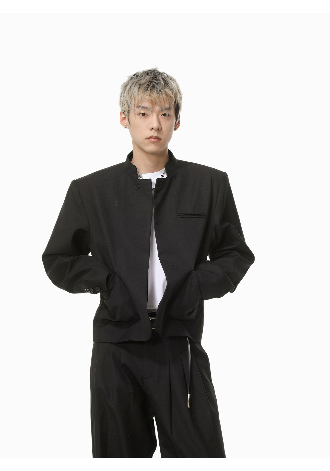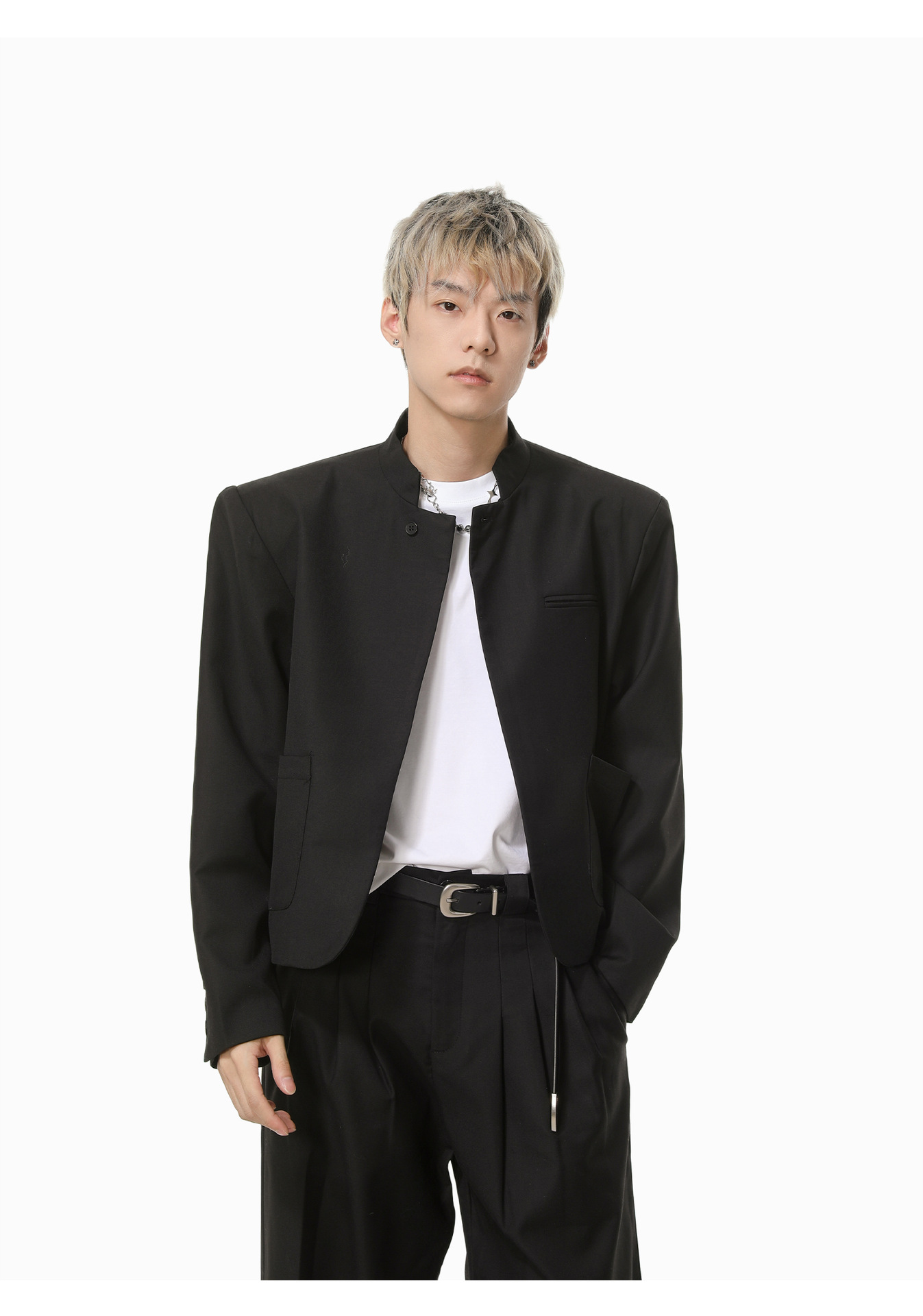 MTLCLOTHES Hombres| Chino corto de hombro con chaqueta de botón único, pantalones largos con piernas anchas y colgantes, conjunto de textura casual