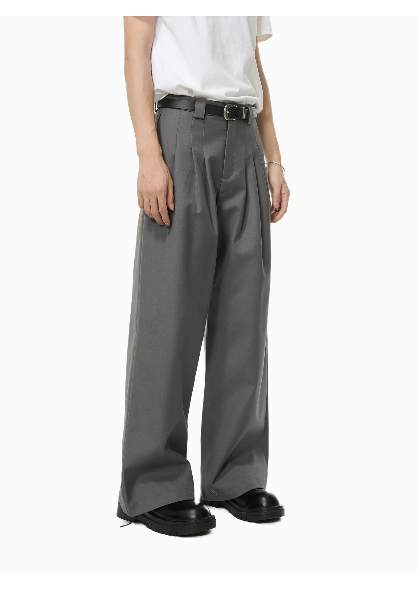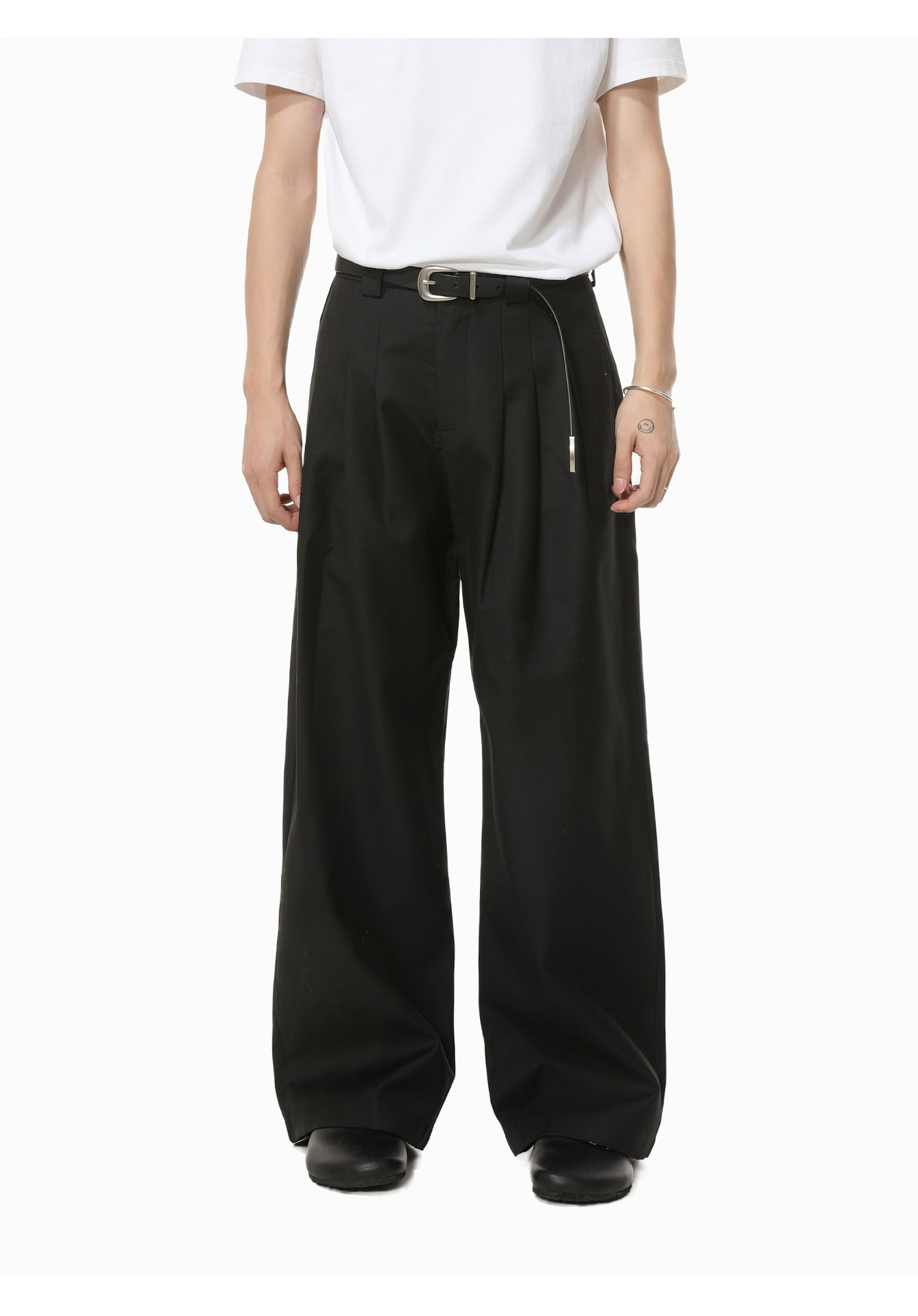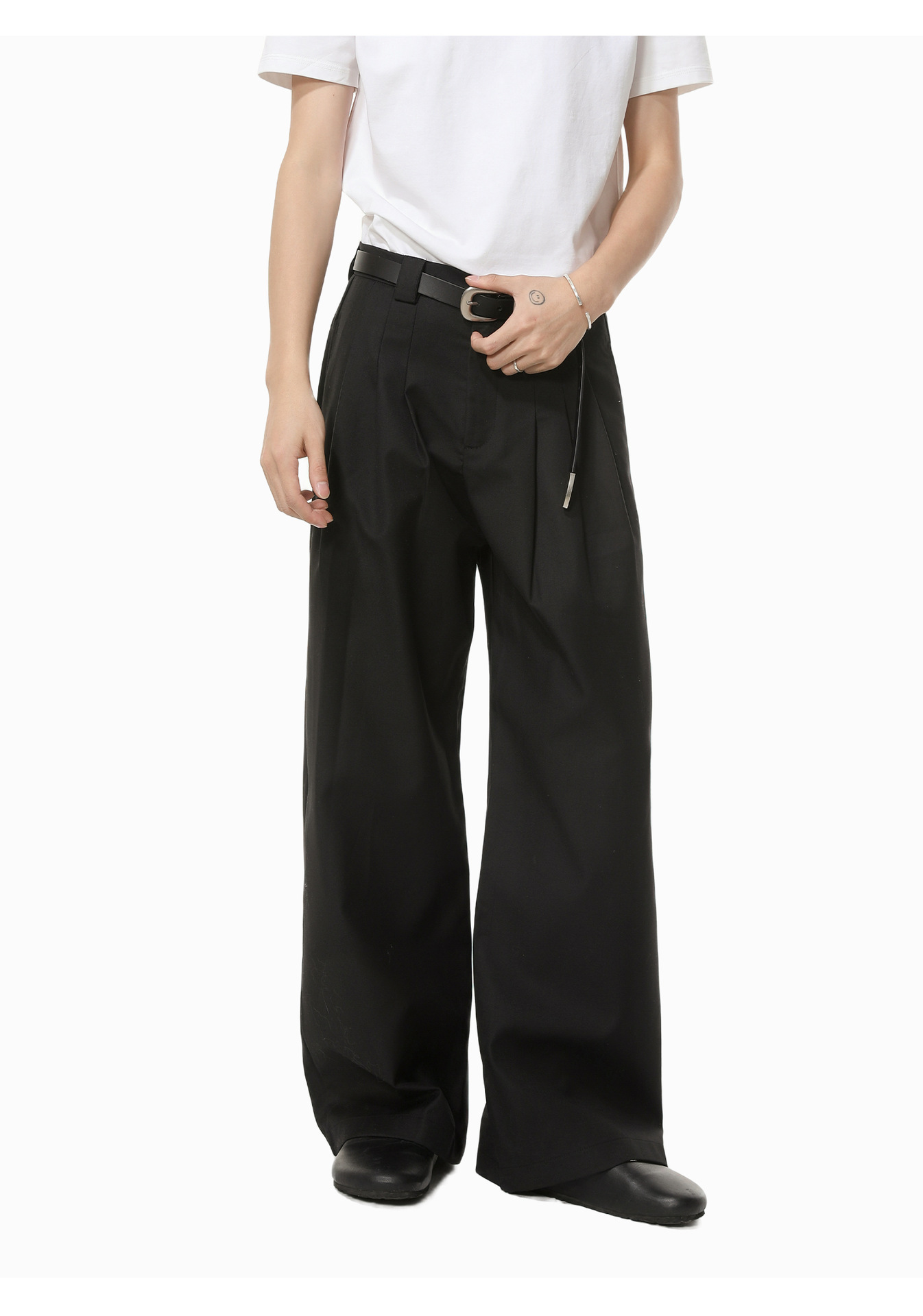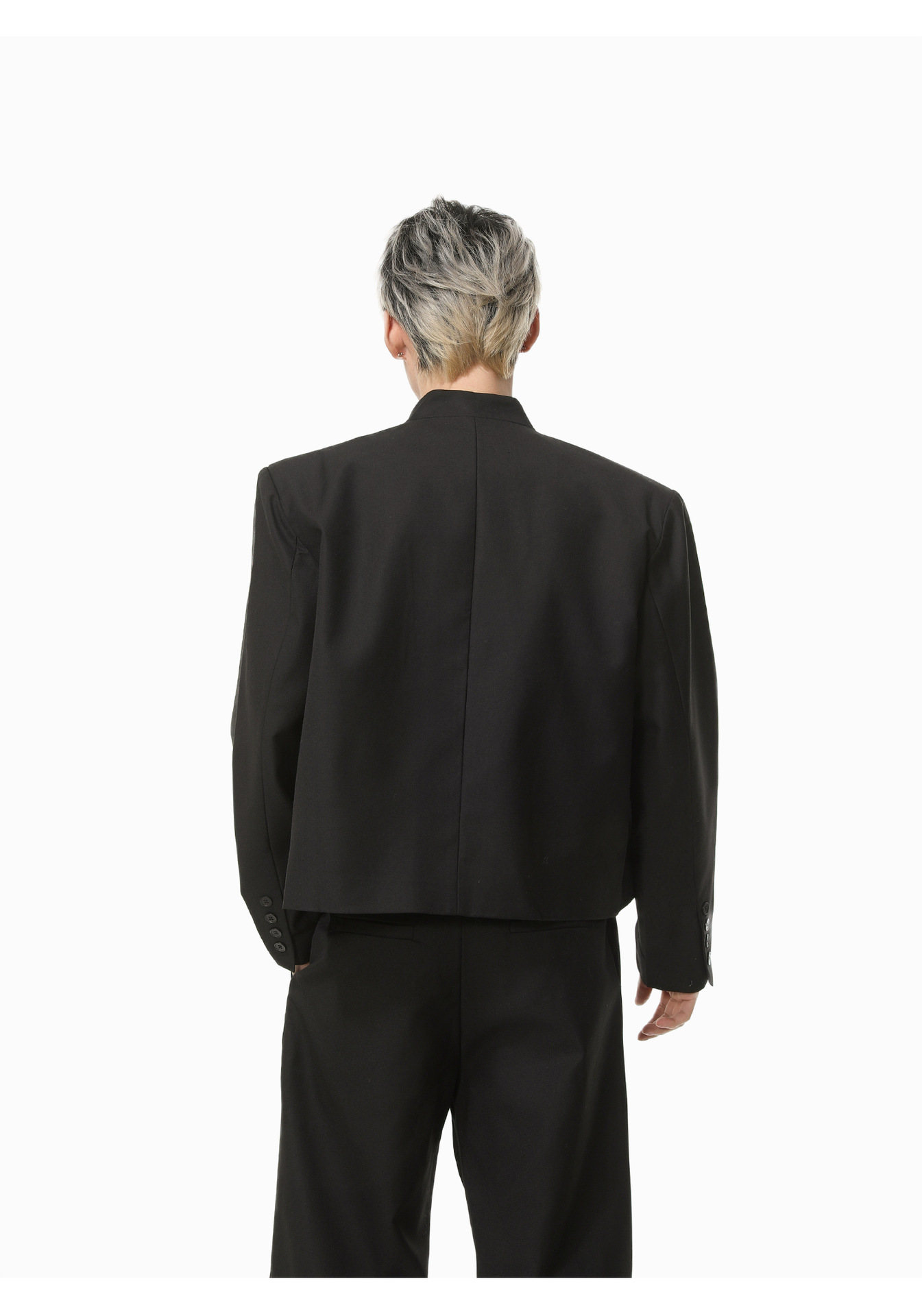 MTLCLOTHES Hombres| Chino corto de hombro con chaqueta de botón único, pantalones largos con piernas anchas y colgantes, conjunto de textura casual