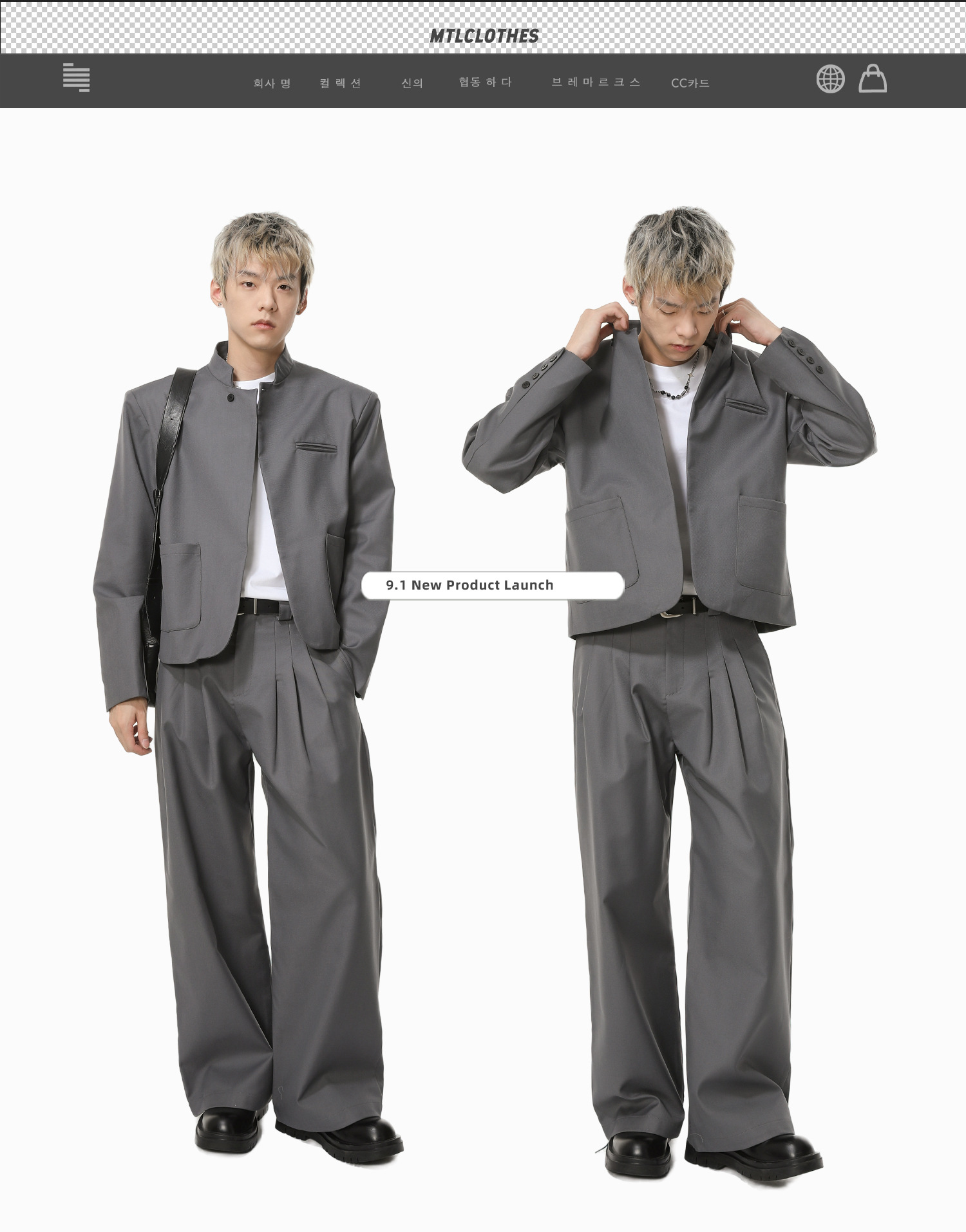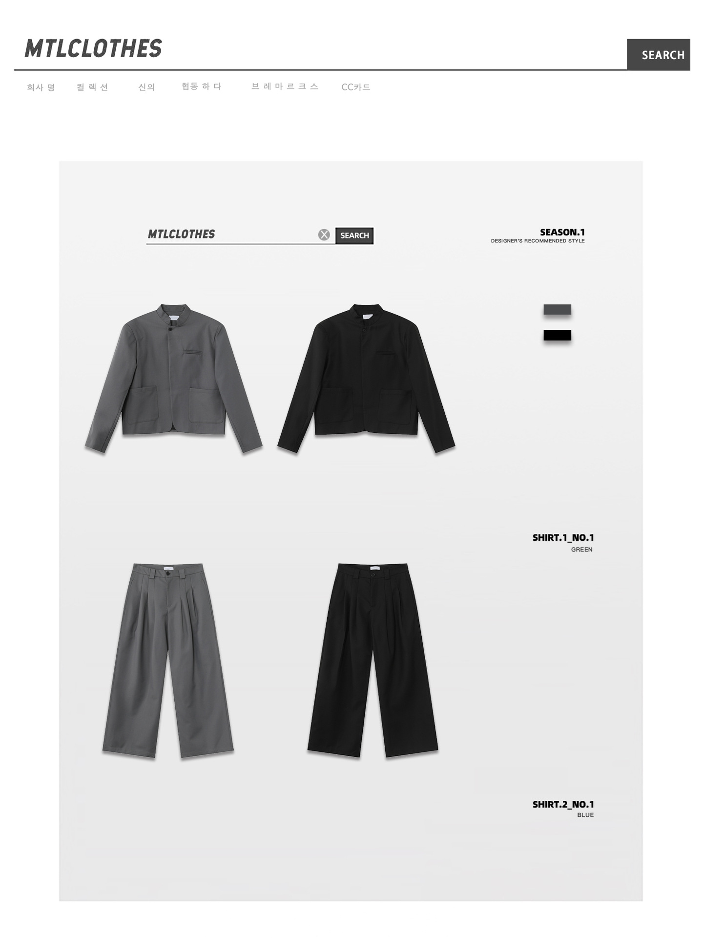| Color | Blusa negra, blusa gris, pantalón negro, pantalón gris |