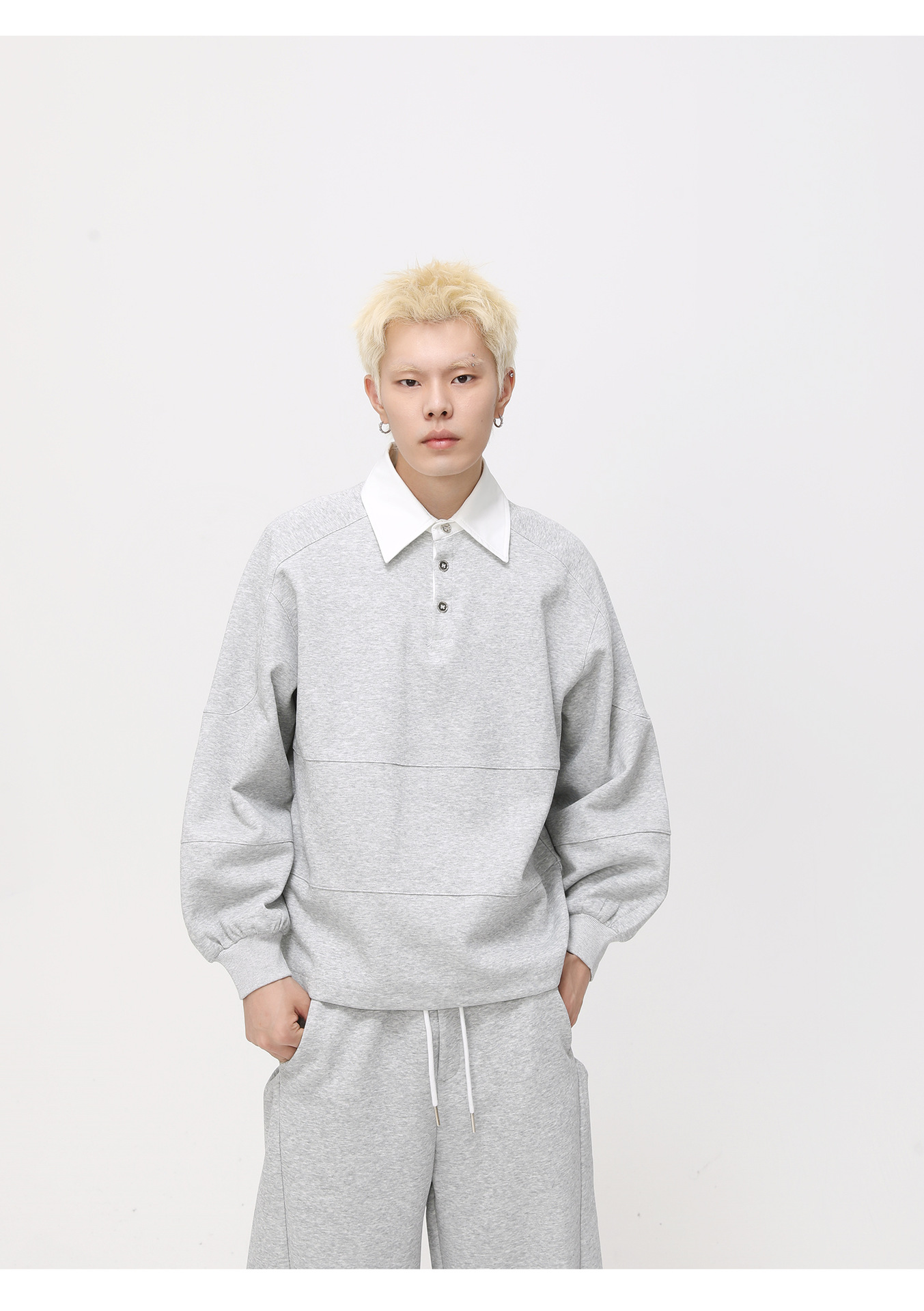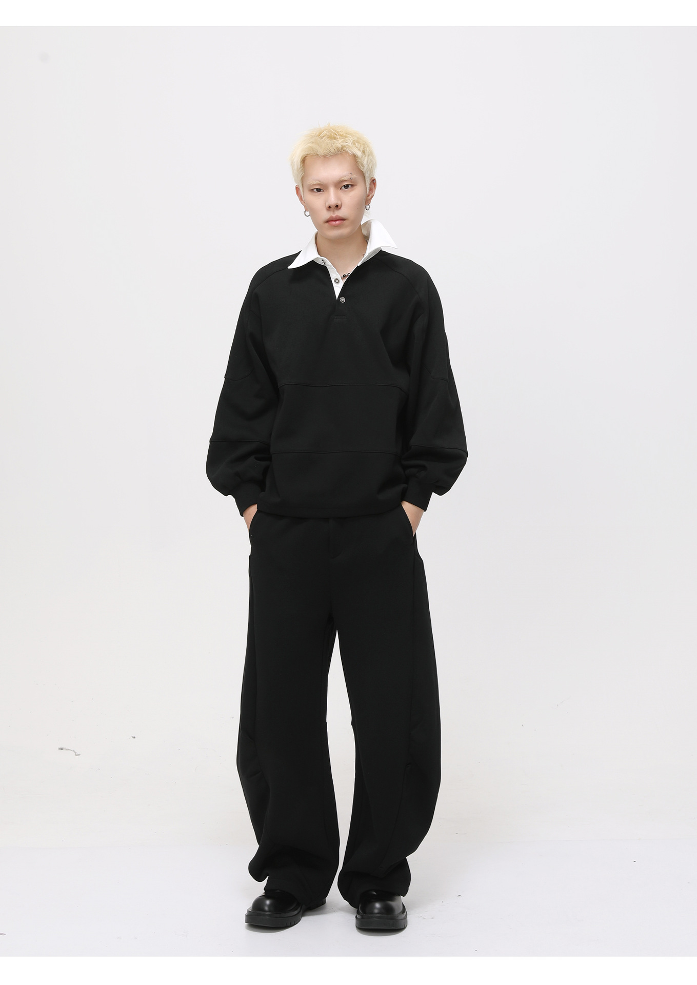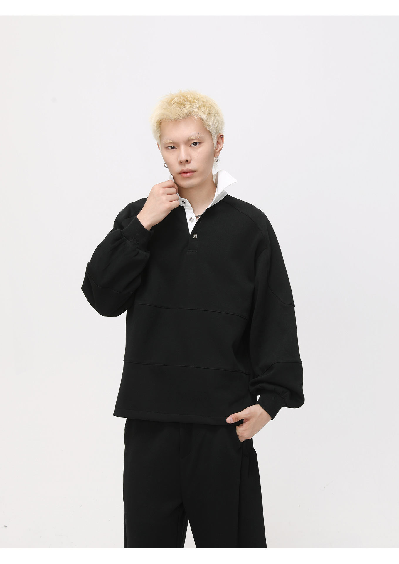 MTLCLOTHES Hombres| Polarizado coreano con solapa de contraste Polo simple y suelta machete con piernas anchas