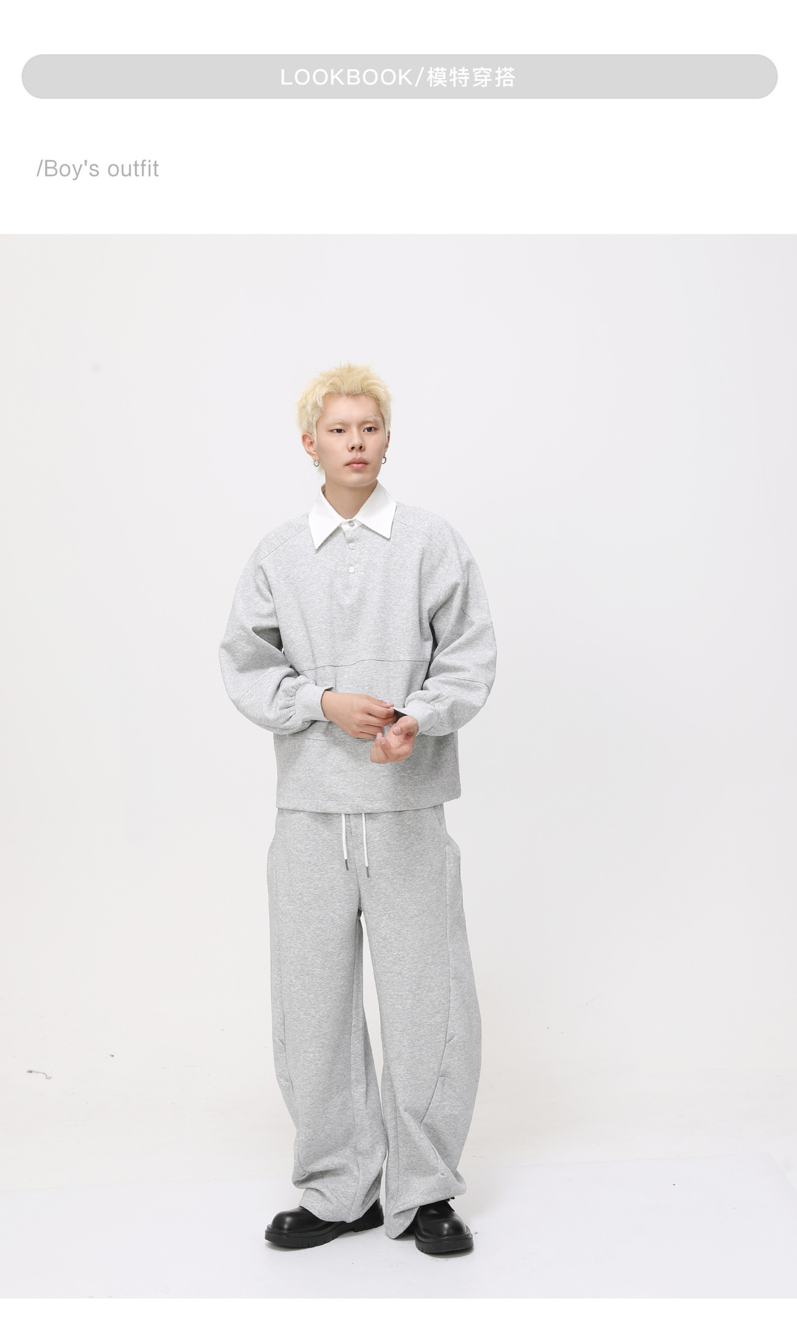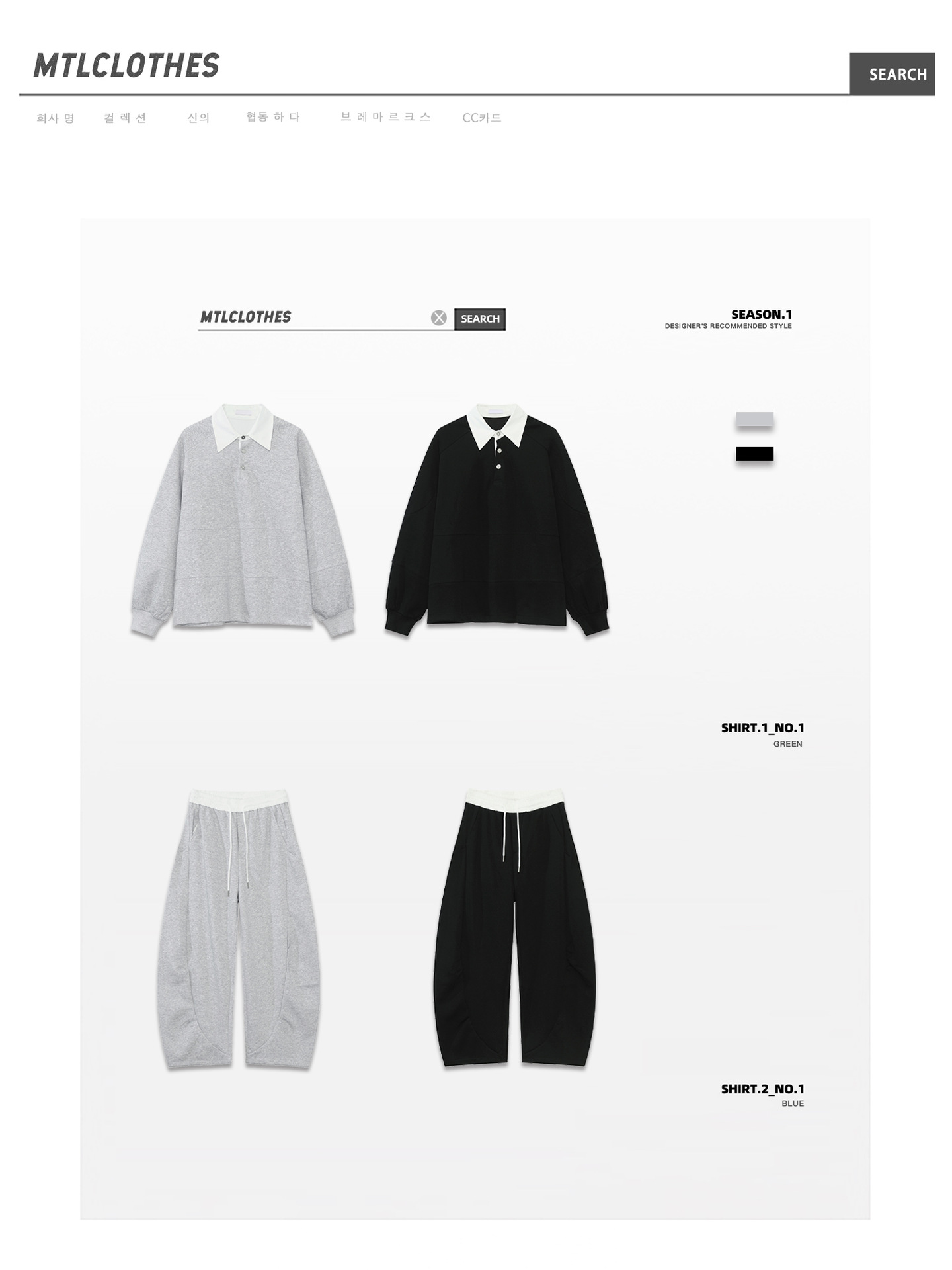 | Color | Blusa gris, blusa negra, pantalón gris, pantalón negro |