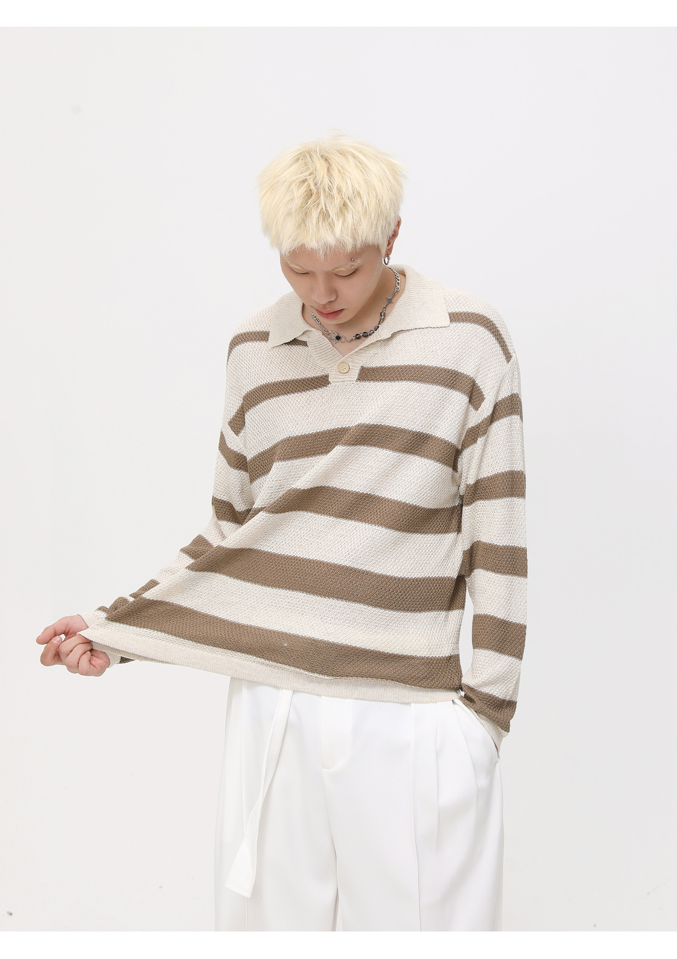 MTLCLOTHES Hombres| Camiseta coreana con solapa Lissel a rayas de color de punto casual con solapa suelta Polo