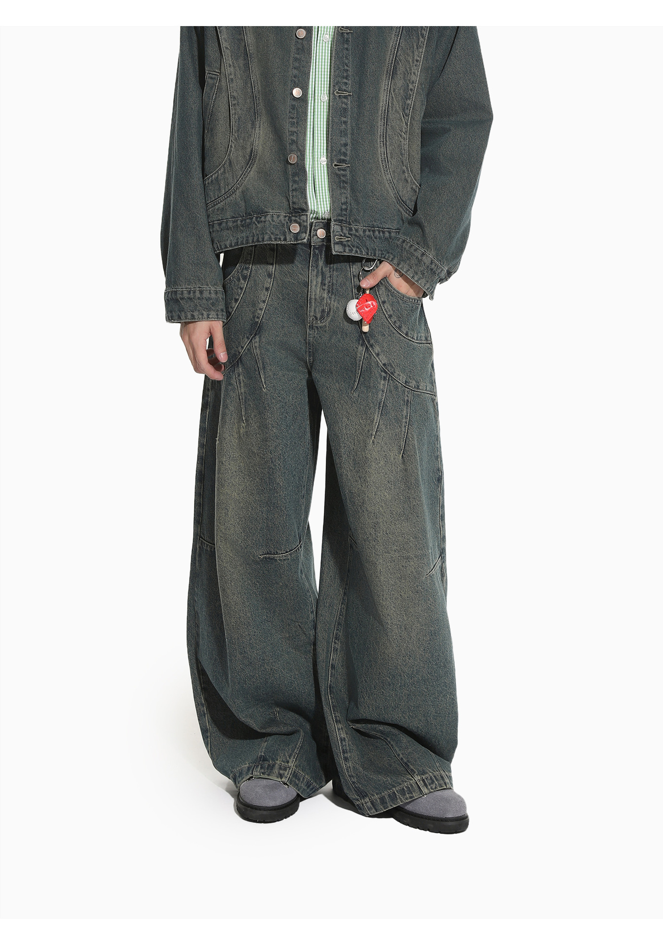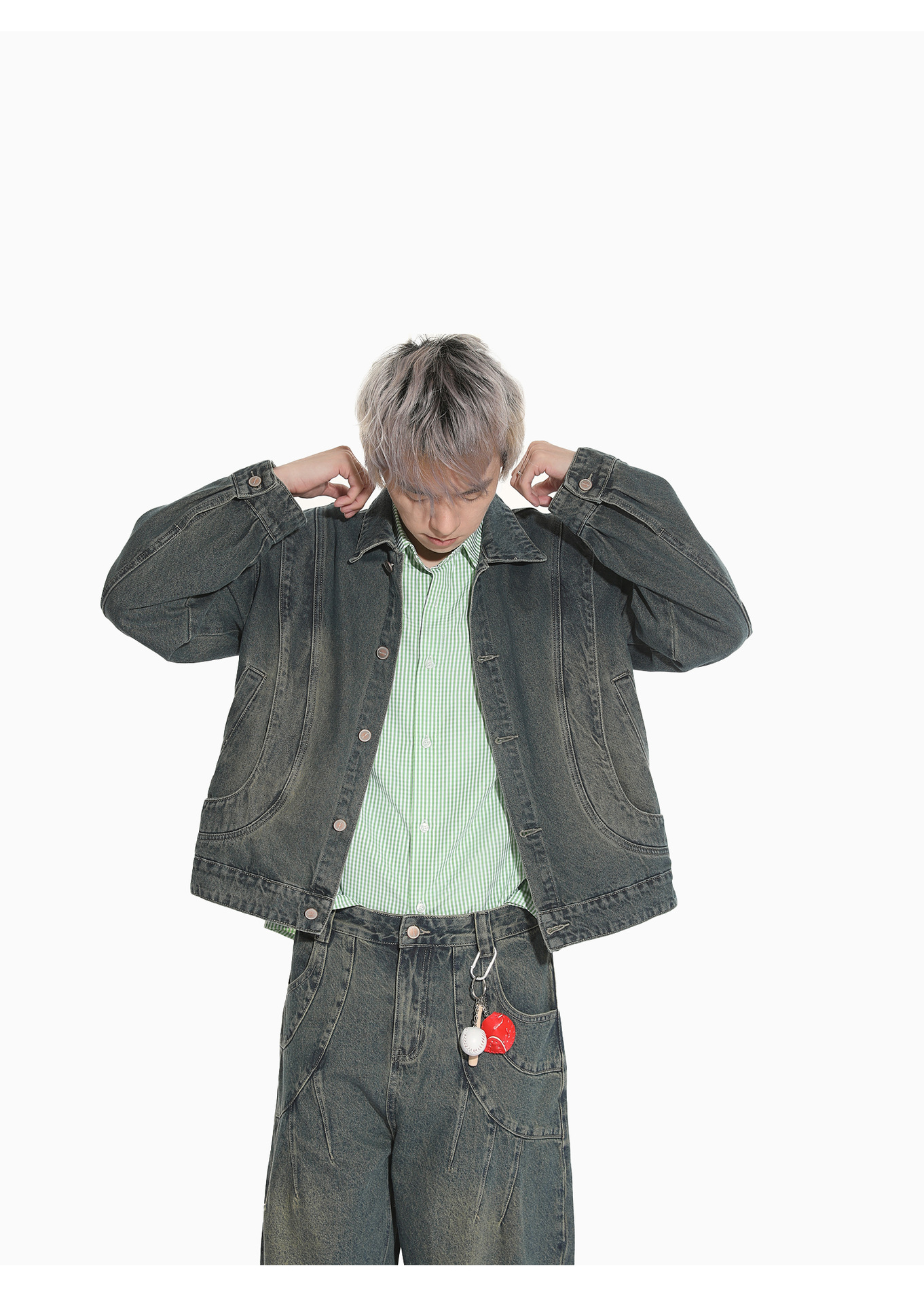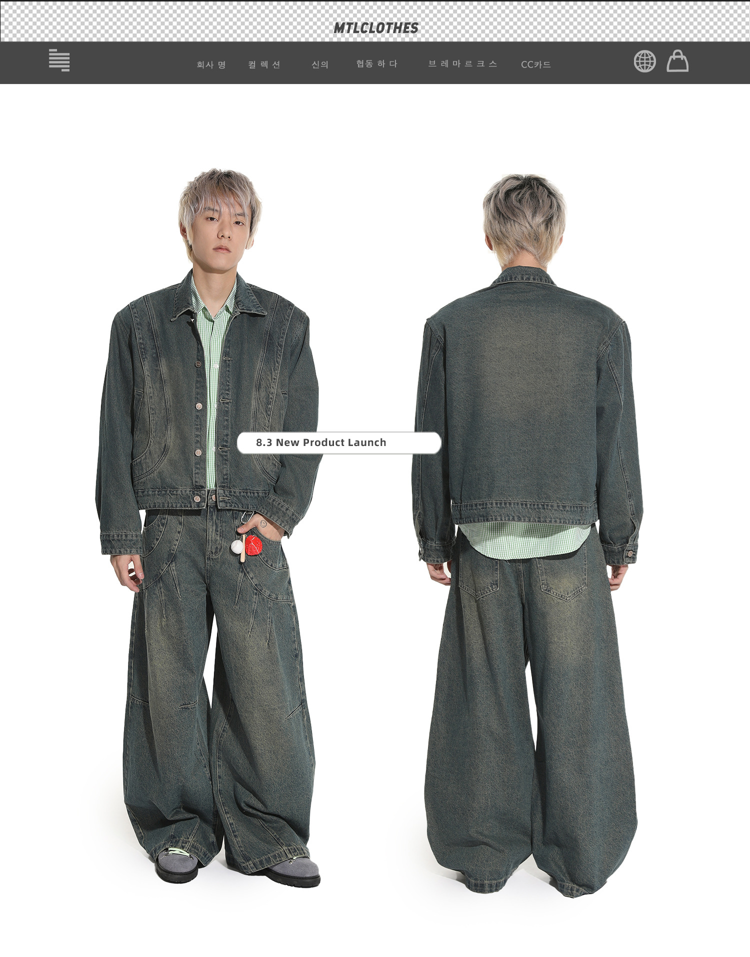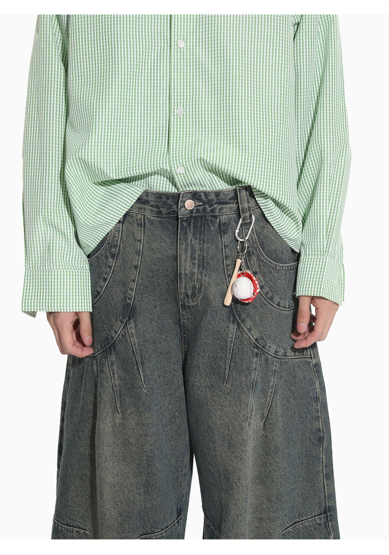 MTLCLOTHES Hombres| Retro estilo americano de la industria pesada empalme corto de hombro conjunto de vaqueros de ocio callejero europeo y americano