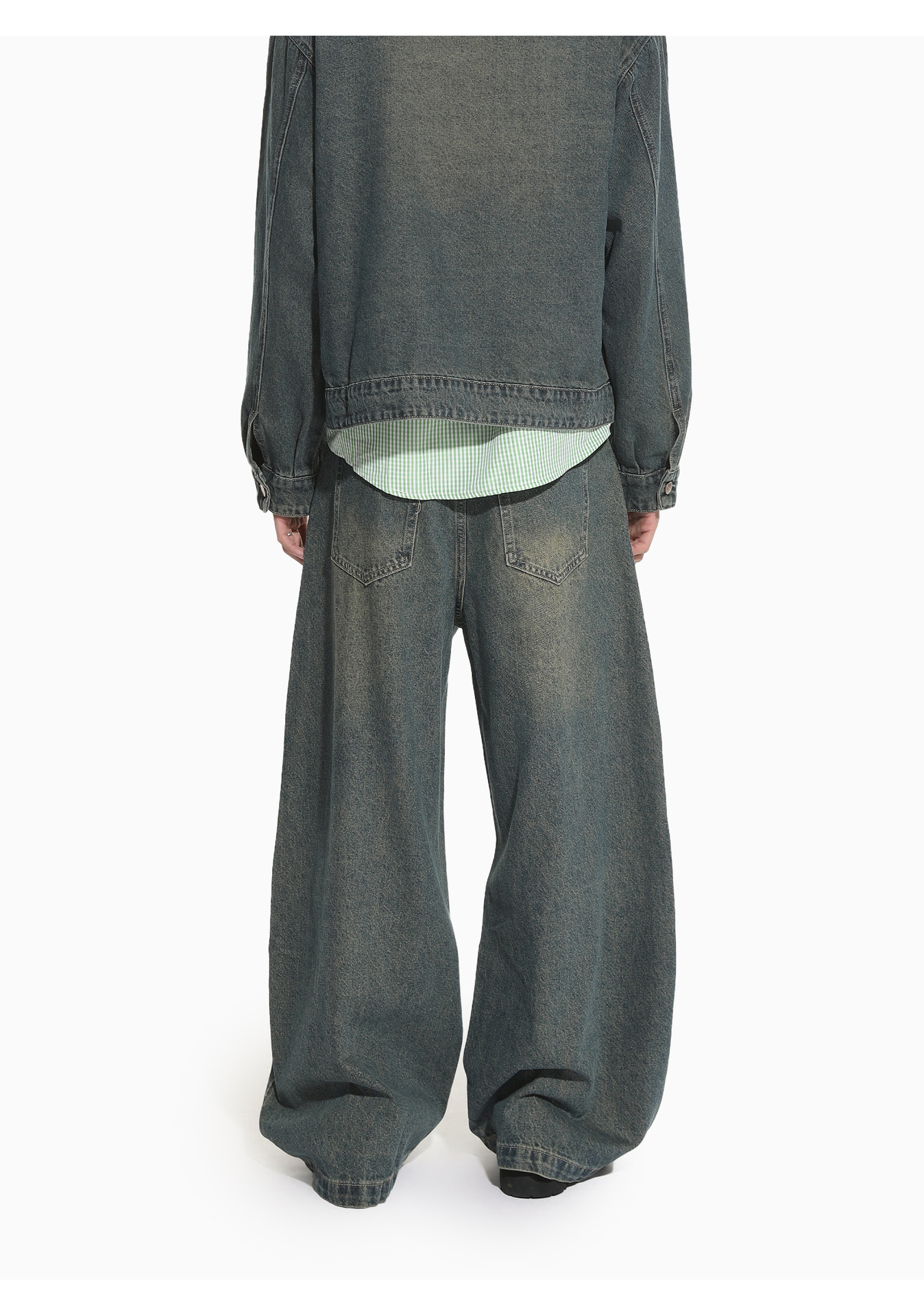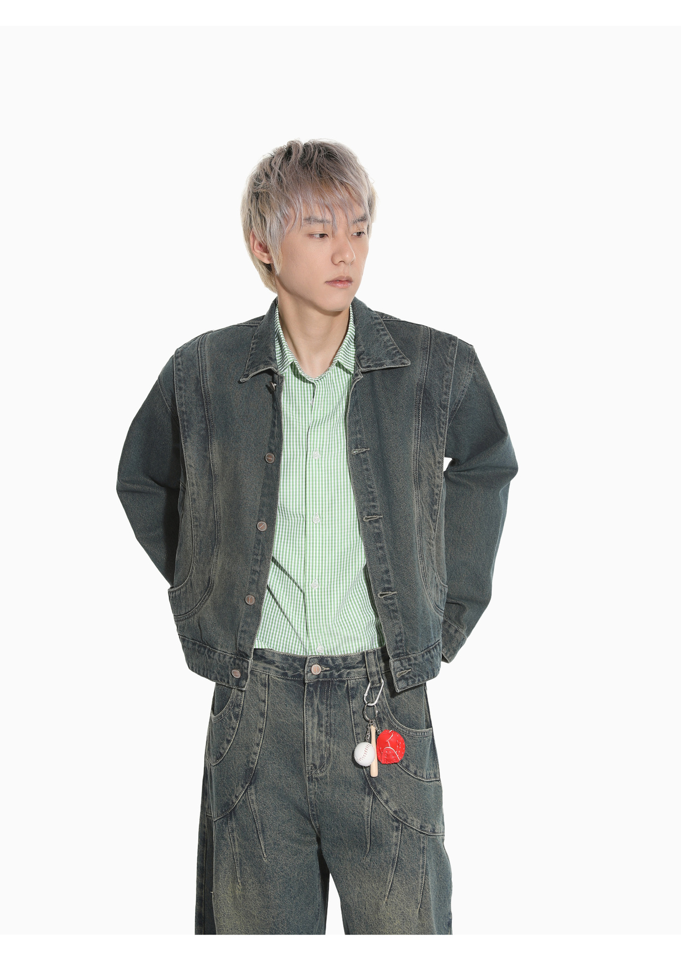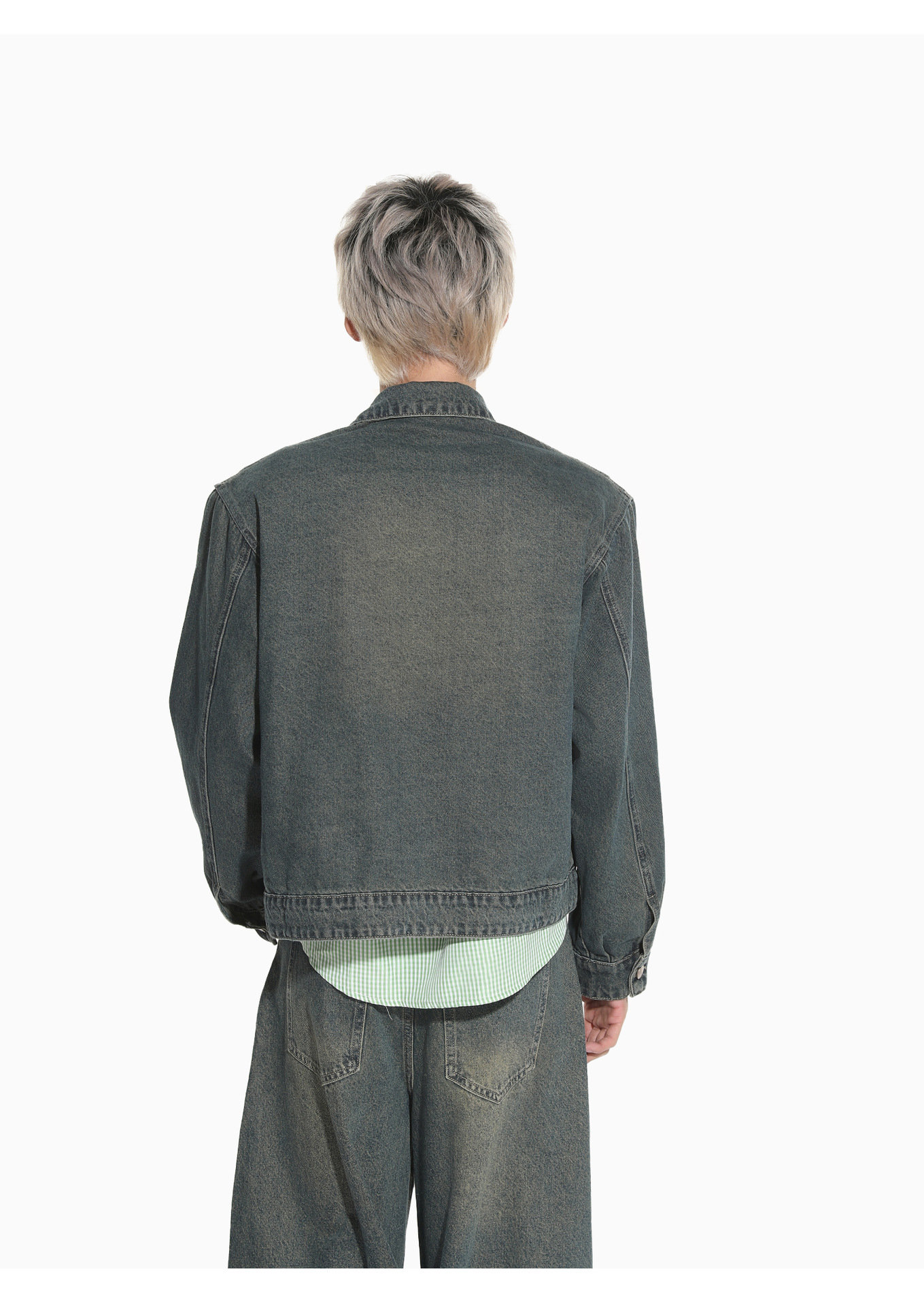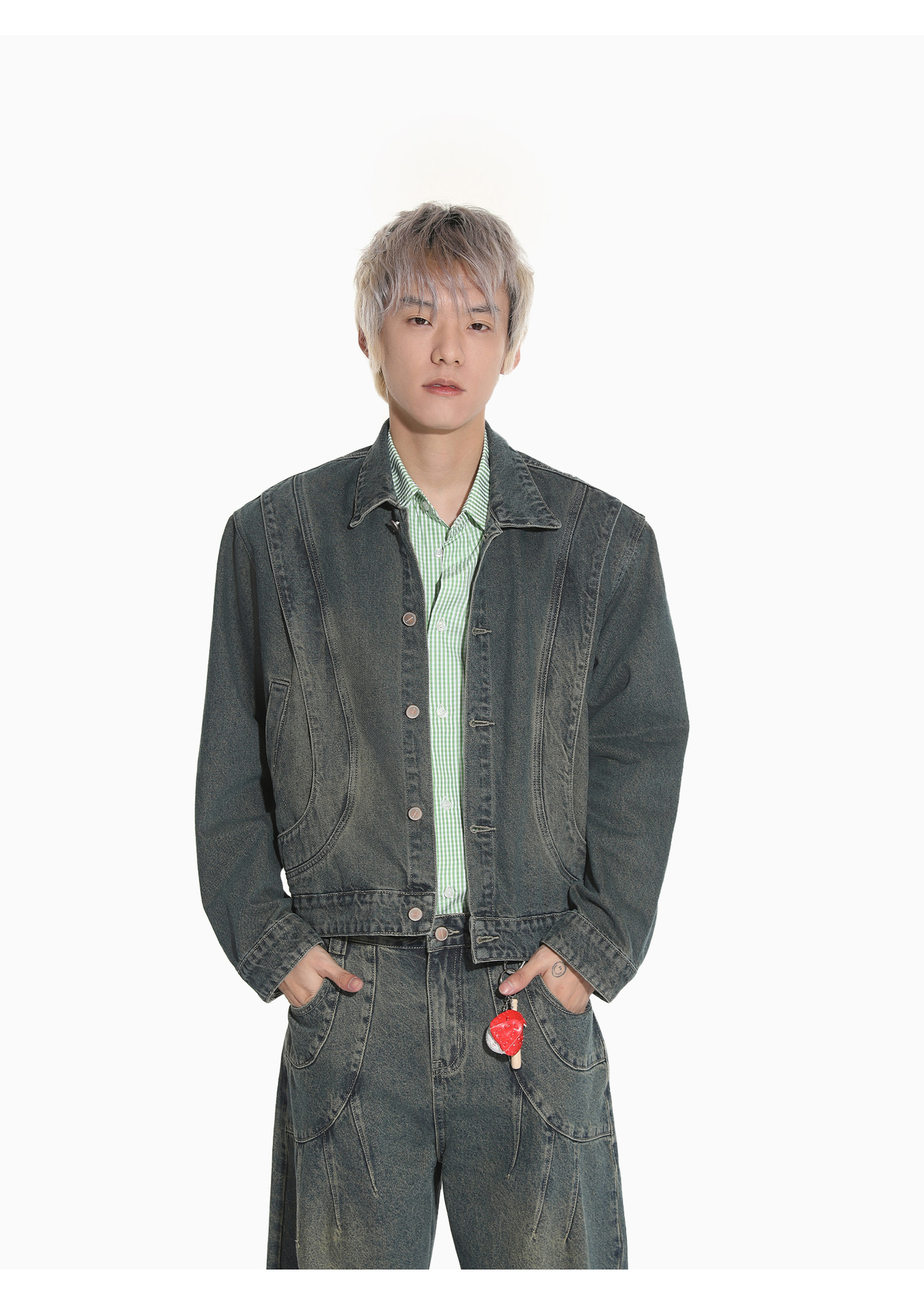 MTLCLOTHES Hombres| Retro estilo americano de la industria pesada empalme corto de hombro conjunto de vaqueros de ocio callejero europeo y americano