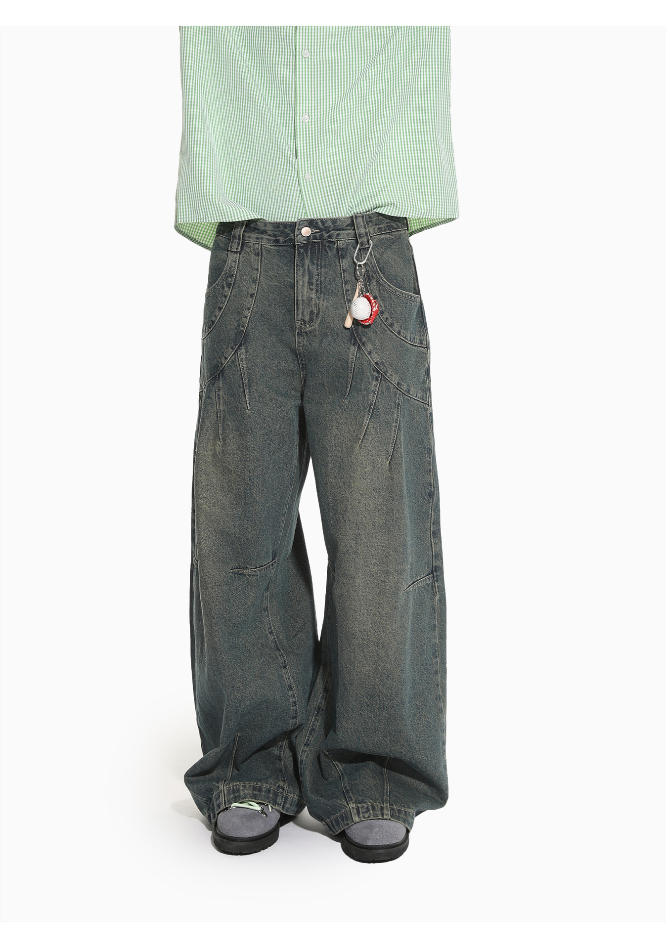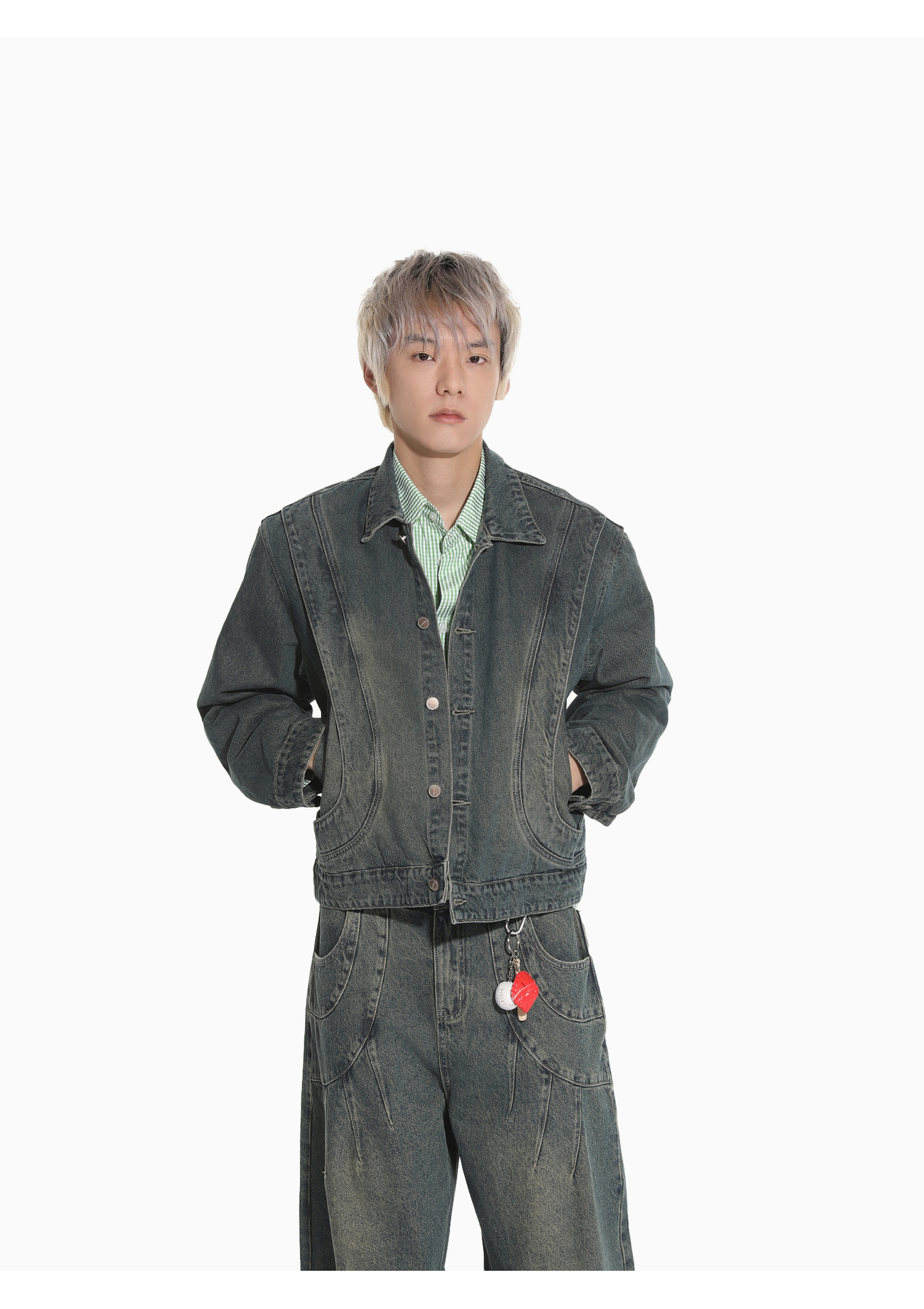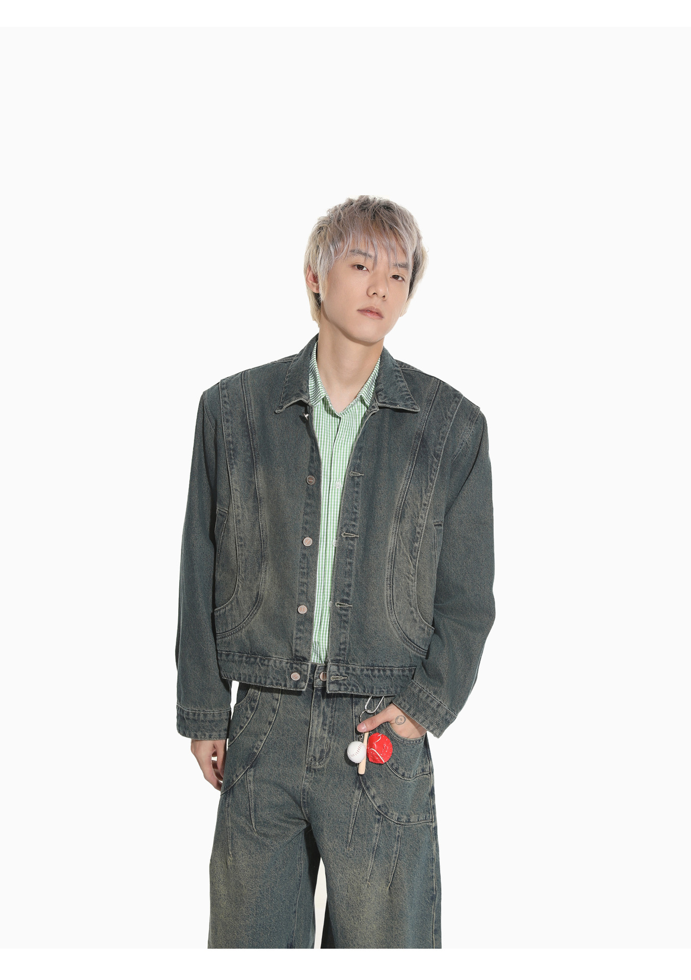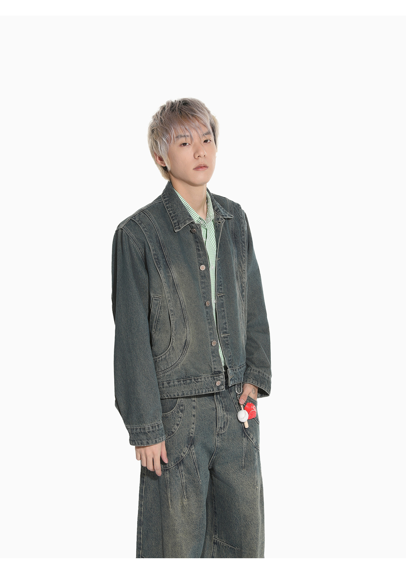 MTLCLOTHES Hombres| Retro estilo americano de la industria pesada empalme corto de hombro conjunto de vaqueros de ocio callejero europeo y americano