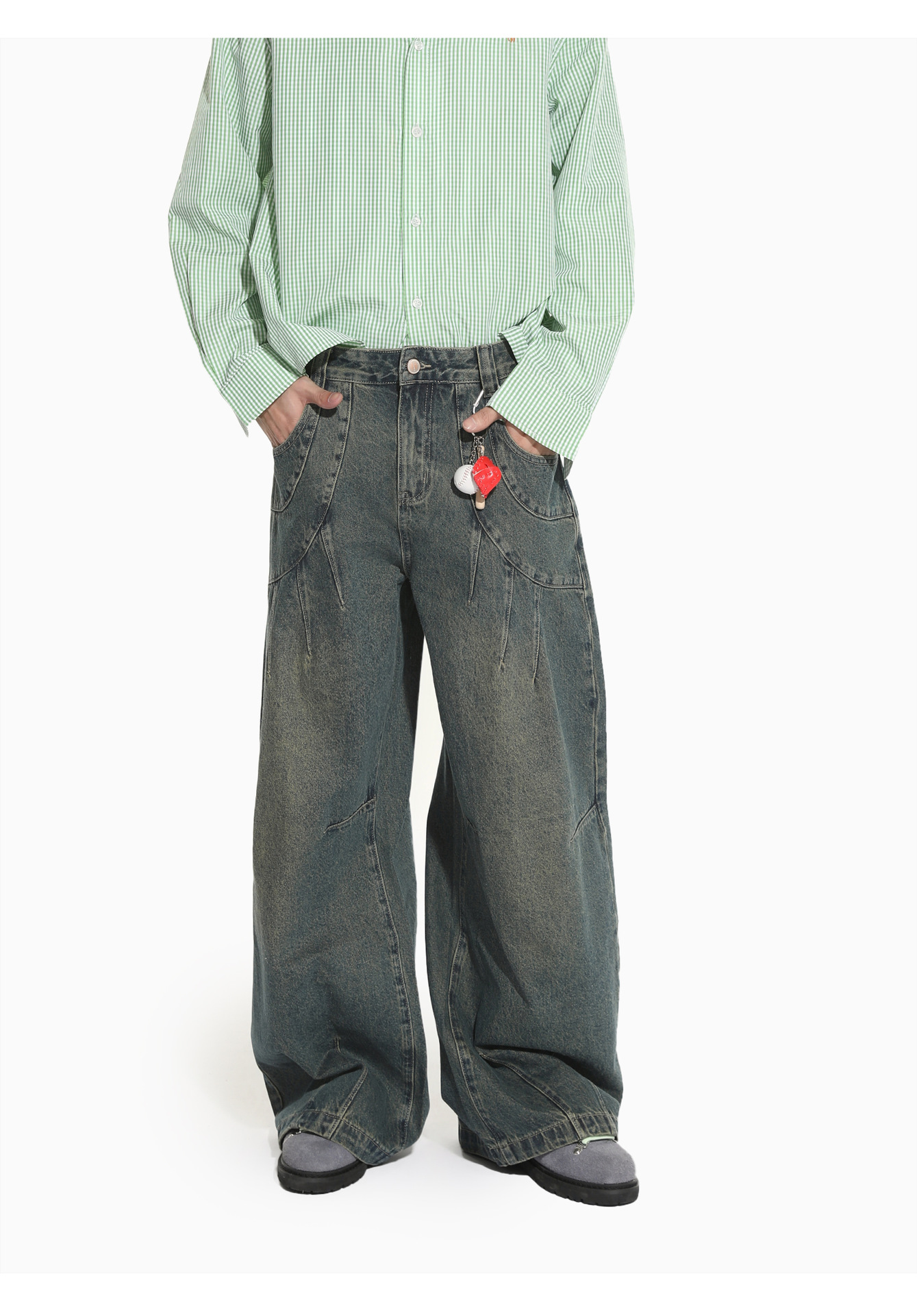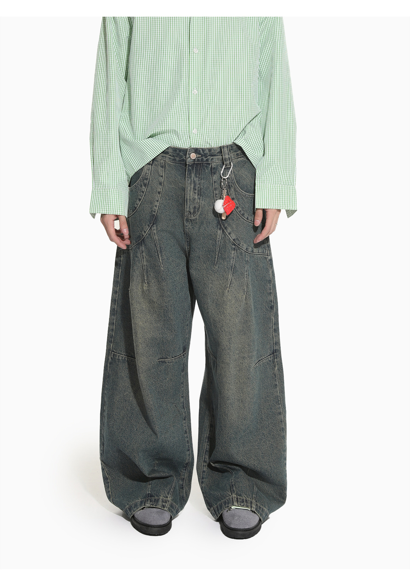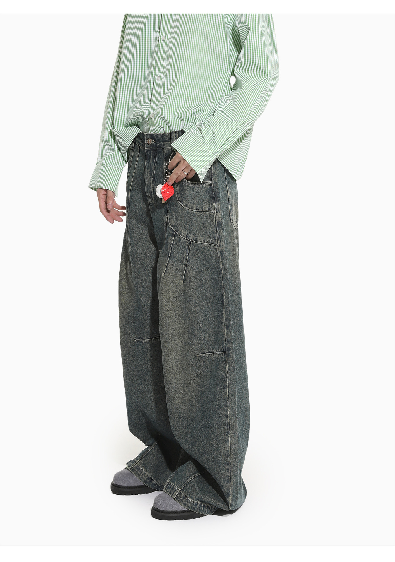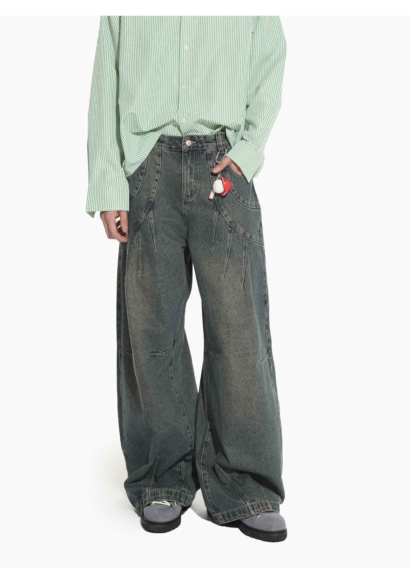 MTLCLOTHES Hombres| Retro estilo americano de la industria pesada empalme corto de hombro conjunto de vaqueros de ocio callejero europeo y americano
