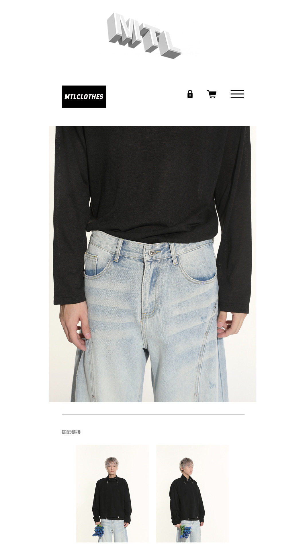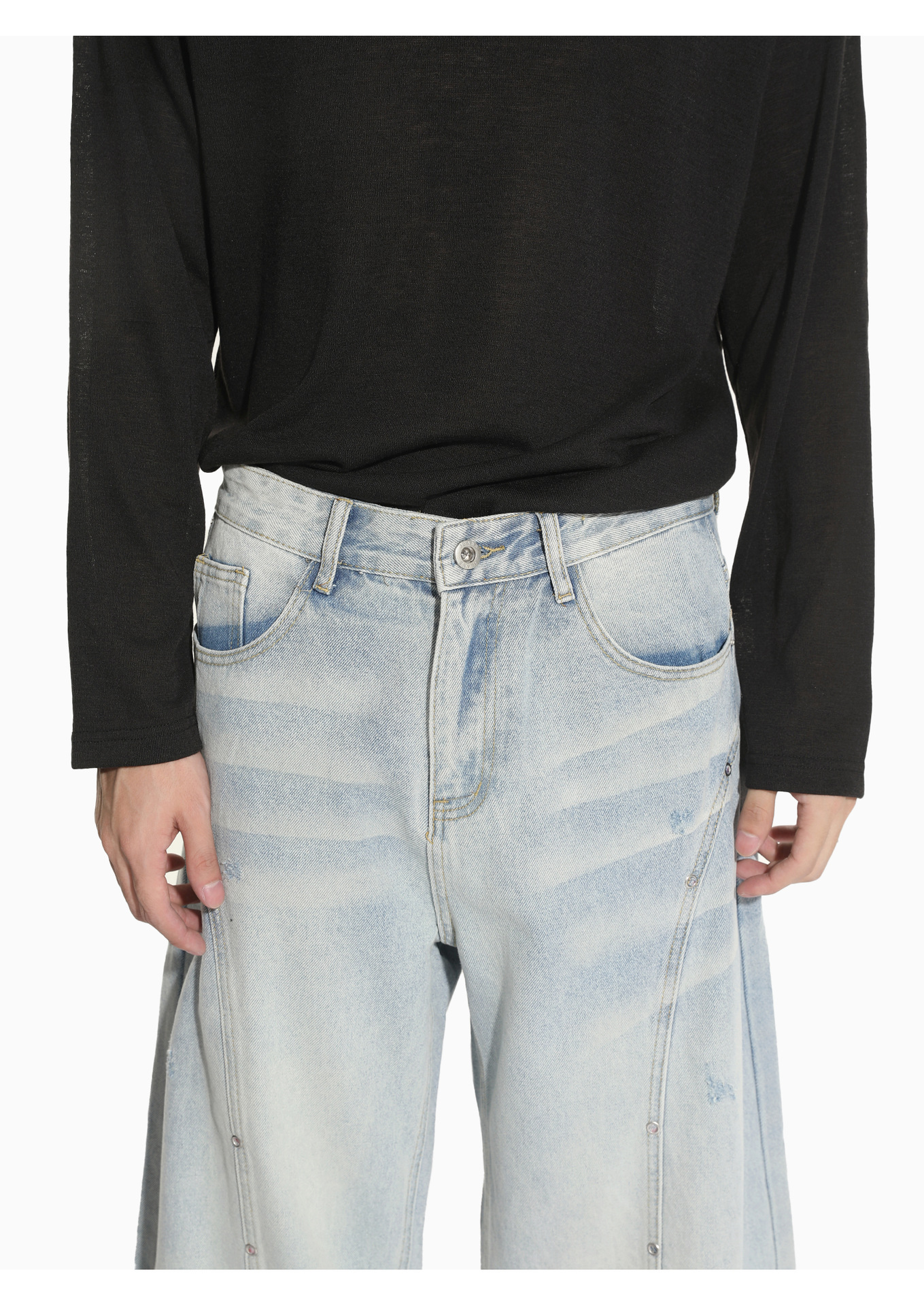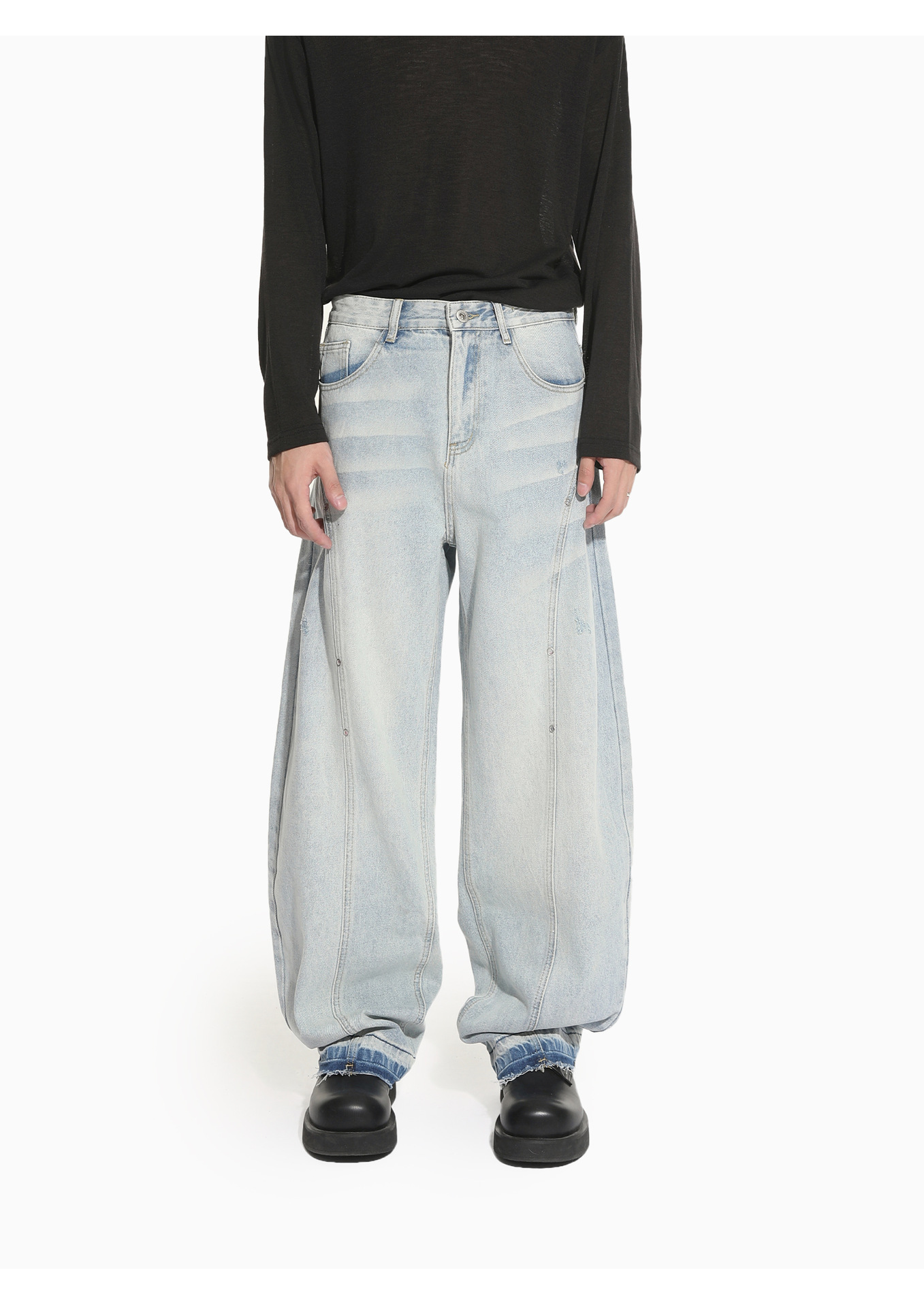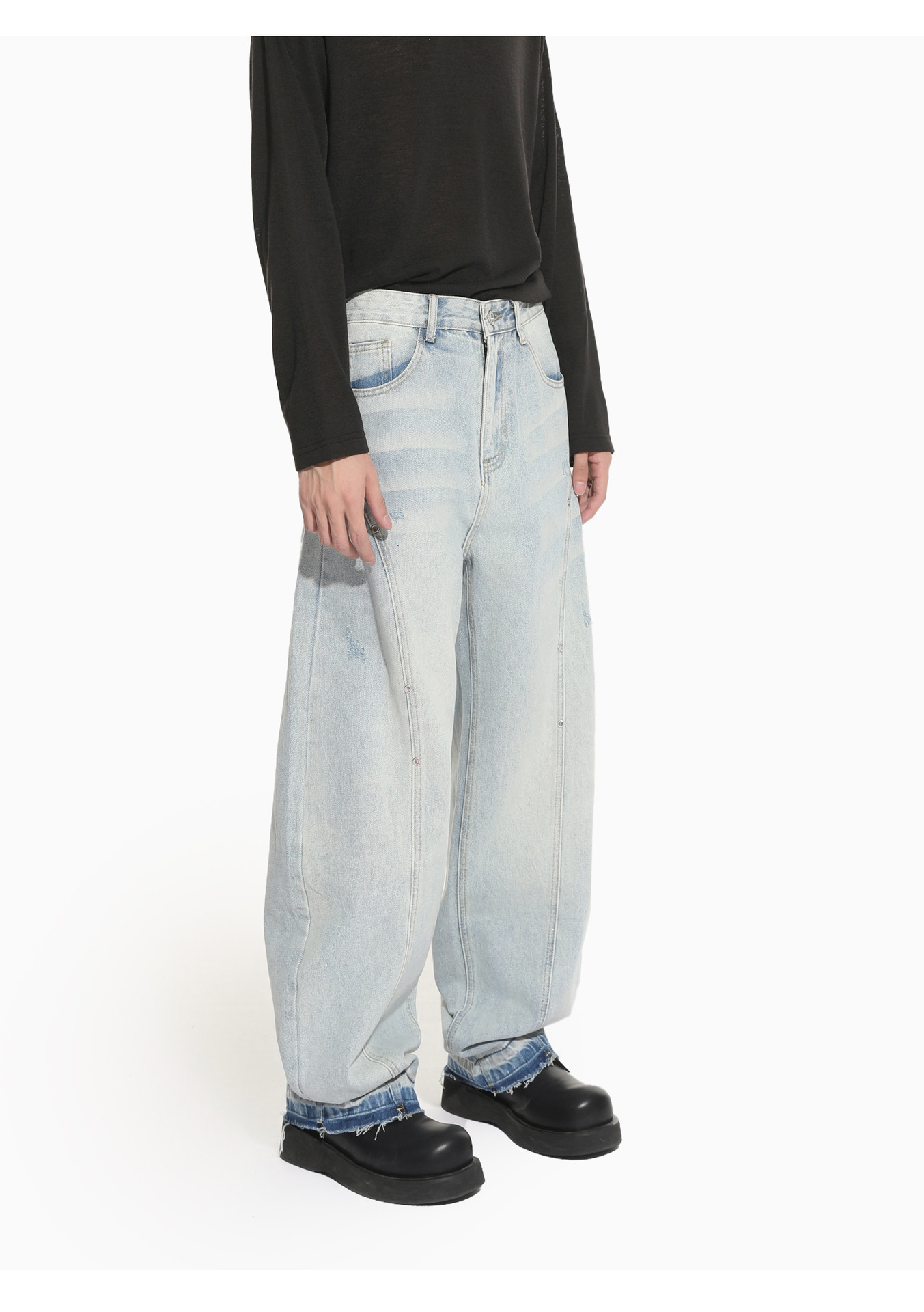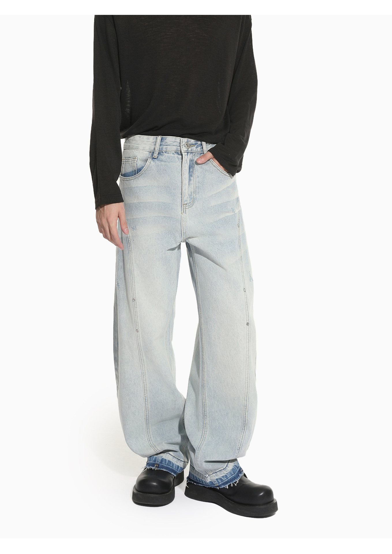 MTLCLOTHES Hombres| Nicho de deconstrucción diseño de empalme sensación de piernas anchas claras manivela rectas jeans de moda