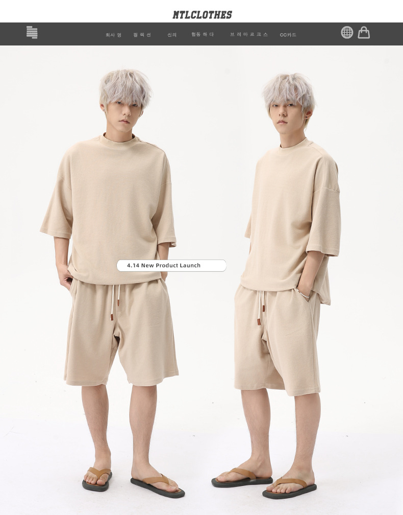 MTLCLOTHES Ropa de hombre | Estilo coreano Color sólido Sencillo Sensación relajada Cómodo y versátil Traje de manga corta de ocio deportivo de moda